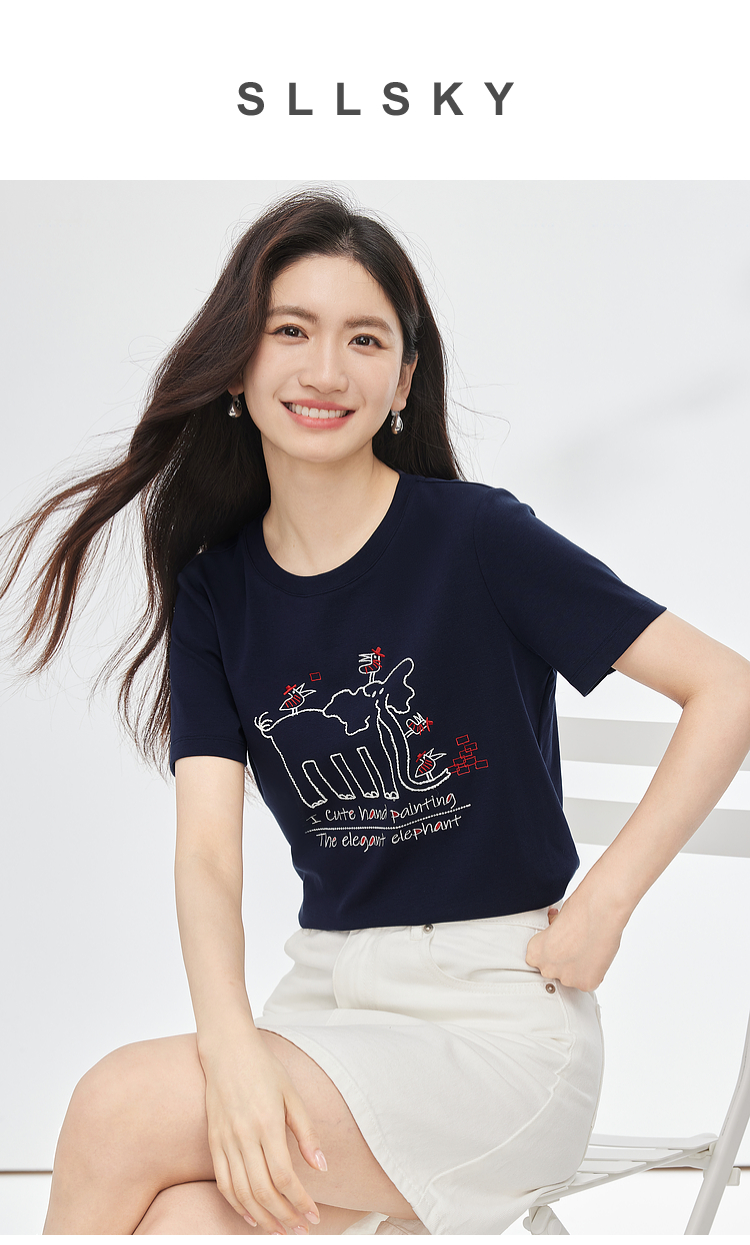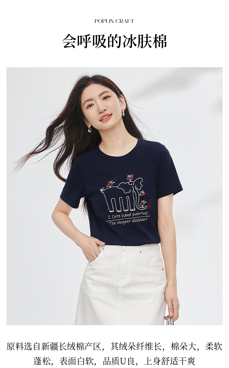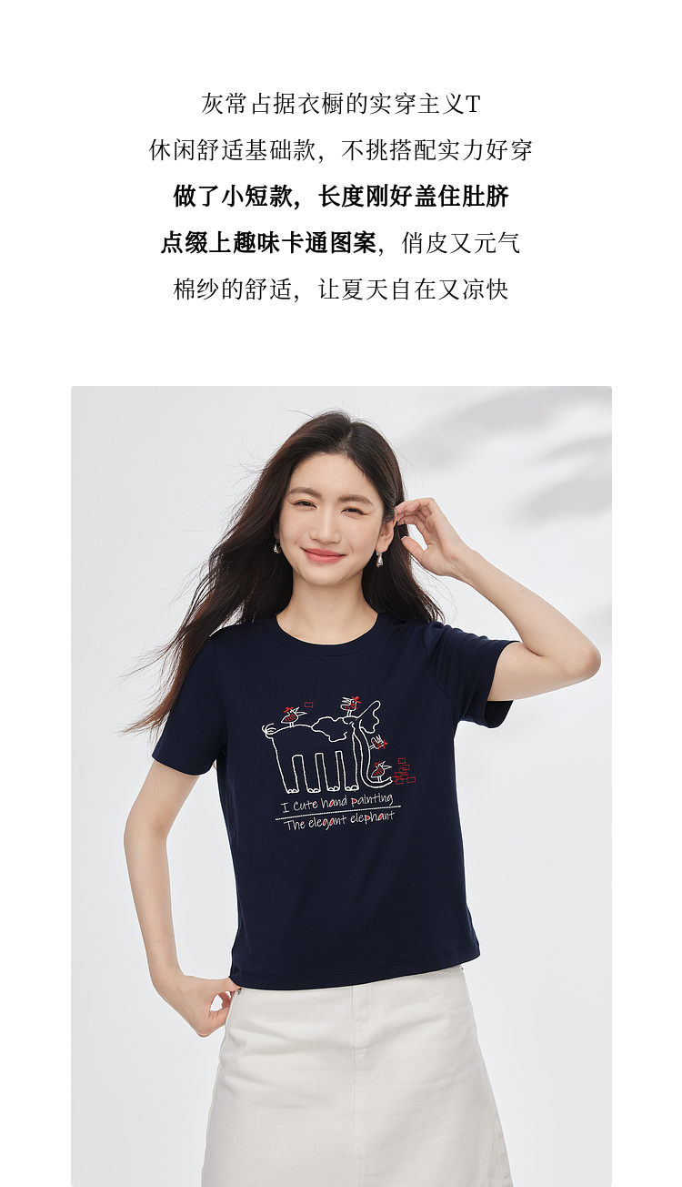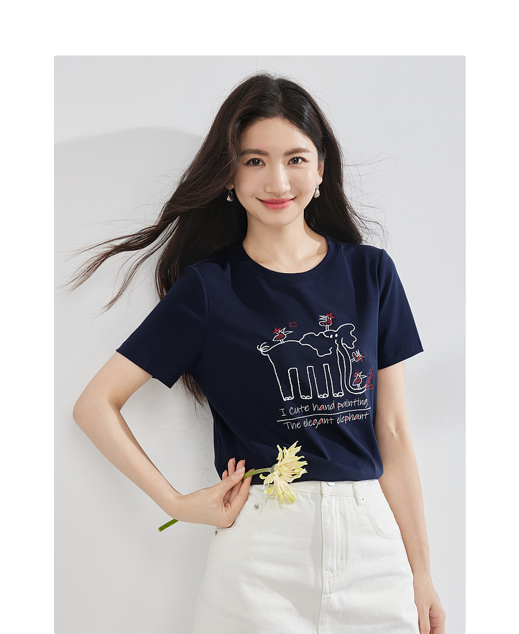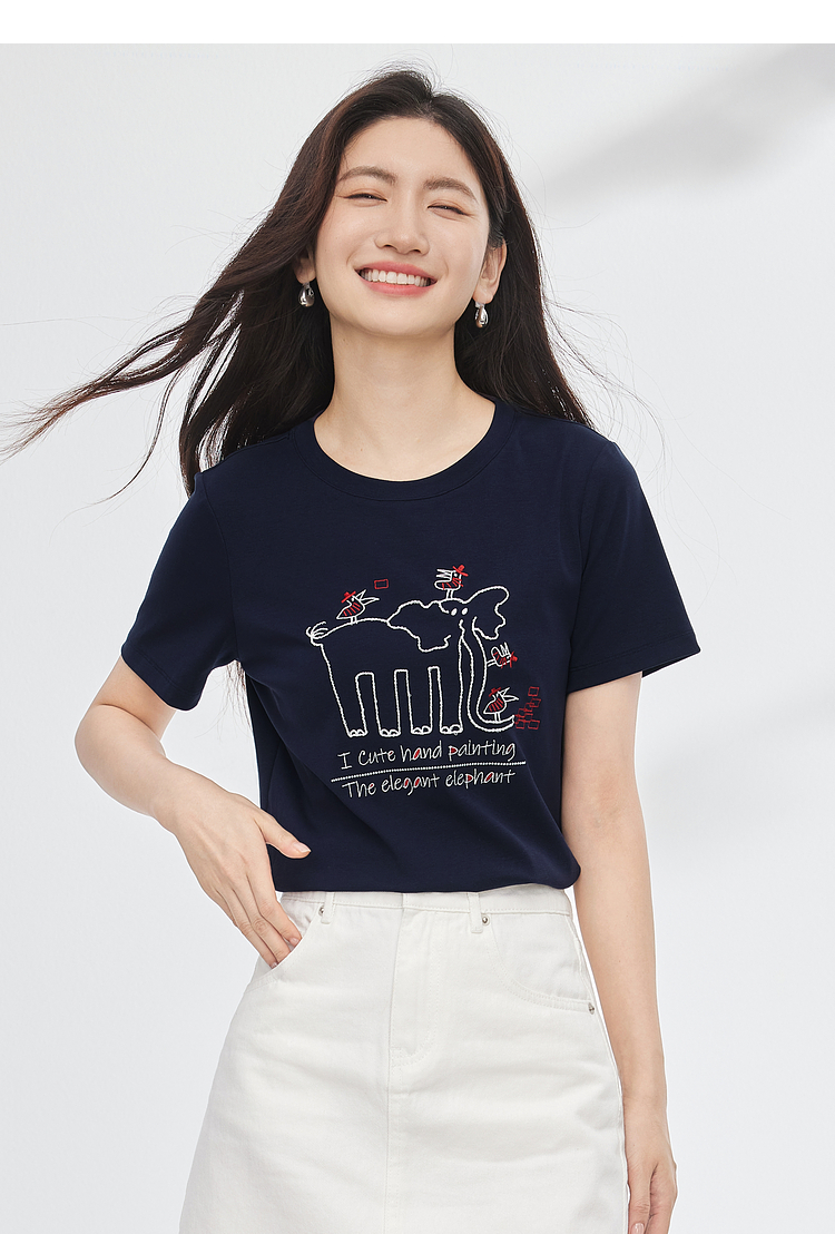 【专属特价】熙世界大象印花短袖T恤女2025夏季新款百搭休闲减龄圆领体恤上衣