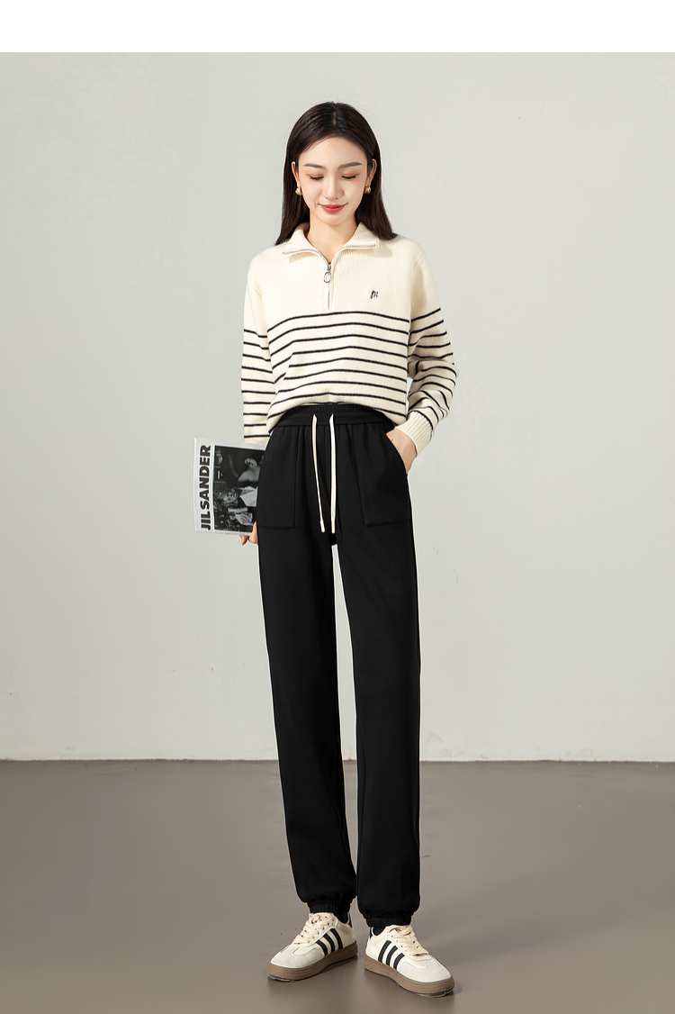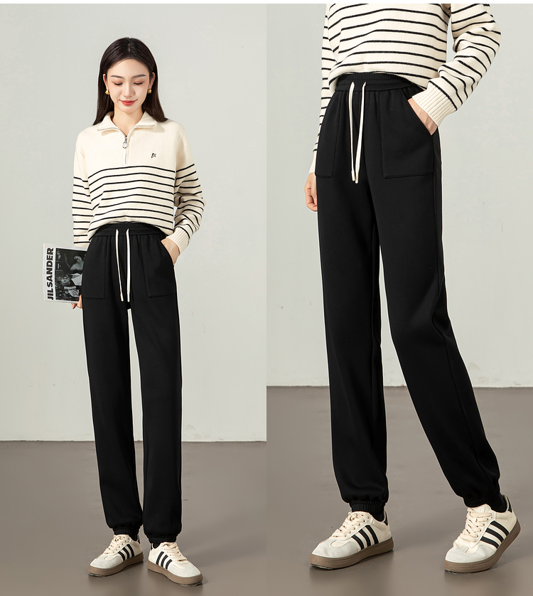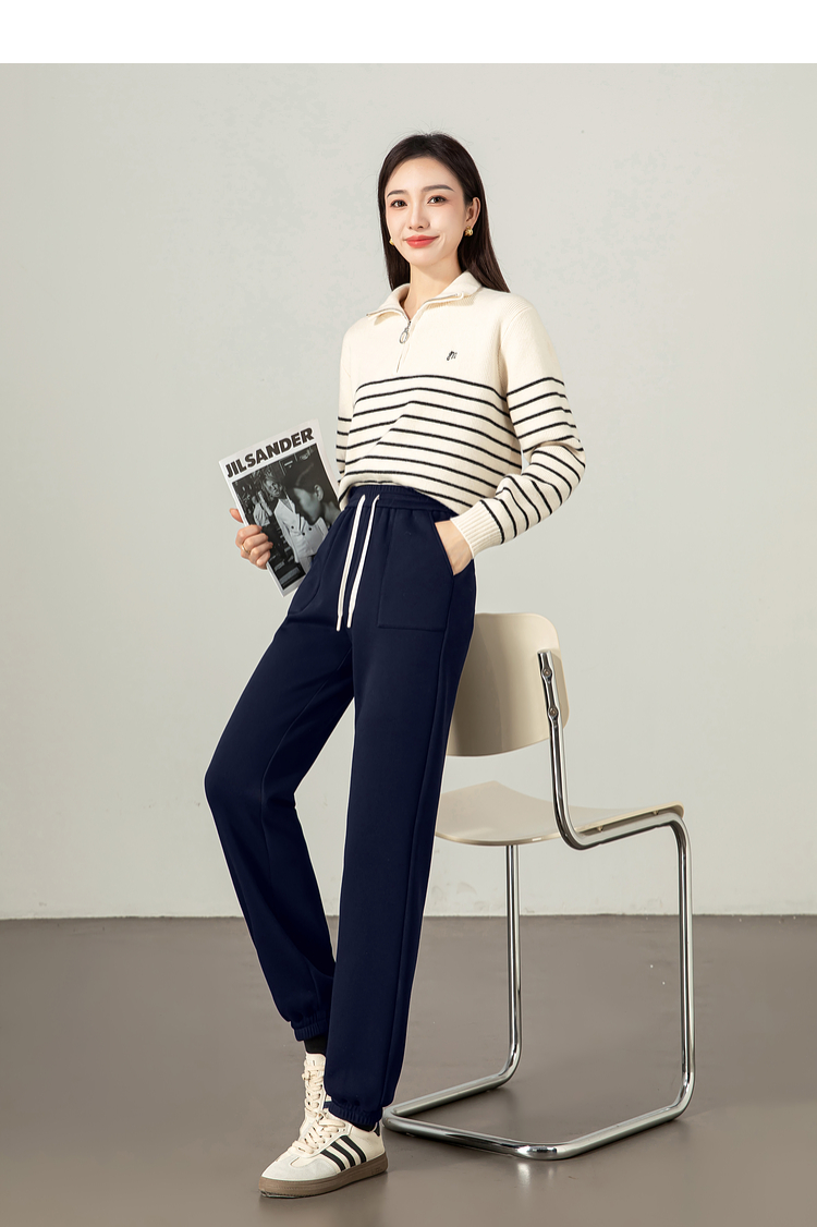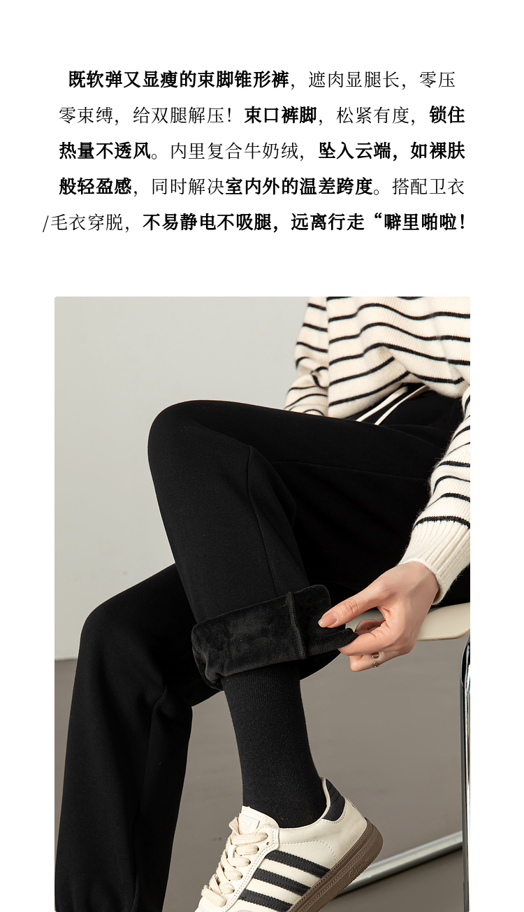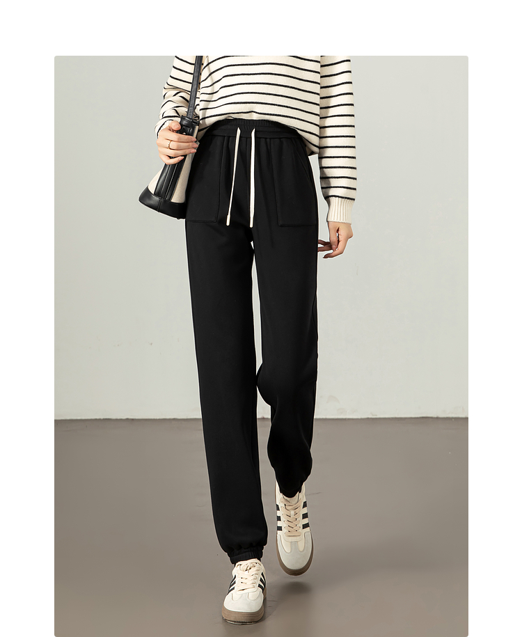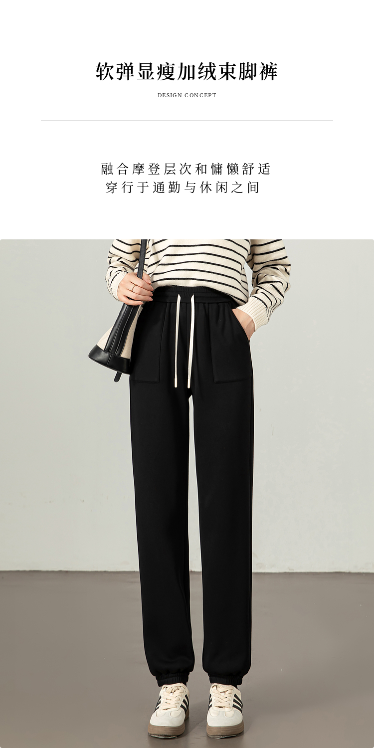 【年终特卖】熙世界加绒加厚运动束脚裤女2025冬季新款高腰显瘦牛奶绒休闲卫裤