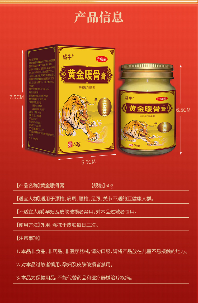 【全身关节不适】黄金暖骨膏 不用贴的“隐形”膏 膏体细腻深层渗透 靶向定位直达深处 关节膏暖骨膏风湿 膏 50g/瓶