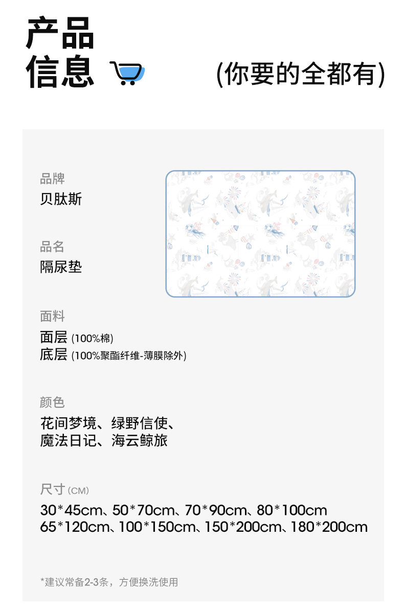 *【贝肽斯】婴儿隔尿垫大尺寸夏季防水透气可洗姨妈垫生理期儿童床垫