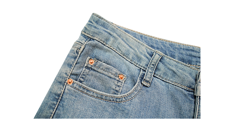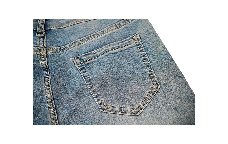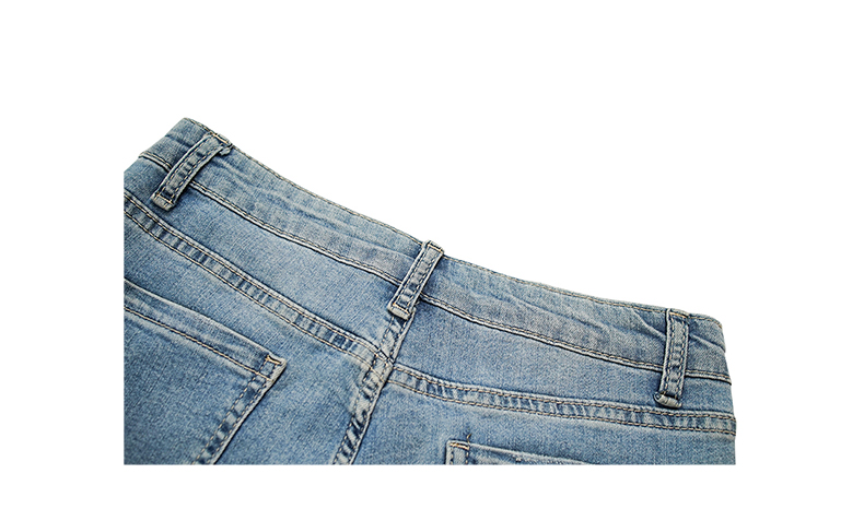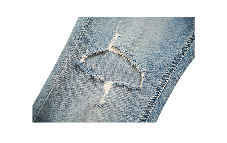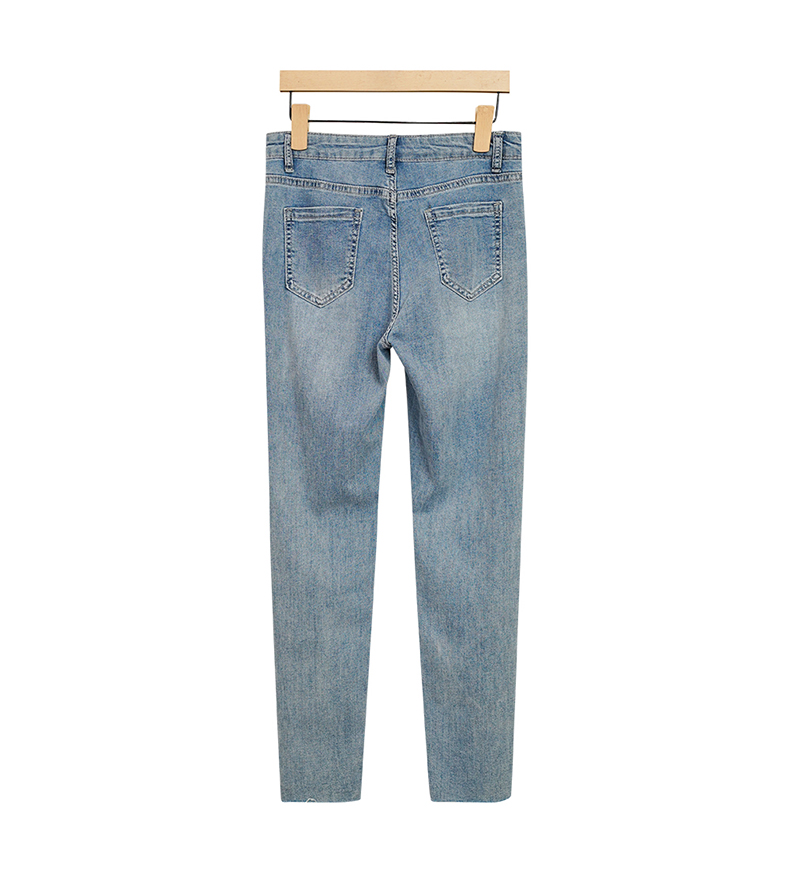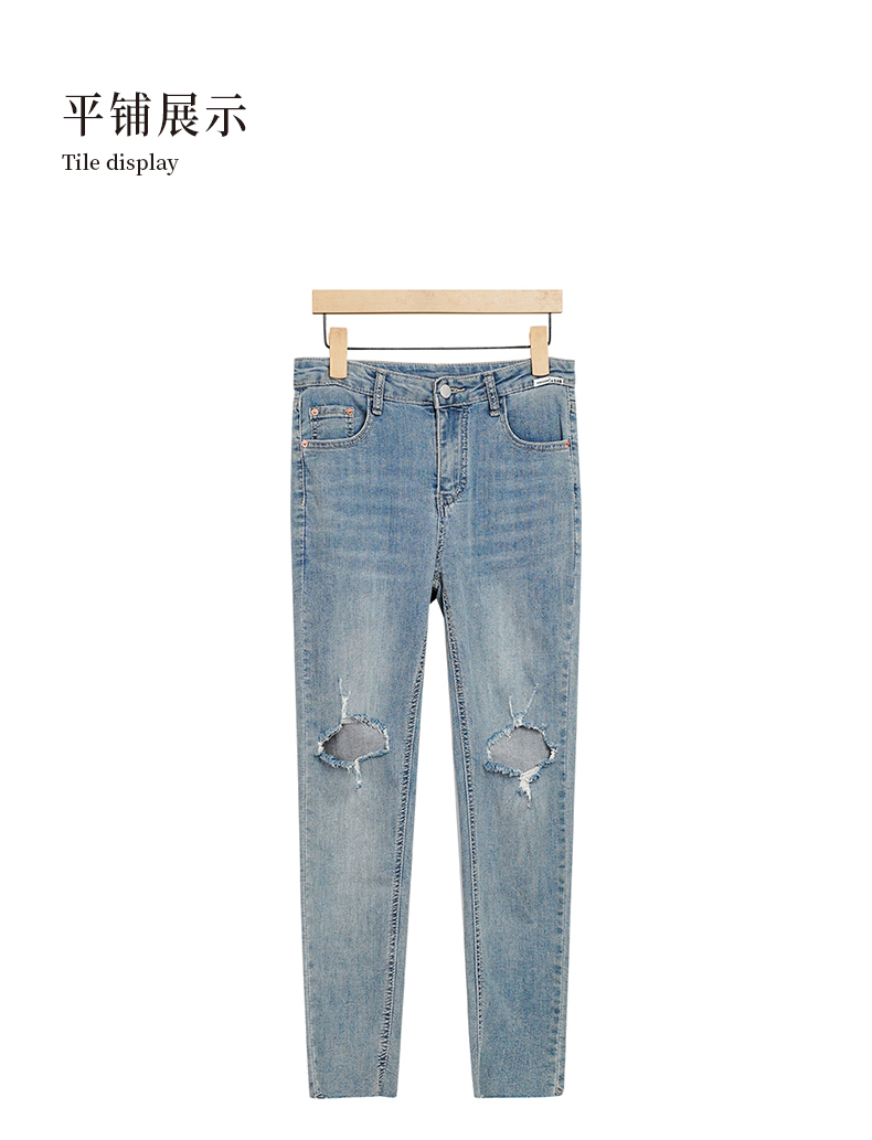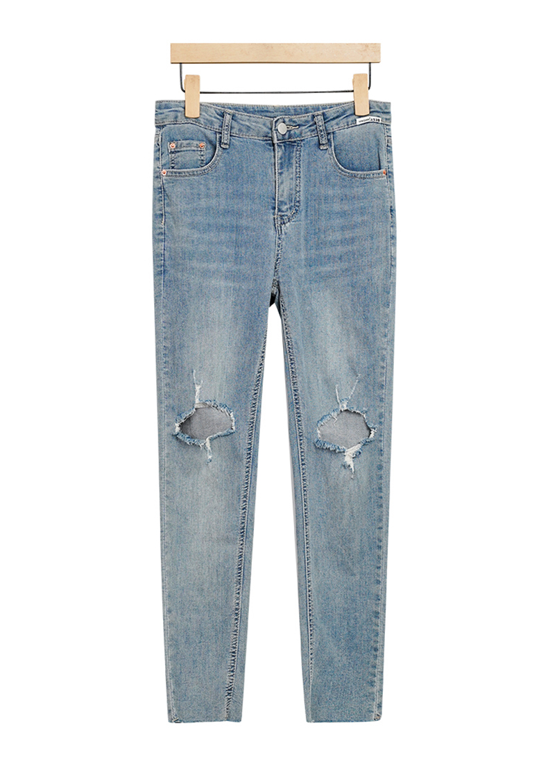 NUTS柔软弹力紧身牛仔裤女小脚裤浅蓝色膝盖大破洞221113304
