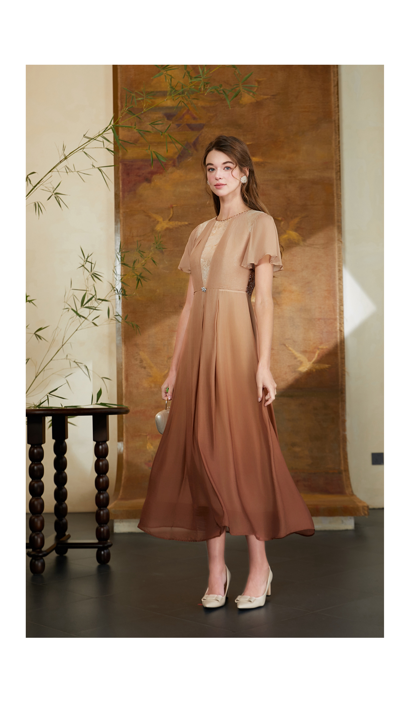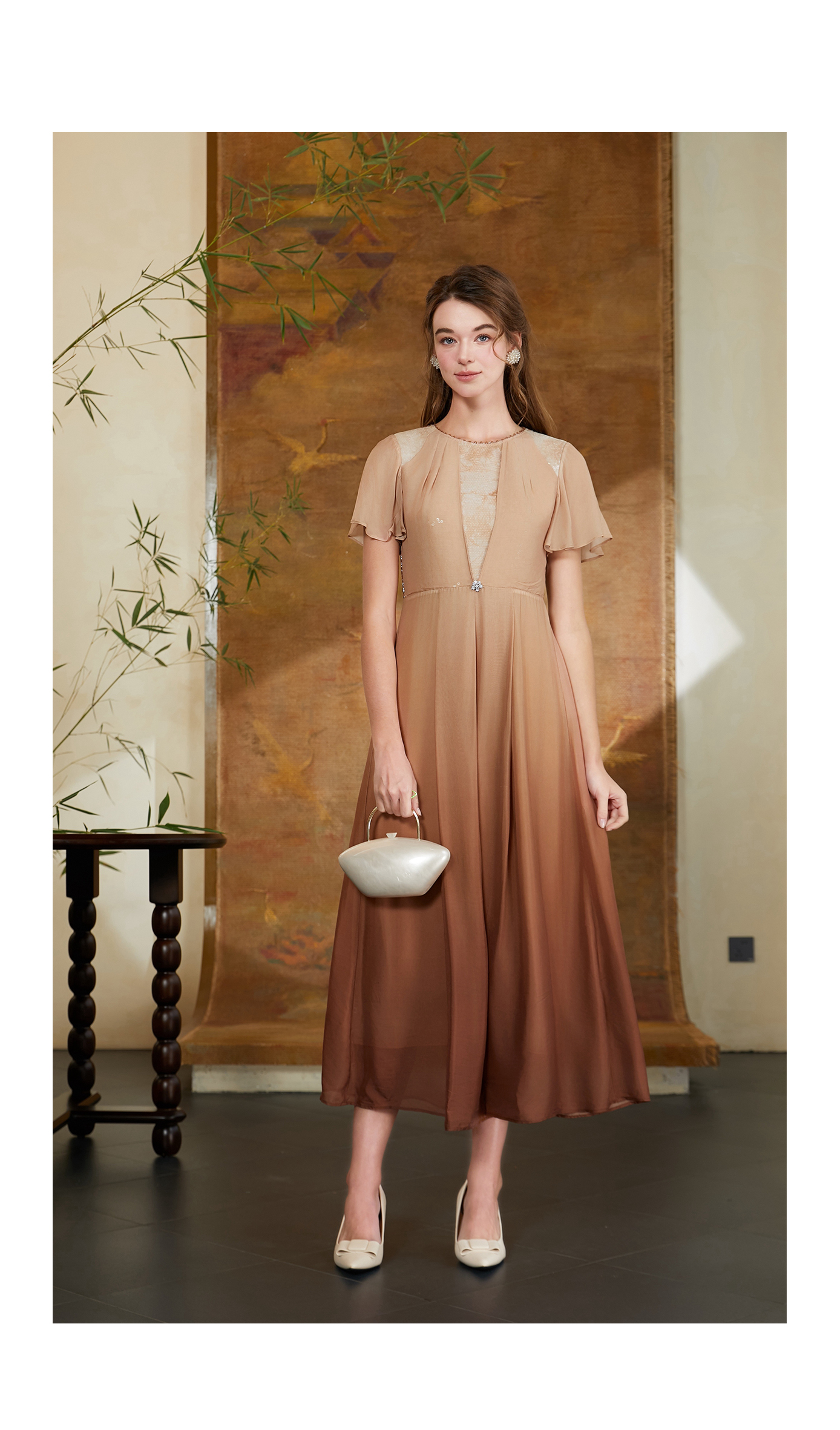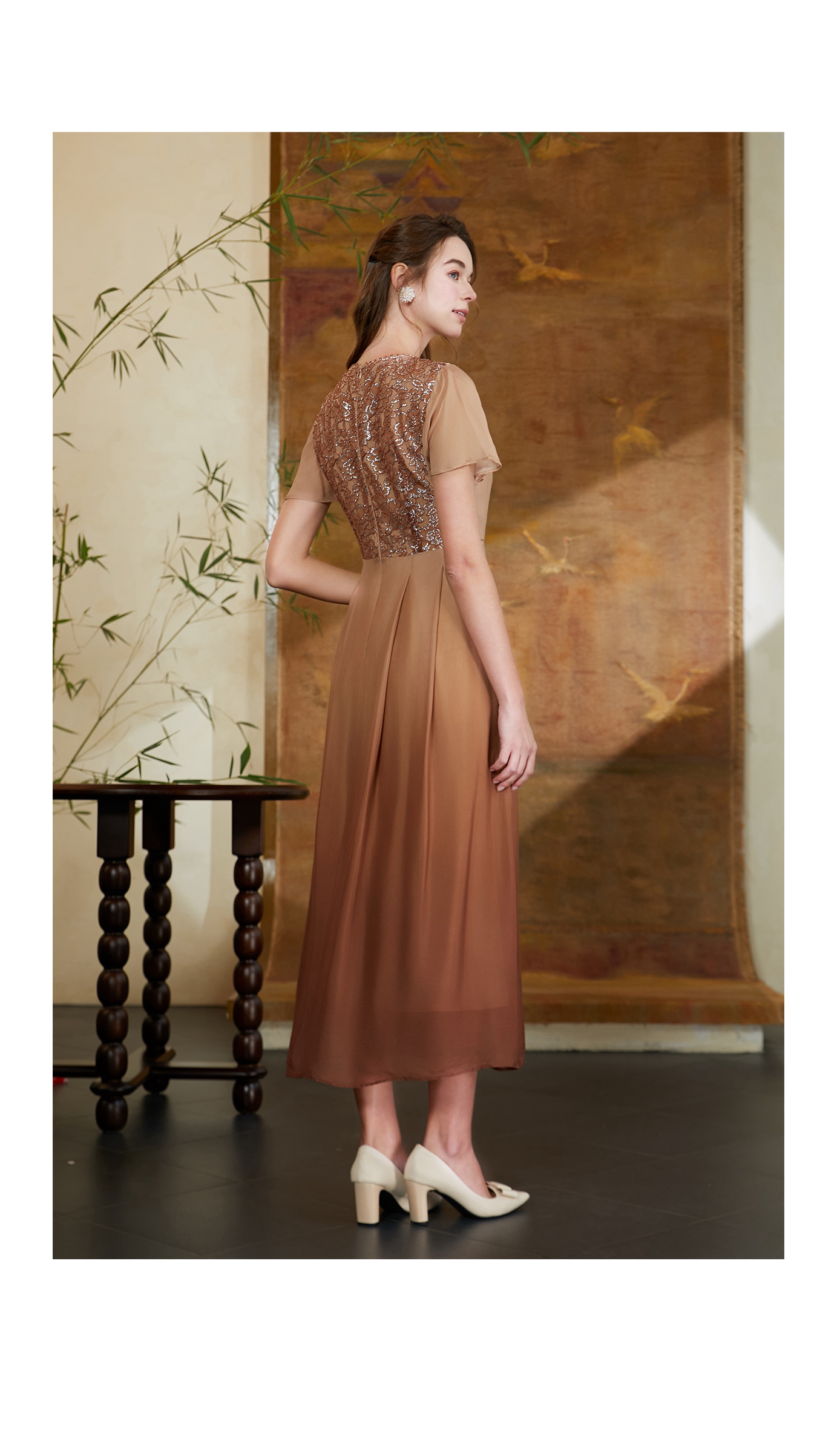 司歌渐变蕾丝重工收腰气质连衣裙A911225X