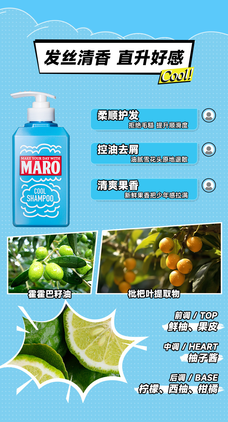 MARO摩隆 男士清爽去屑洗发水350ml(青柠香型)