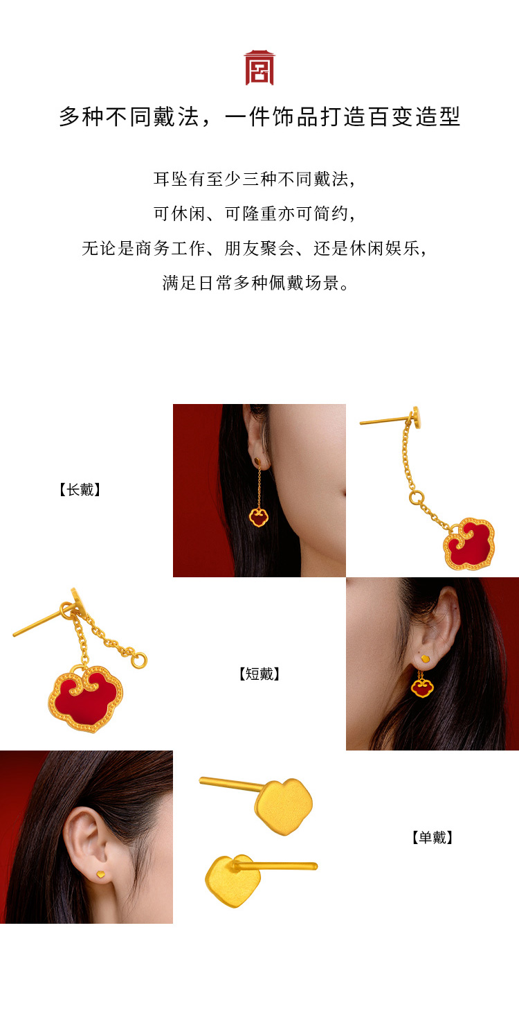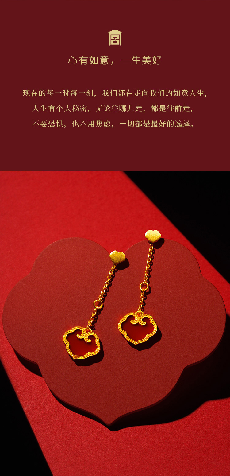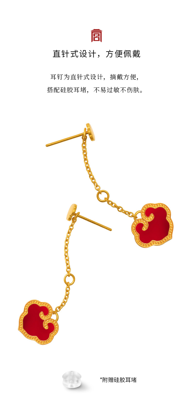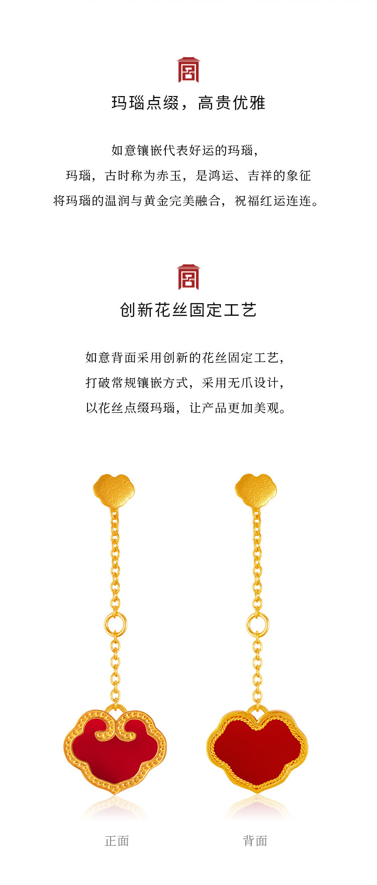 宫匠造办 吉祥如意耳坠 黄金镶红玛瑙