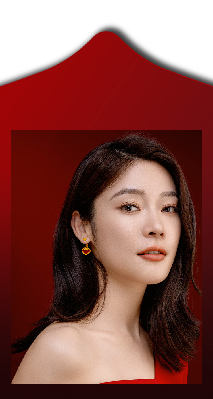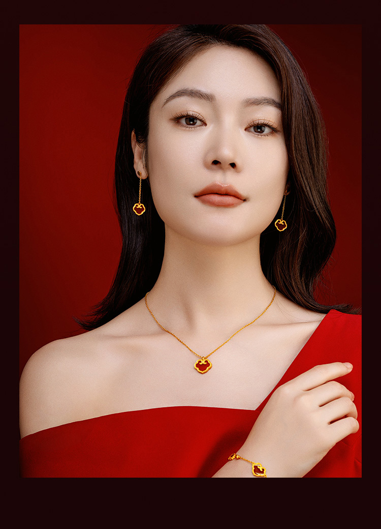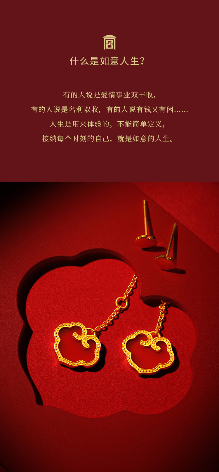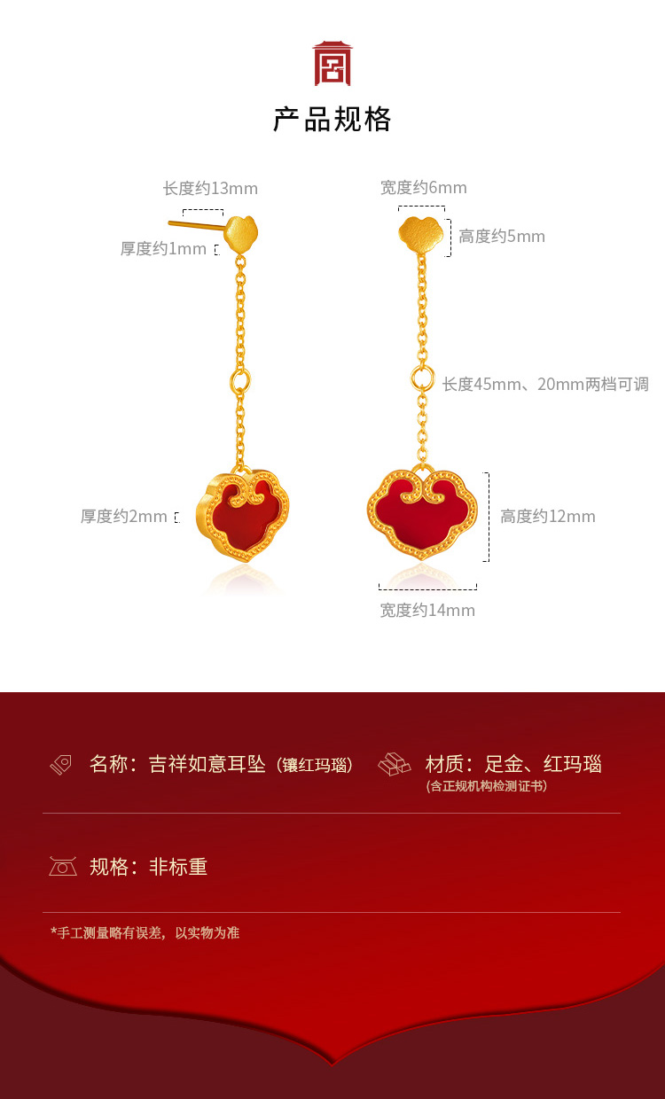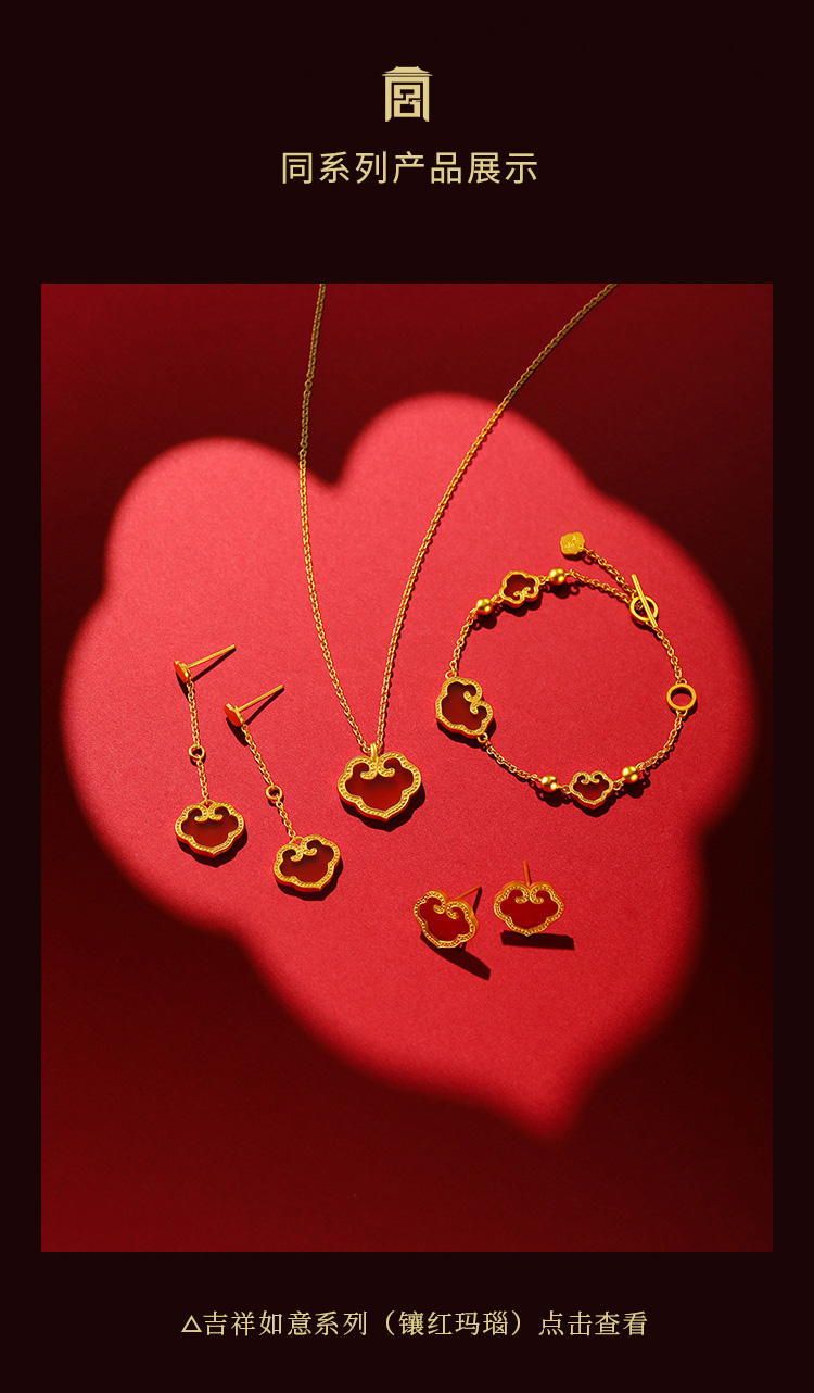 宫匠造办 吉祥如意耳坠 黄金镶红玛瑙