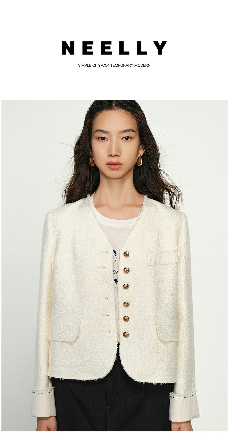 NEELLY纳俪商场同款秋季新款气质小香风短外套女百搭圆领上衣N25084C04608