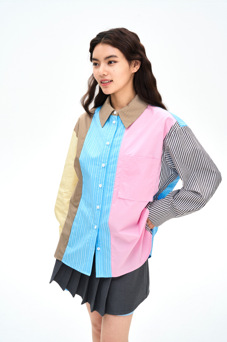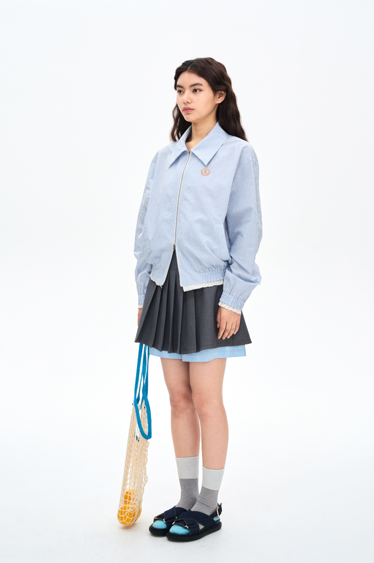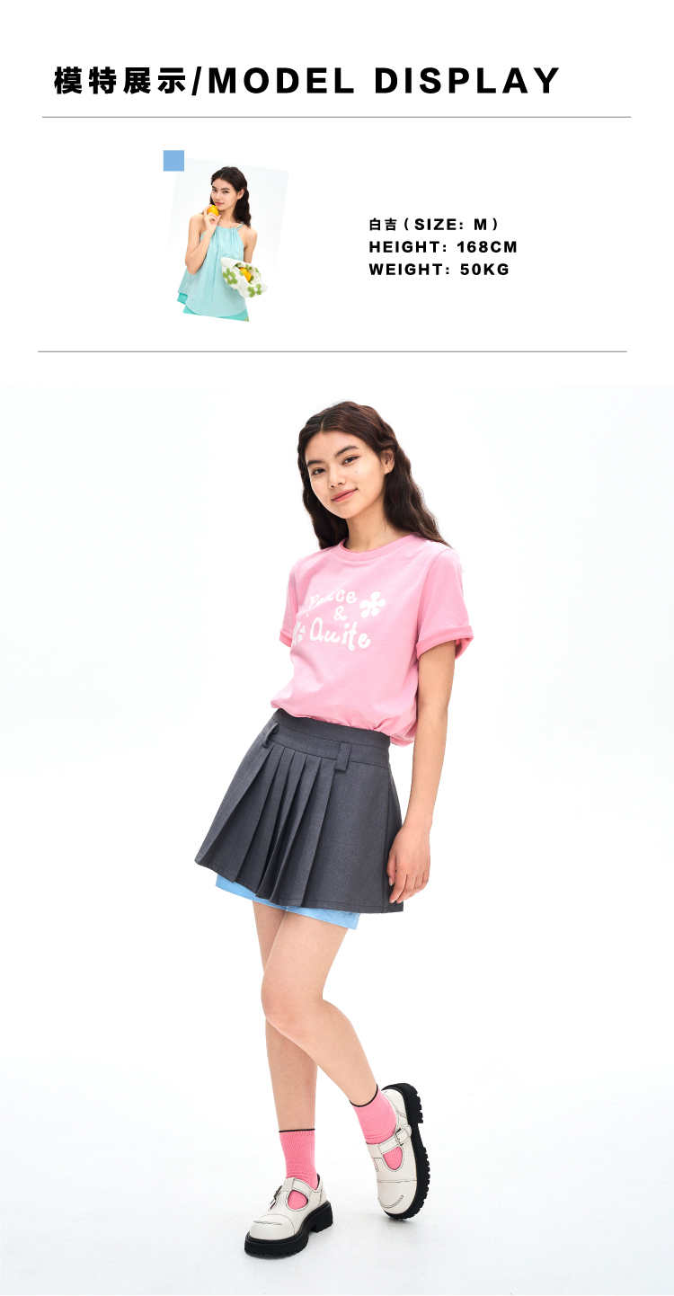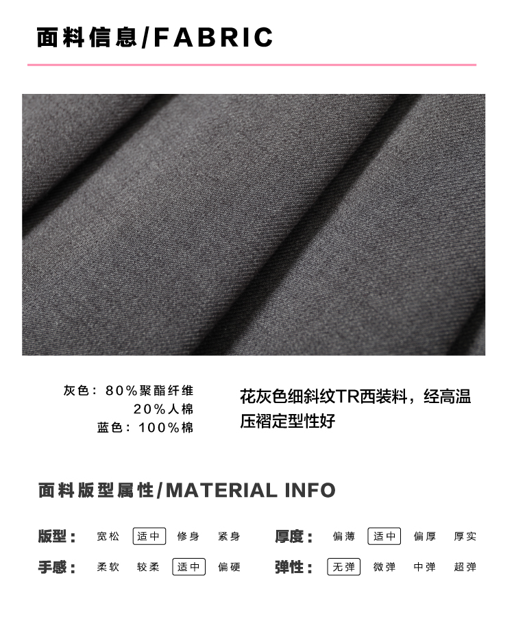 heris/H42112/灰蓝拼色假两件 学院感百褶A字 西装半身裙裙裤