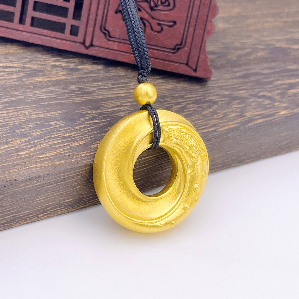 【限时克减150元】足金999 古法空心挂绳龙凤呈祥平安扣吊坠(含珠子)(OGFDZ00272)(预售产品下单后不退款不退货不换货不补差价)