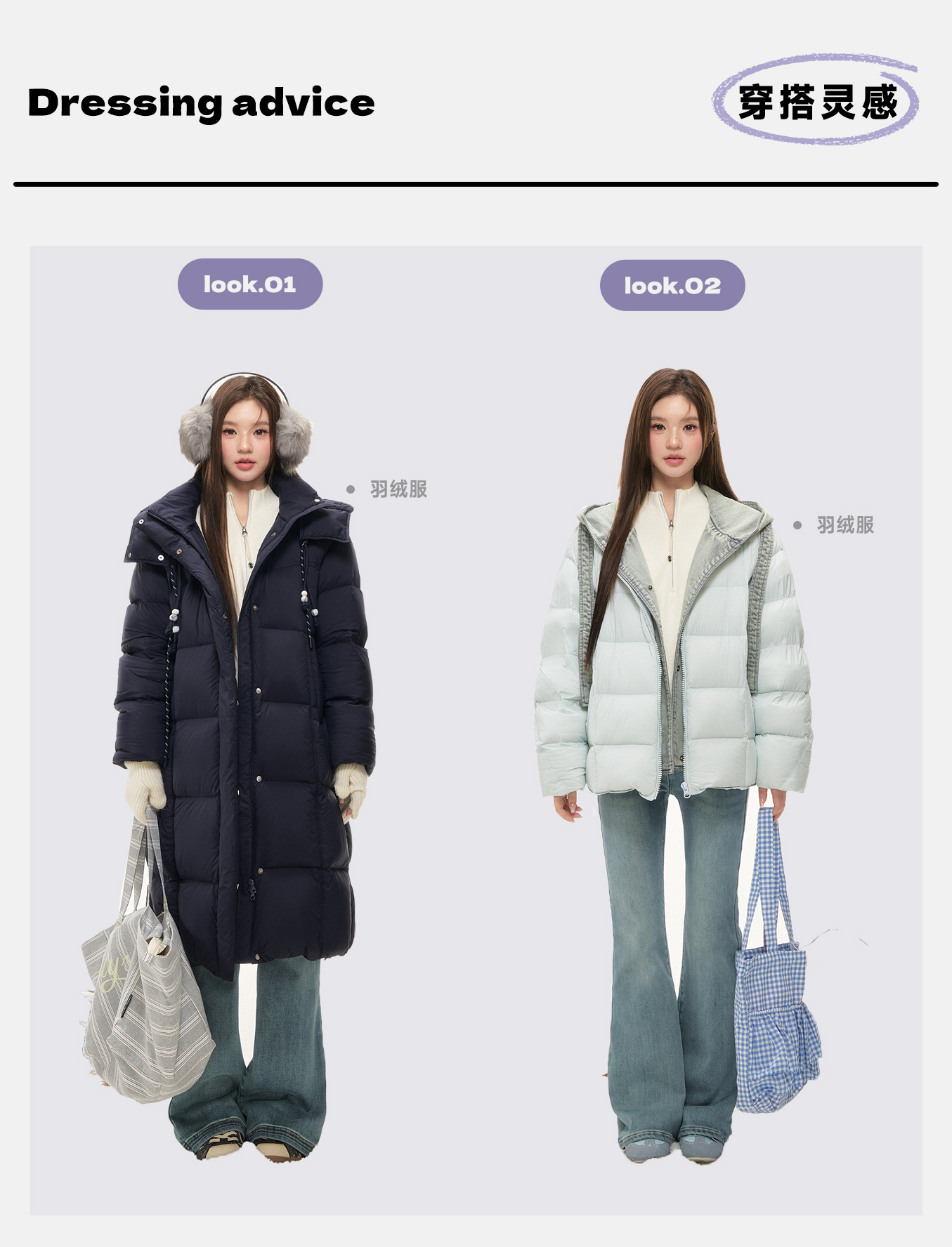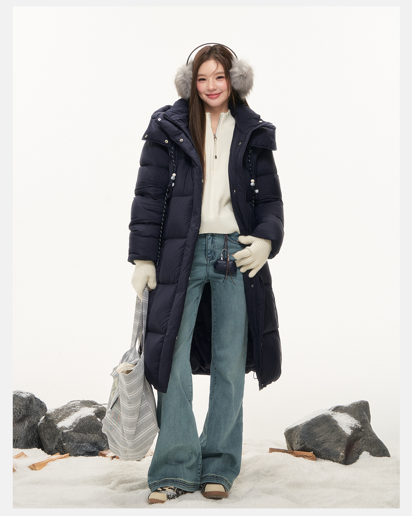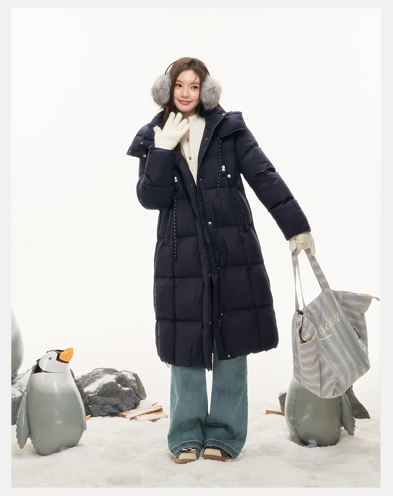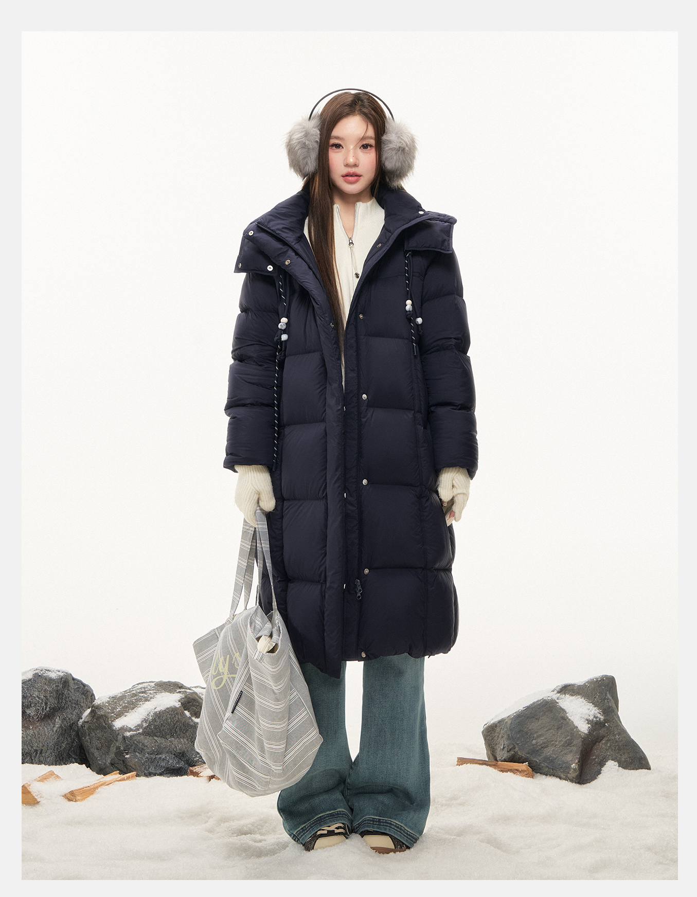 P&X设计师女装2025冬季连帽防风抗寒长款羽绒服825424070 藏蓝