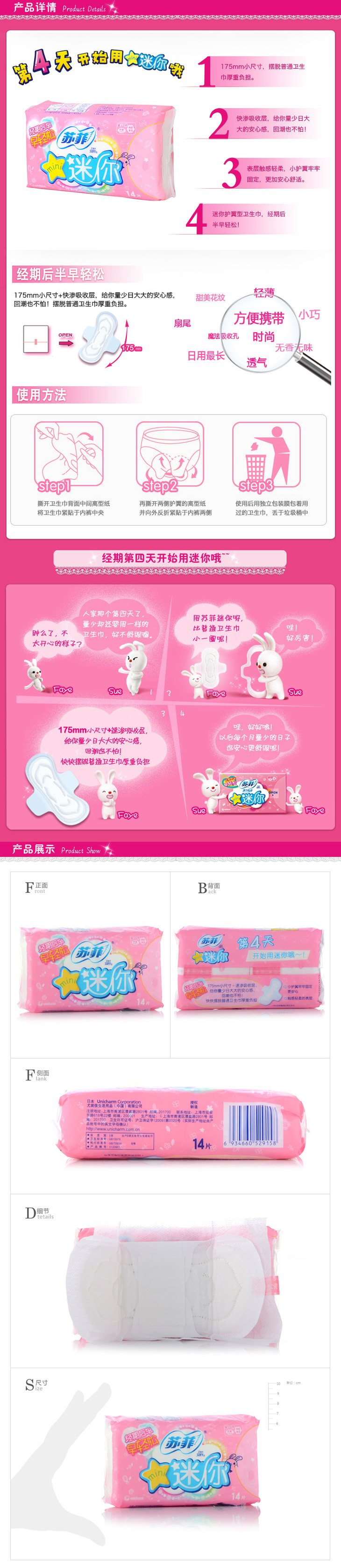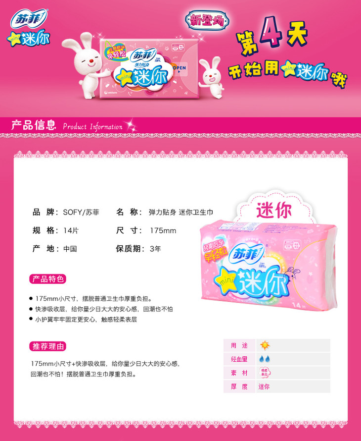 苏菲弹力贴身迷你棉柔护翼型卫生巾14片