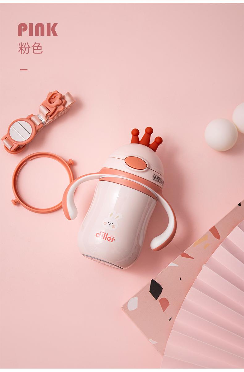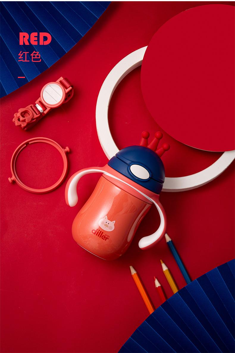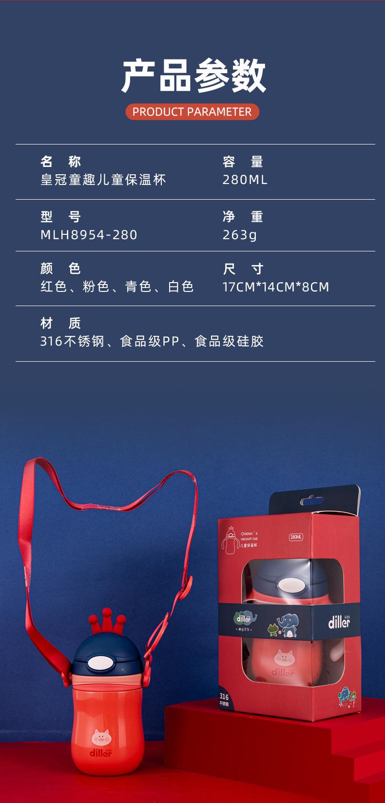 家用卡通皇冠儿童保温吸管杯 316不锈钢礼品logo宝宝喝水吸管水杯