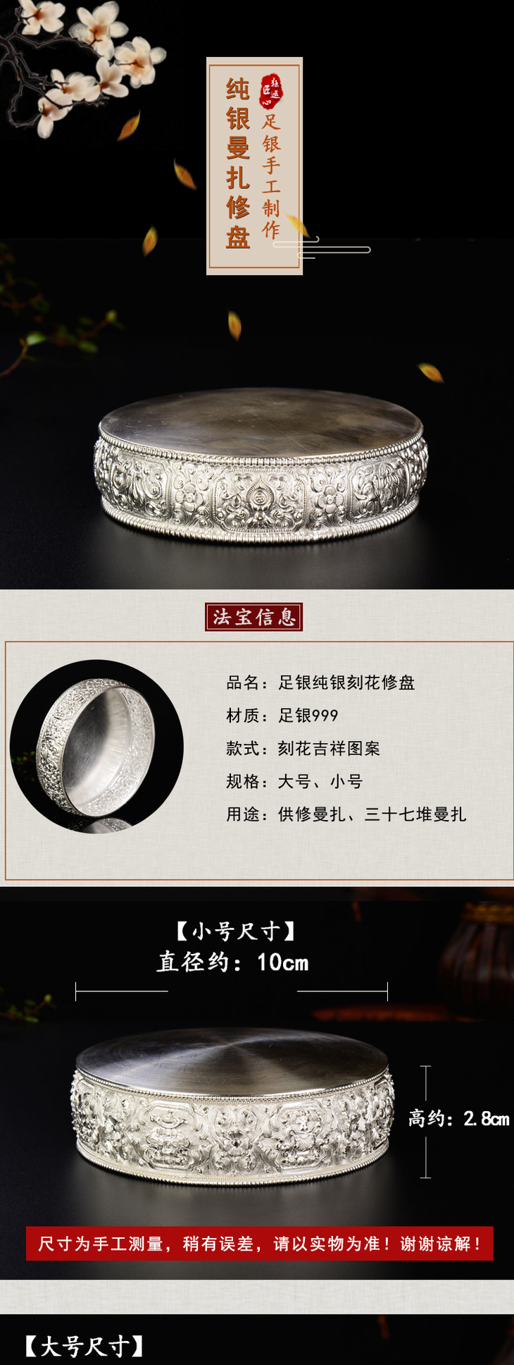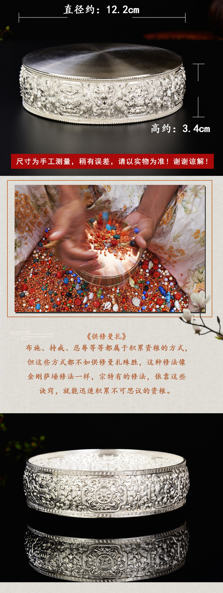 足银手工纯银曼扎修盘37堆曼扎修加行10cm~12cm