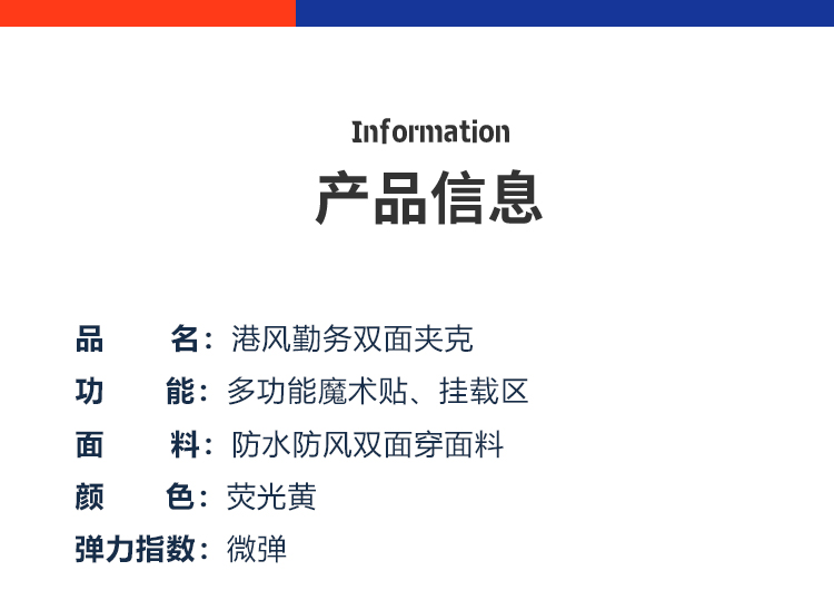 港版勤务双面夹克 巡逻便衣外套春秋(荧光款)