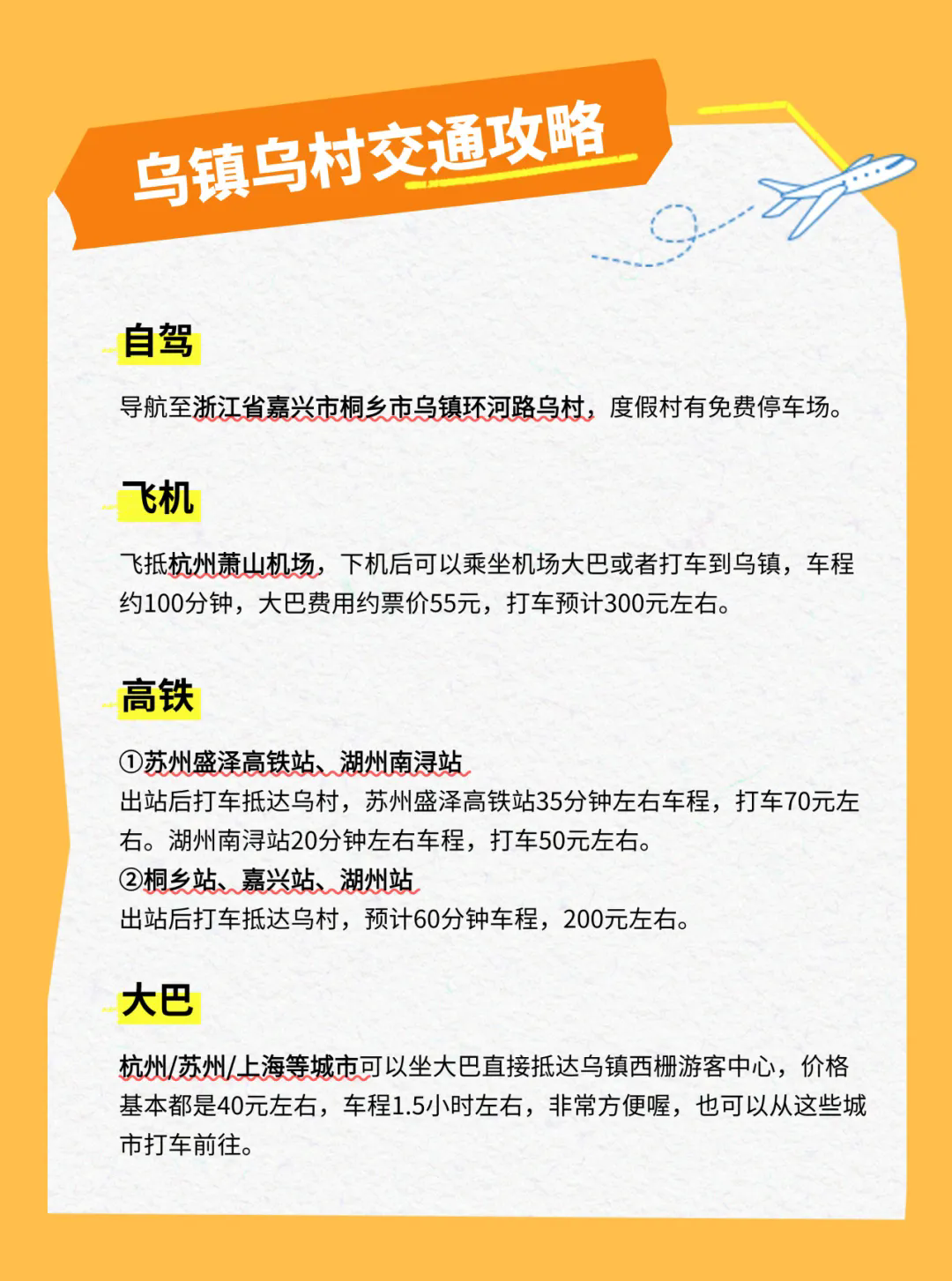 高铁:至桐乡站或嘉兴南站,出站后打车到乌村约100元左右