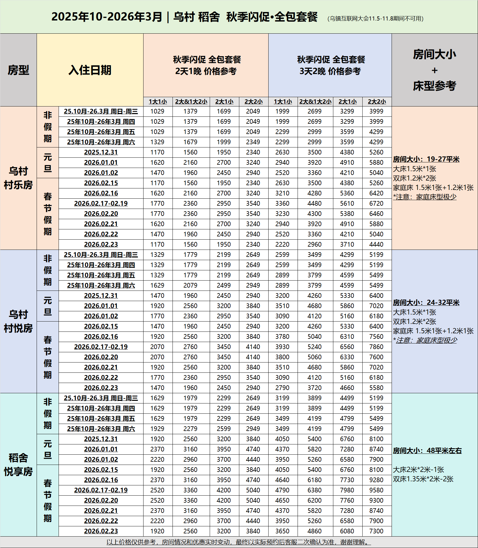 11、乌村•稻舍(一价全包)均可加价升级其他房型