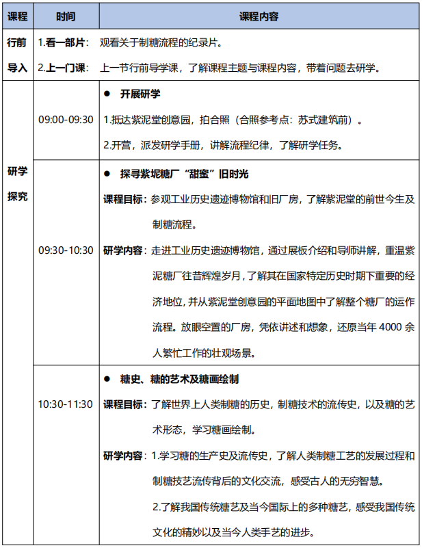 让我们一起走进紫泥堂创意园,追溯漫漫糖史、认知糖的生产流程、欣赏糖艺和工业 建筑、学习糖画绘制和食物淀粉检测吧!