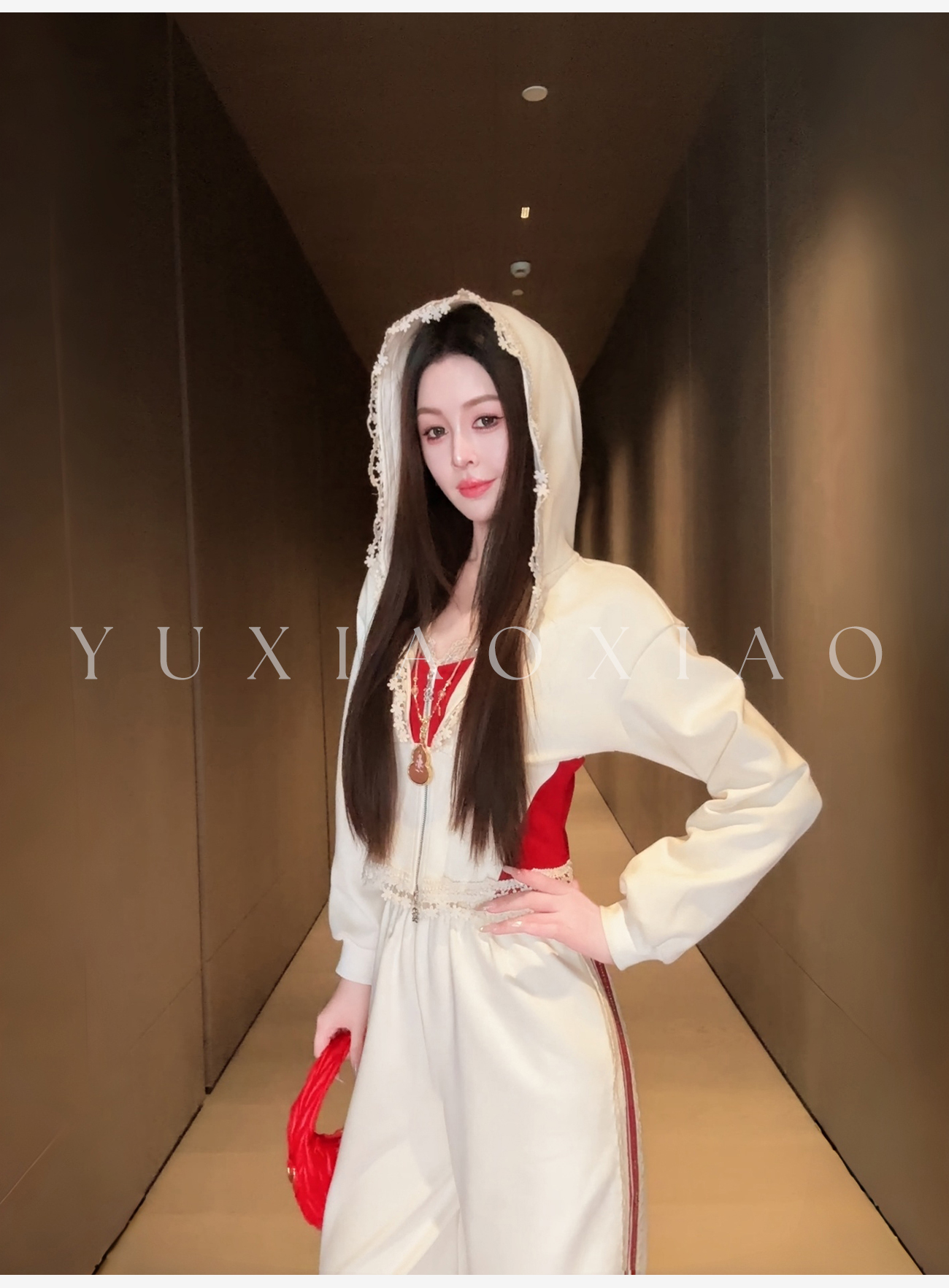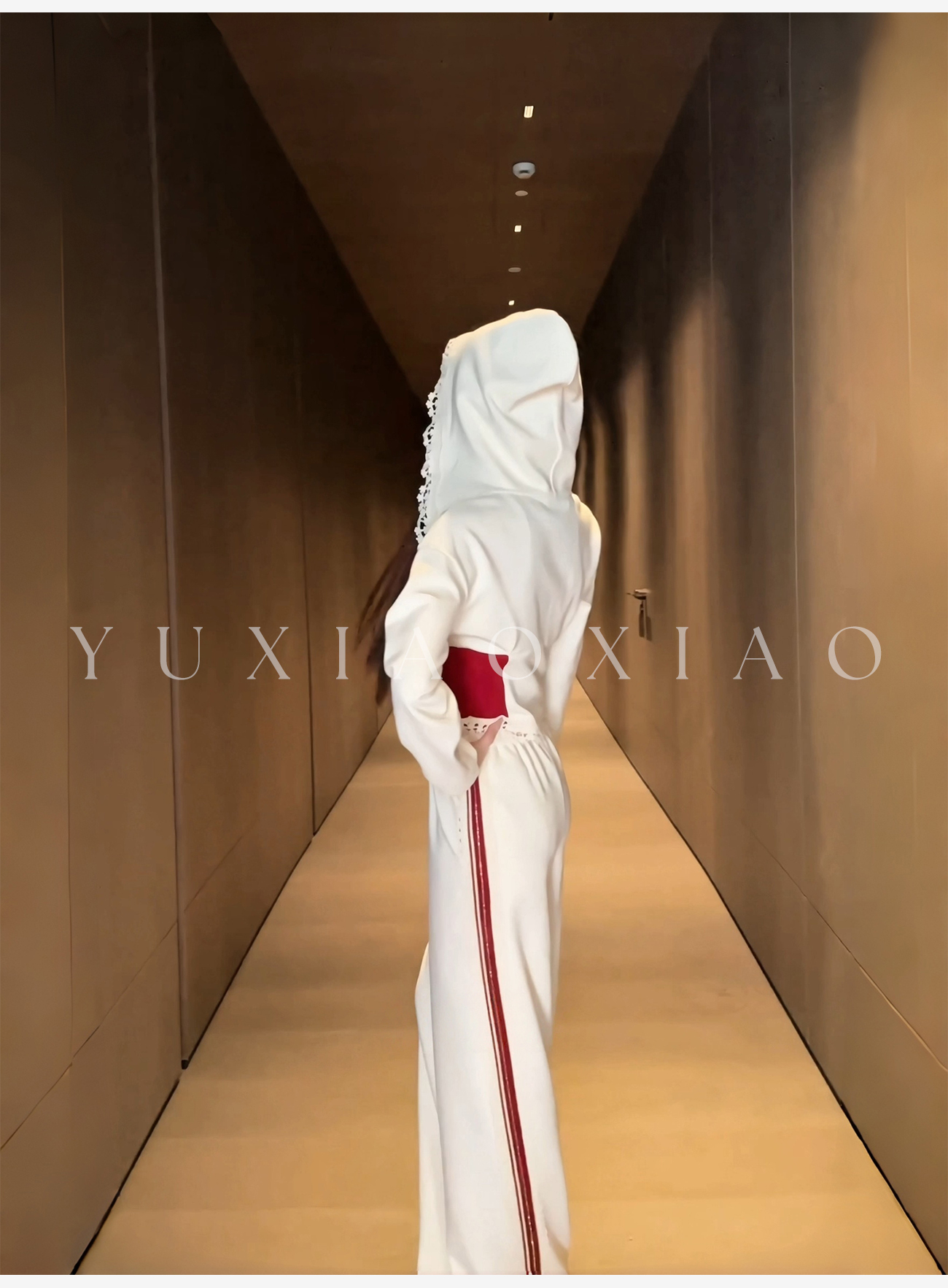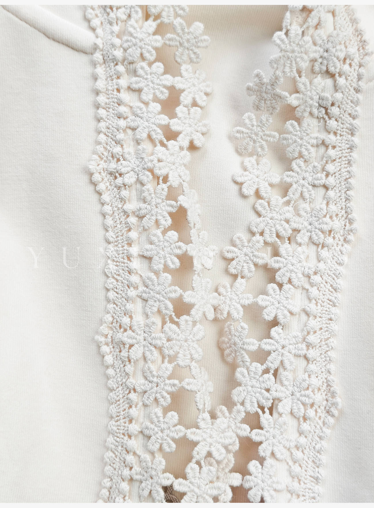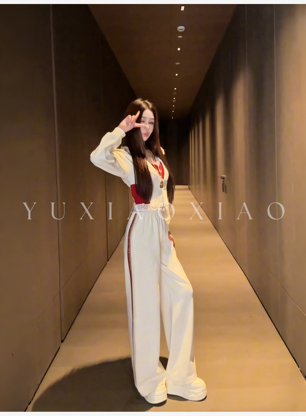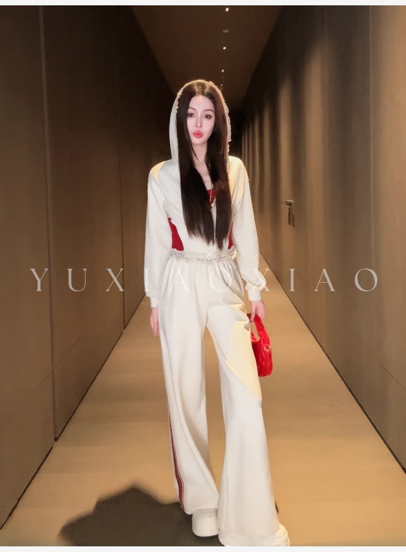 【大货捡漏,不退不换,微瑕】 【剑桥花语】高含棉双色拼接蕾丝花边连帽卫衣&休闲裤套装女