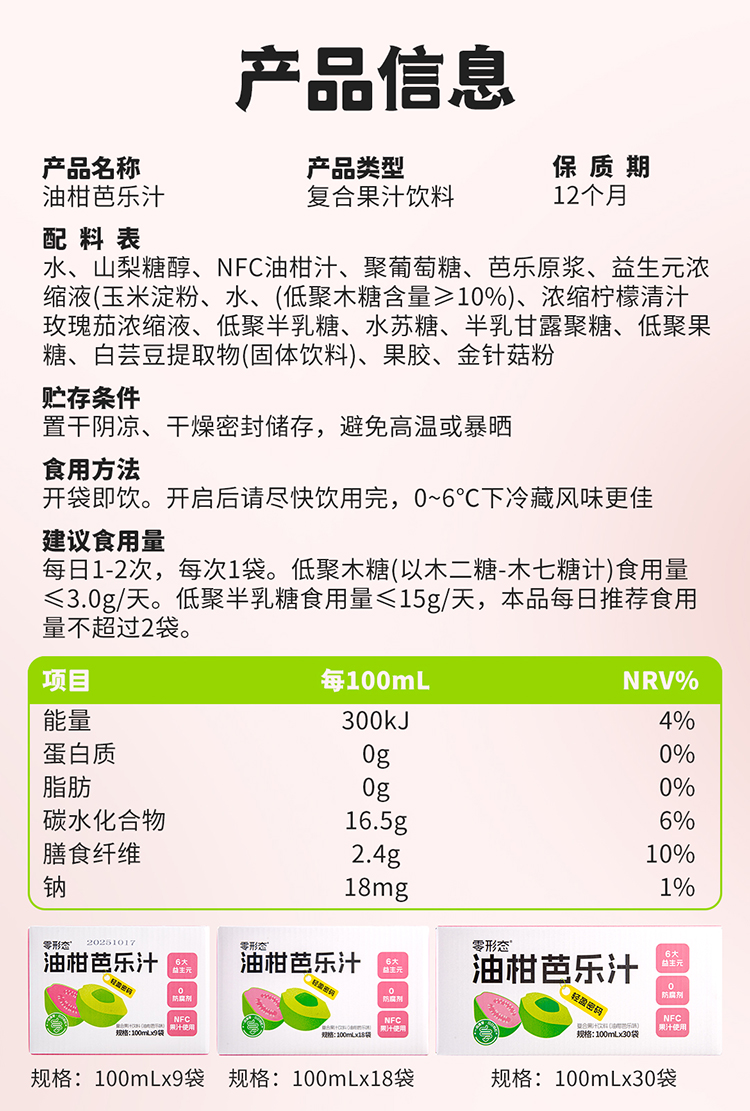【品名/规格】【零形态】油柑芭乐汁(100ml/袋)