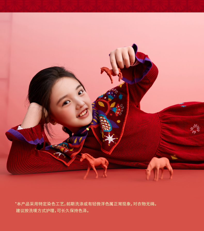 小马宝莉联名年衣童装旗袍连衣裙秋冬新款女童小马宝莉针织旗袍