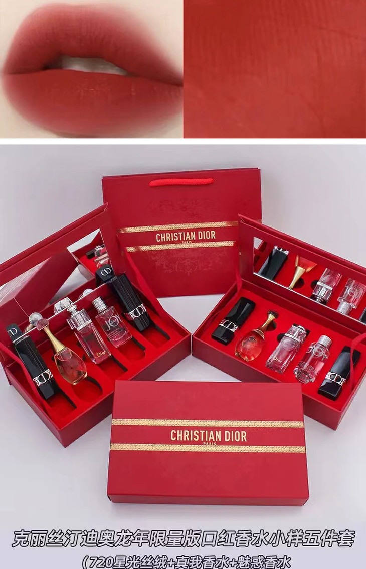 【年终限时大促】【保税仓直发·全球购】Dior/迪奥蛇年限量版口红香水小样五件套720丝绒1.5g 真我香水5ml魅惑香水5ml悦之欢香水5ml#999丝绒1.5g