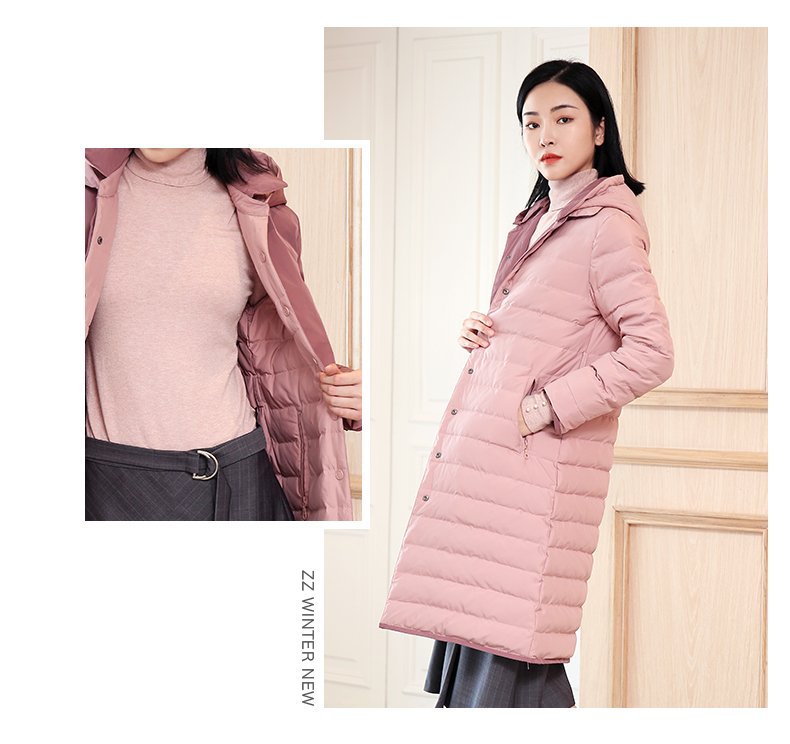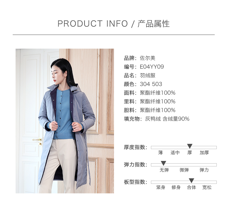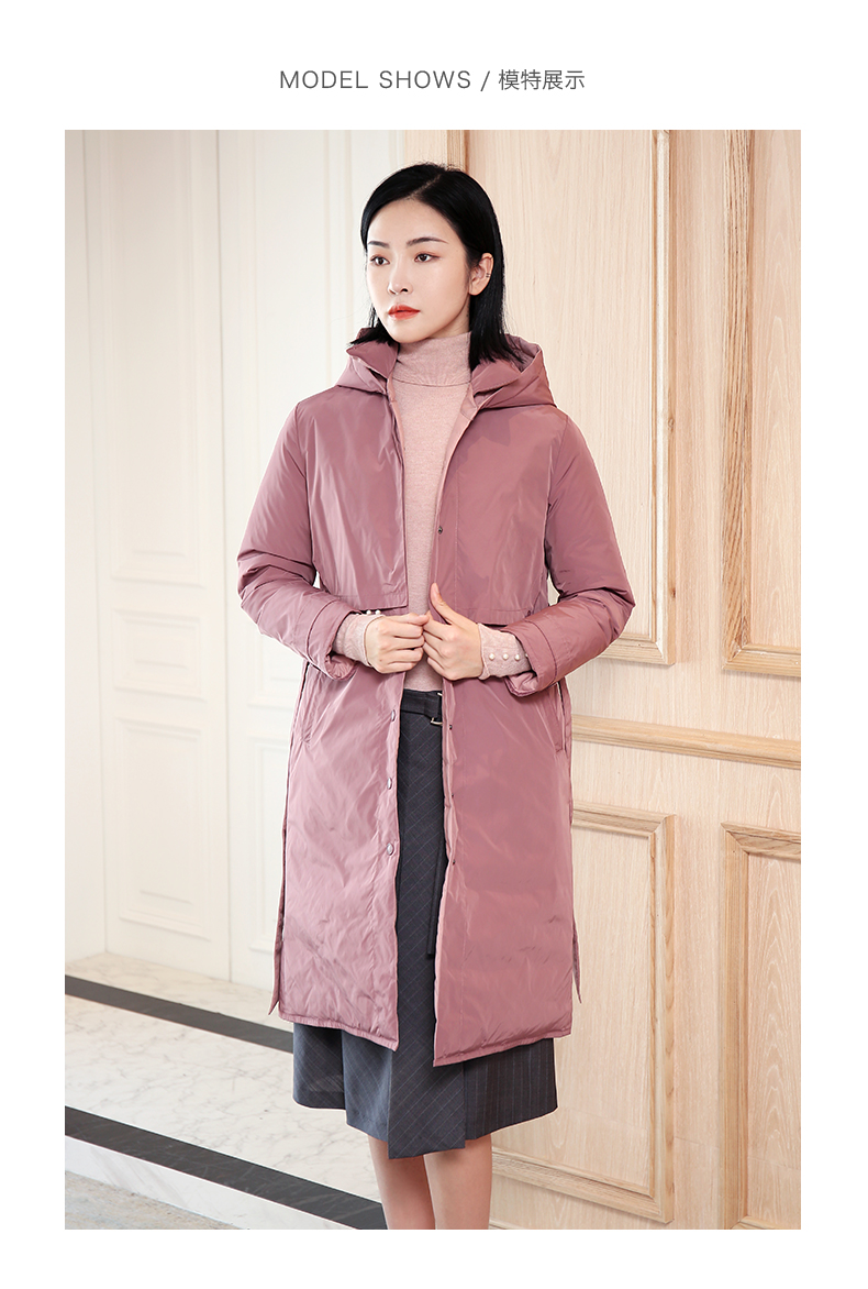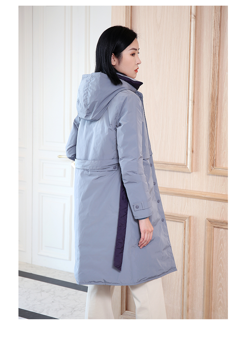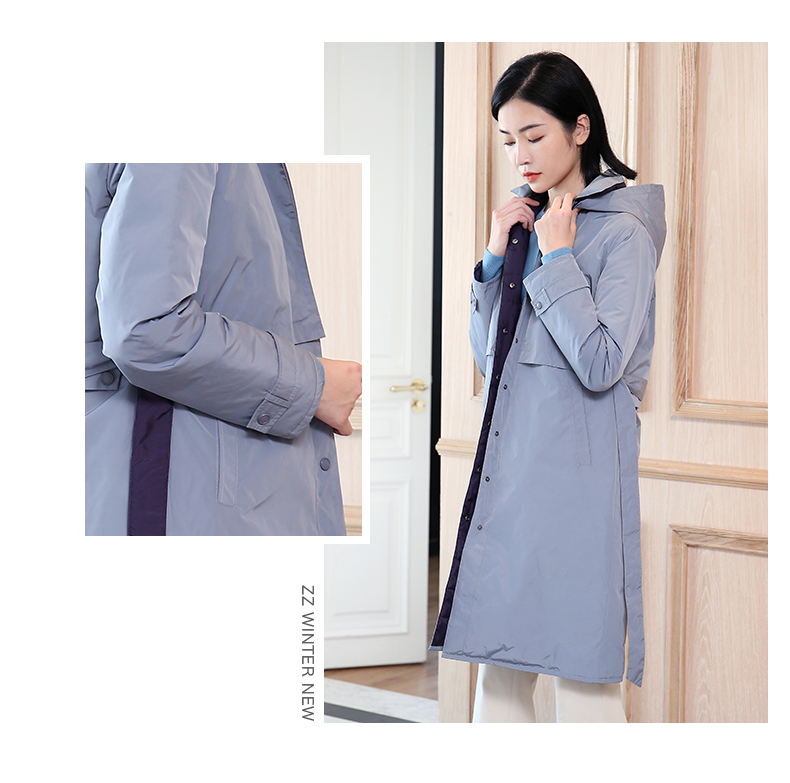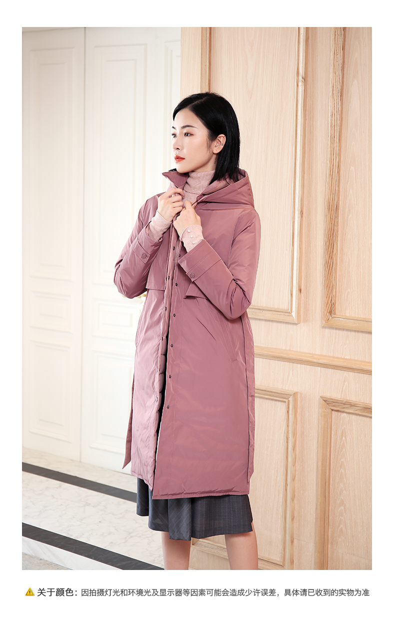 佐尔美秋冬新款商场同款加厚连帽双穿鸭绒中长款羽绒服女E04YY09