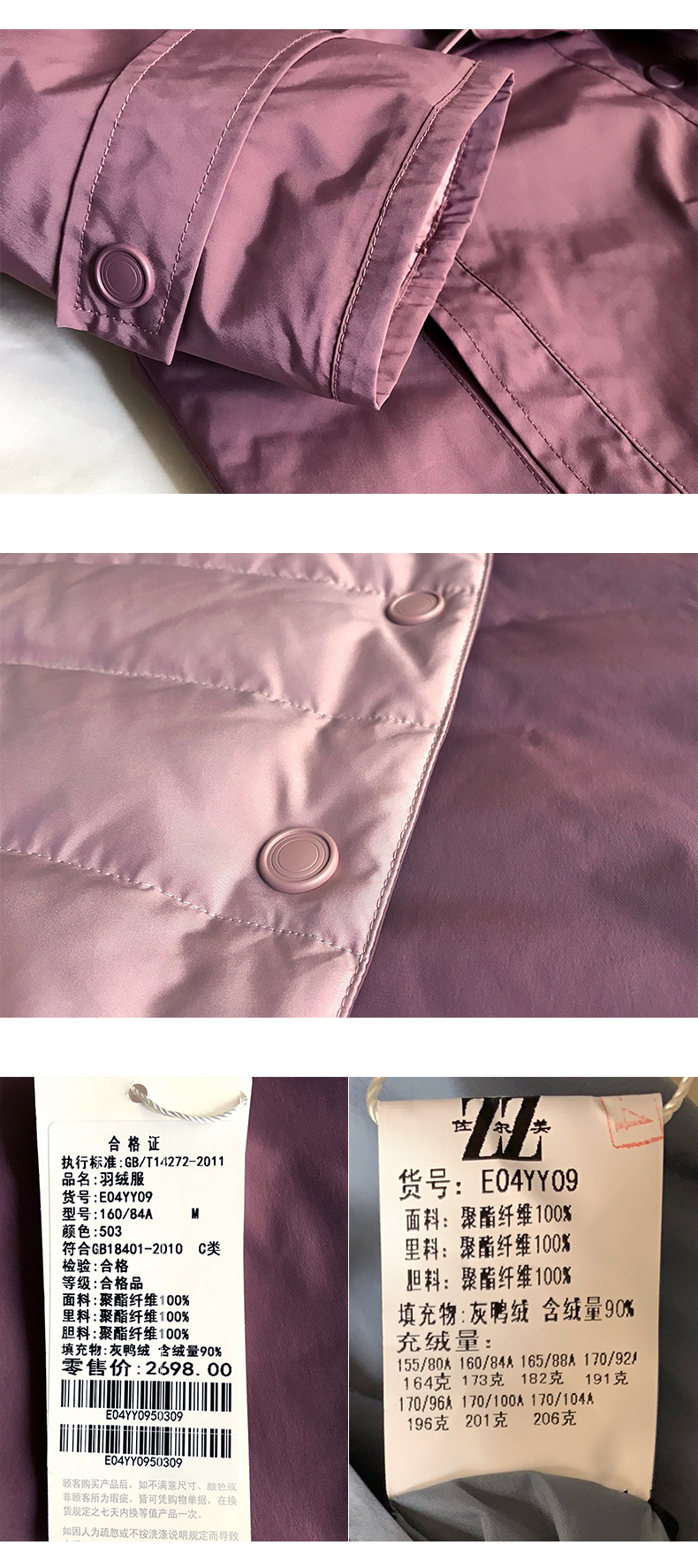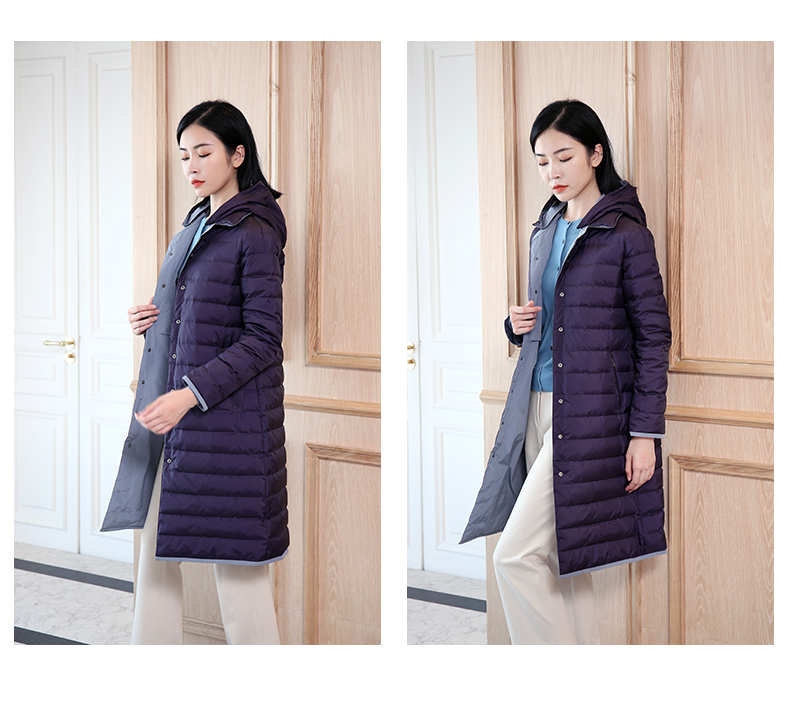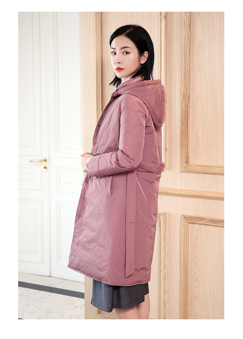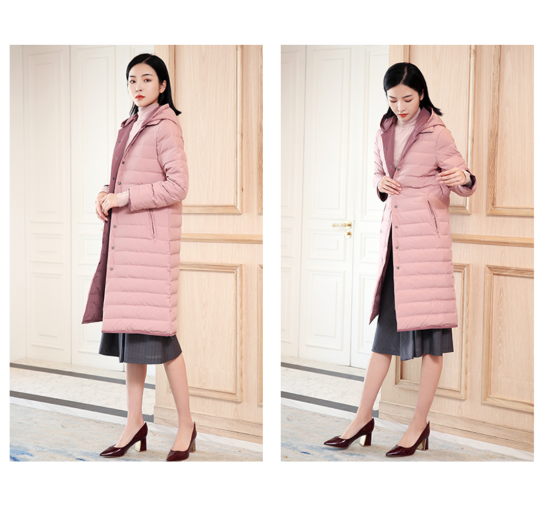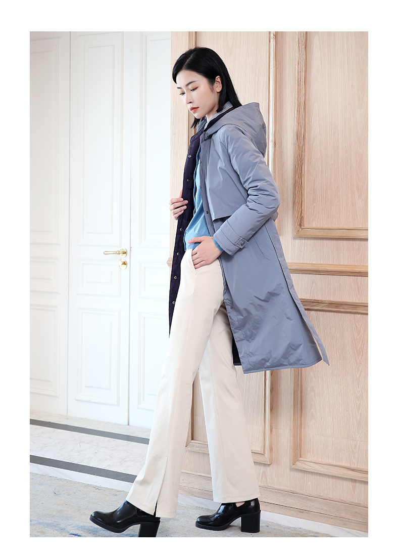 佐尔美秋冬新款商场同款加厚连帽双穿鸭绒中长款羽绒服女E04YY09