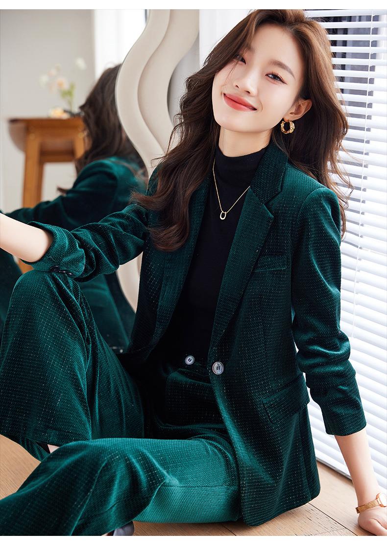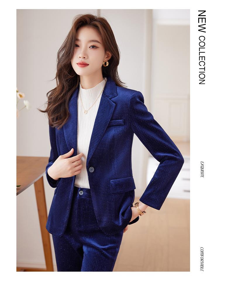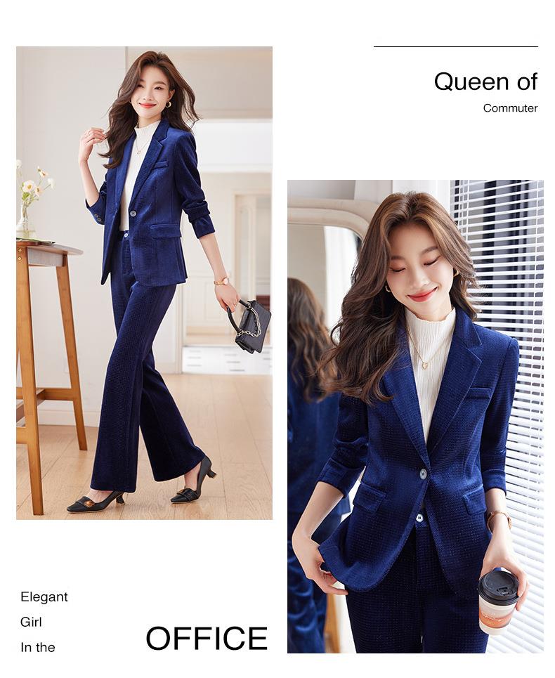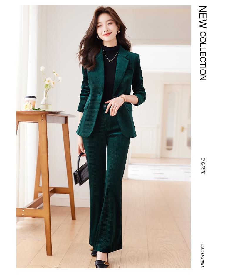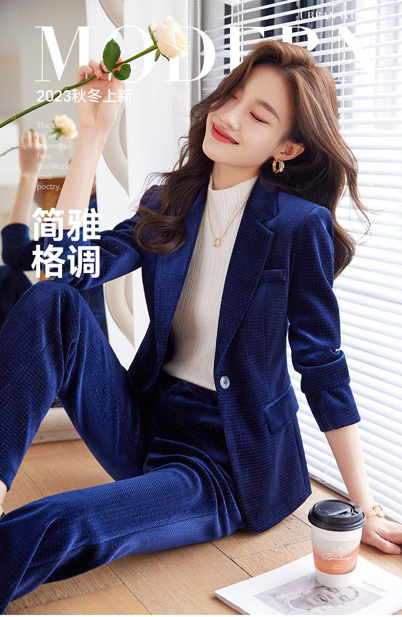 高端金丝绒西装套装两件套女秋季2023新款气质时尚微叭裤修身外套
