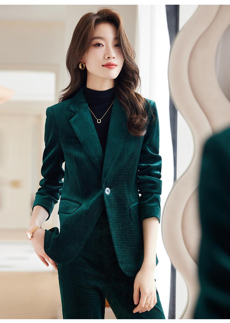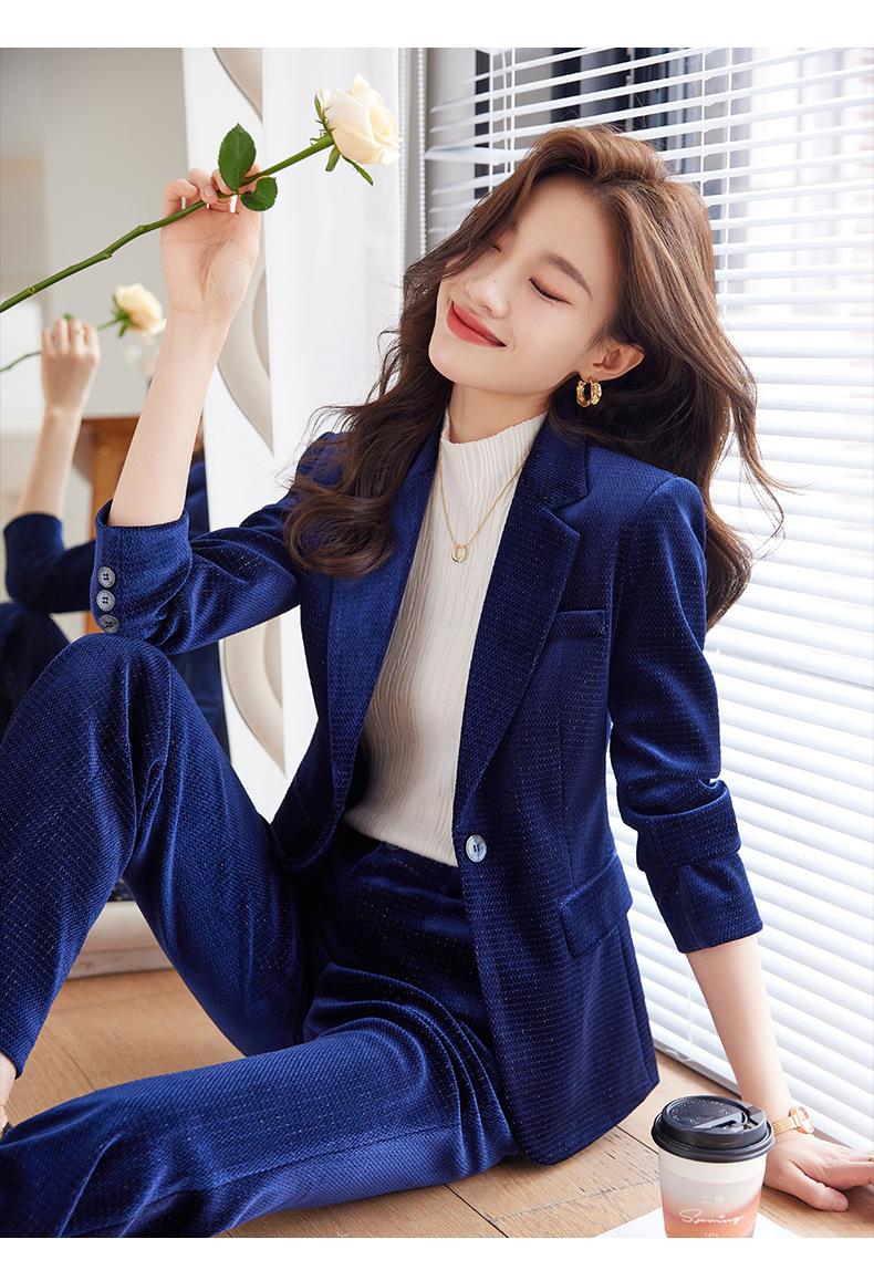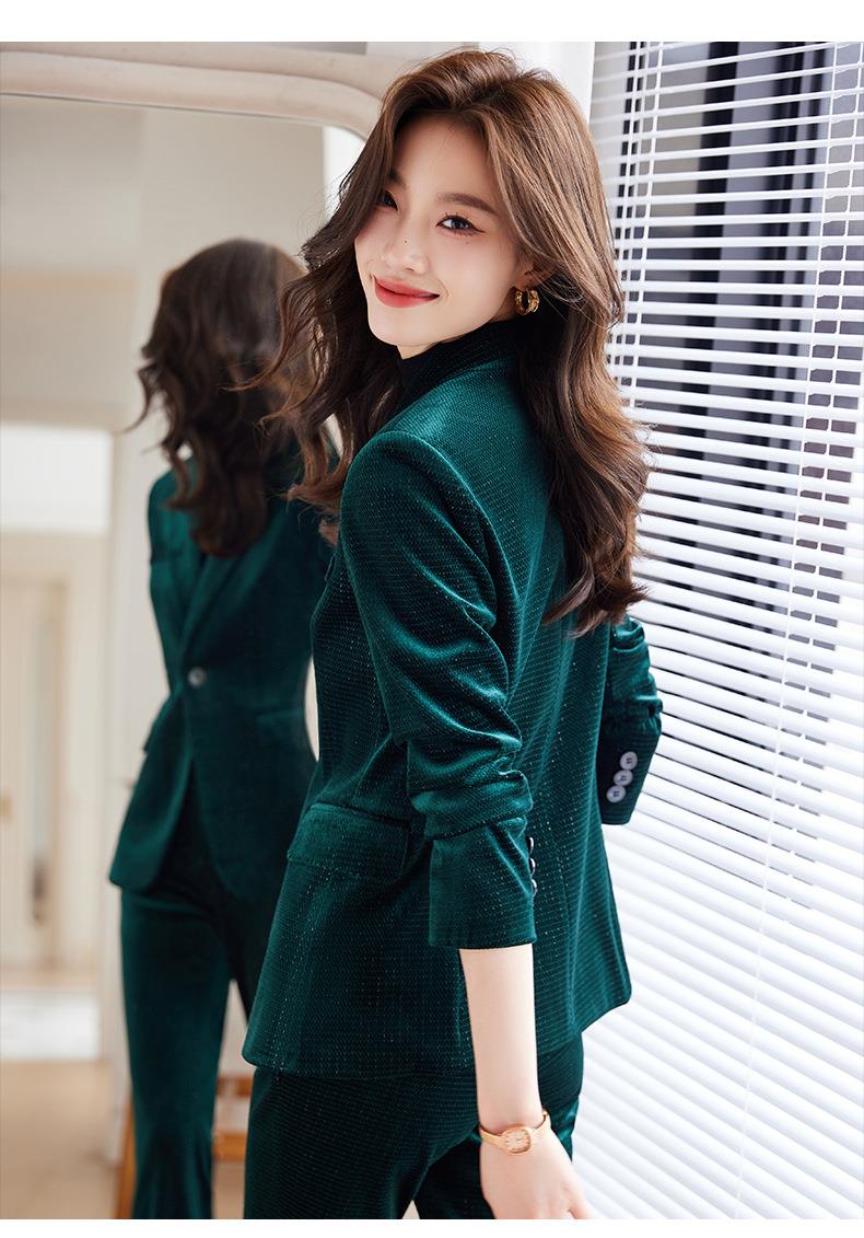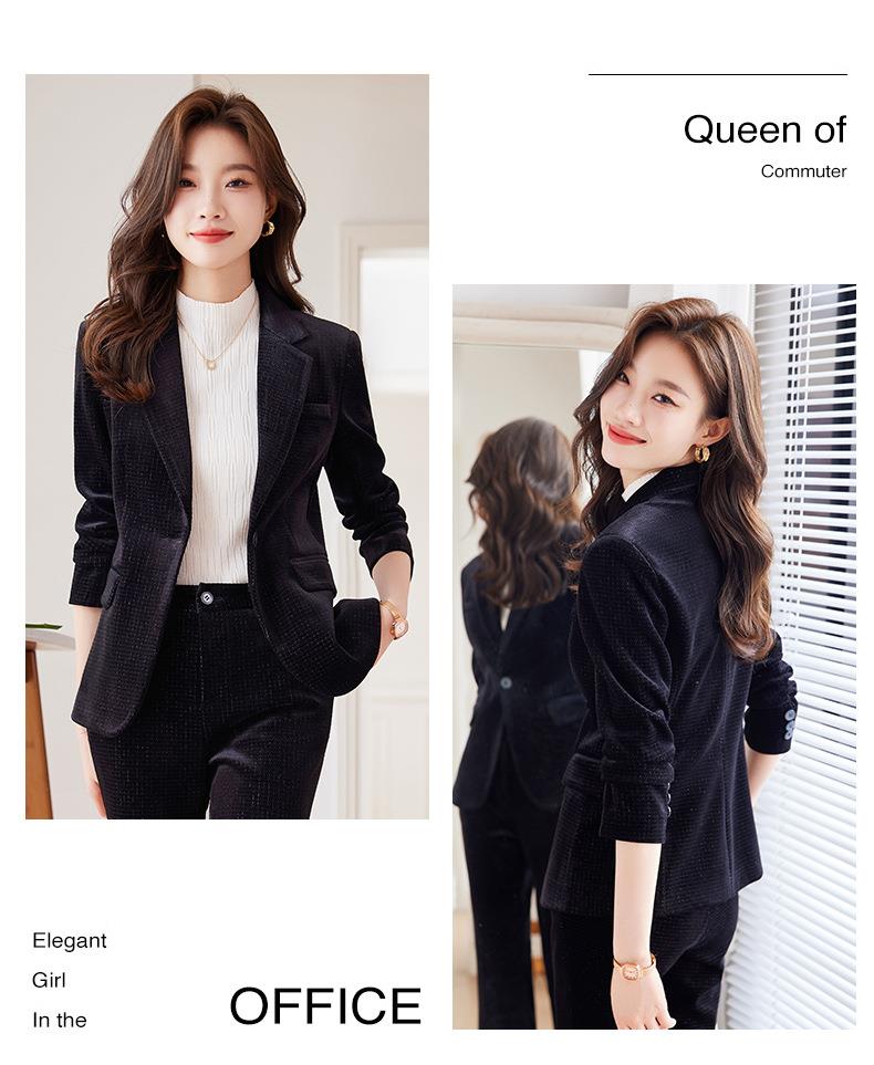 高端金丝绒西装套装两件套女秋季2023新款气质时尚微叭裤修身外套