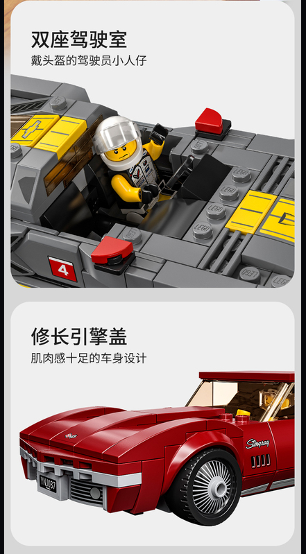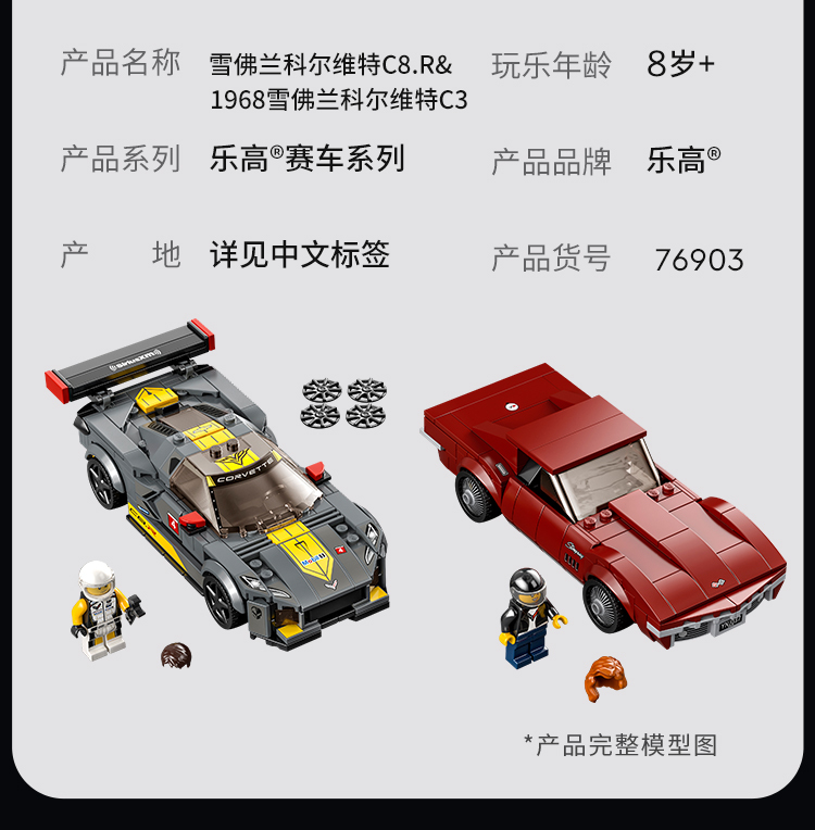 乐高LEGO 雪佛兰Corvette C8.R赛车和1968雪佛兰Corvette LEGC76903