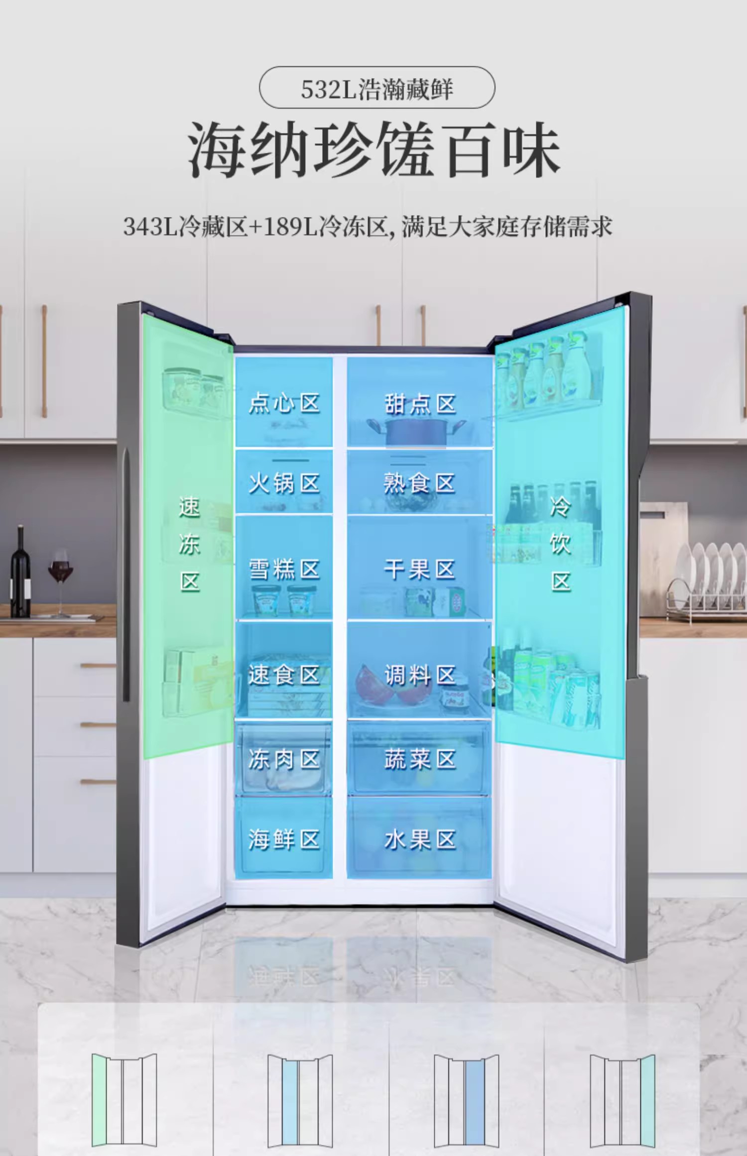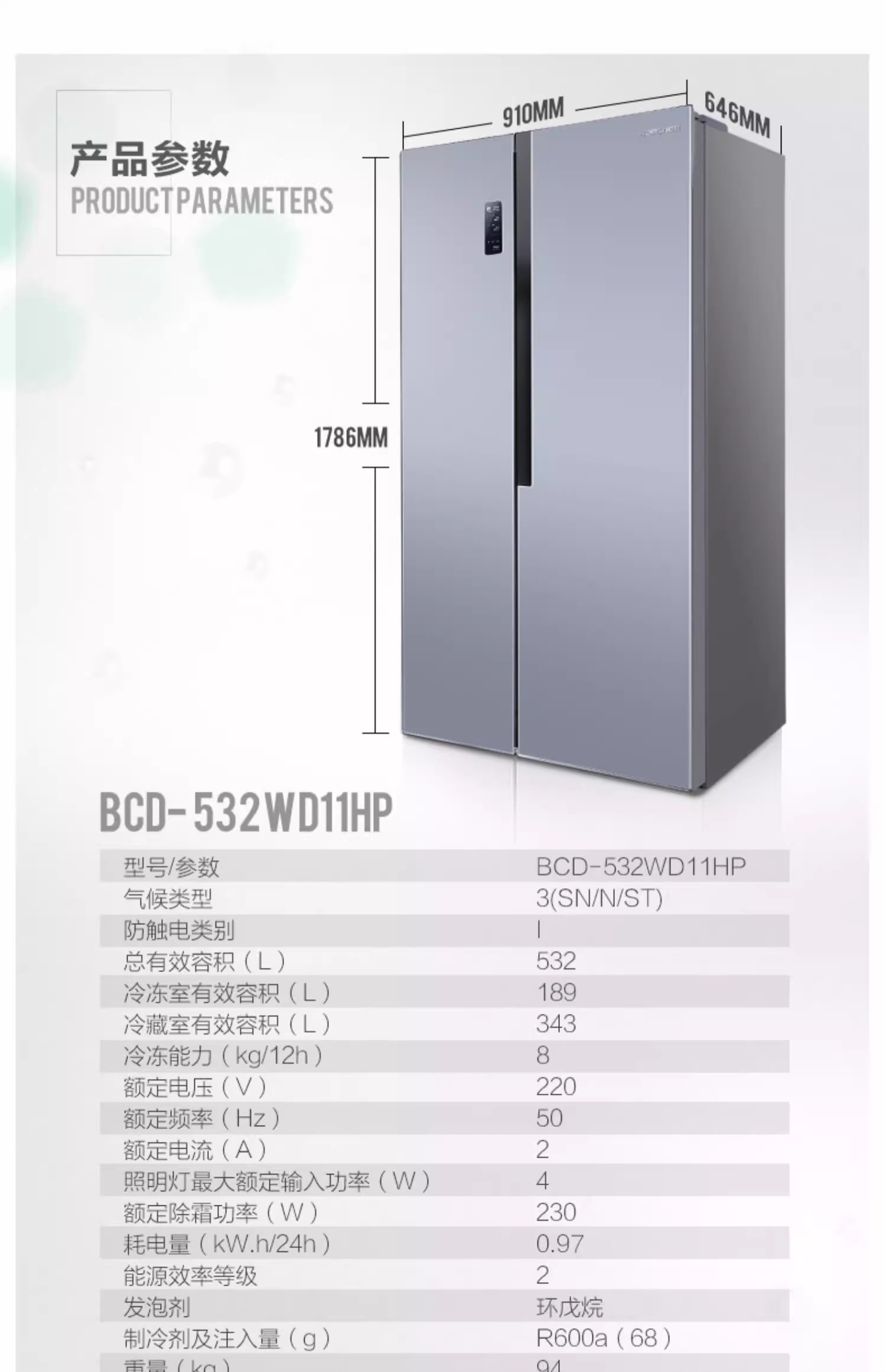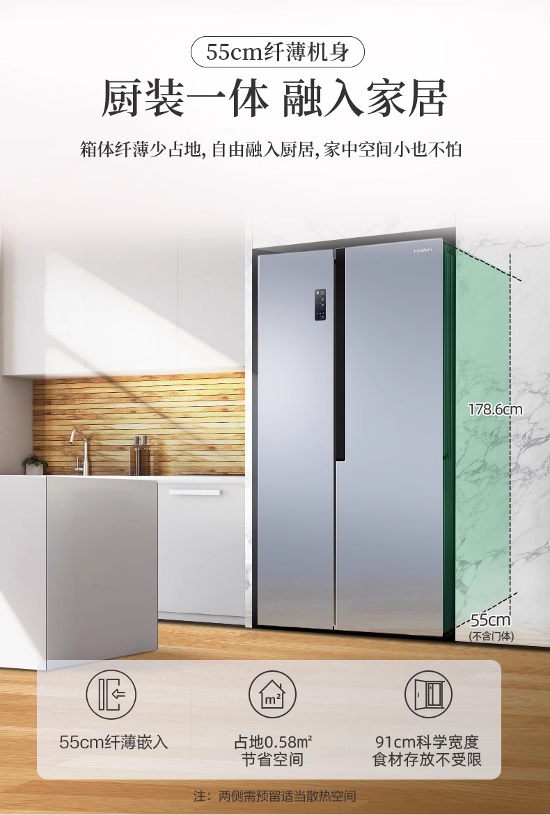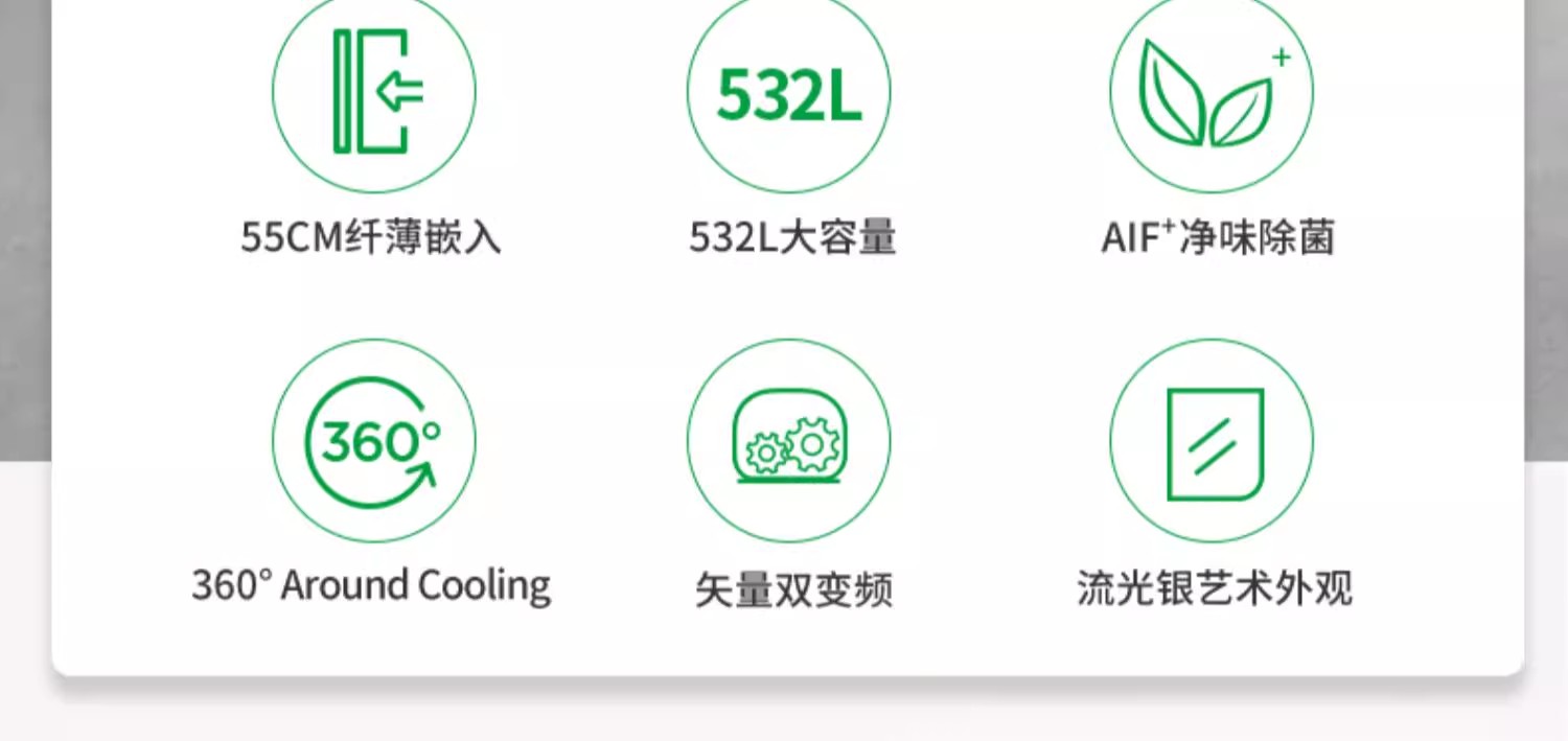 容声BCD-532WD11HP纤薄嵌入矢量变频流光魅影AIF+离子净味【LY直播】