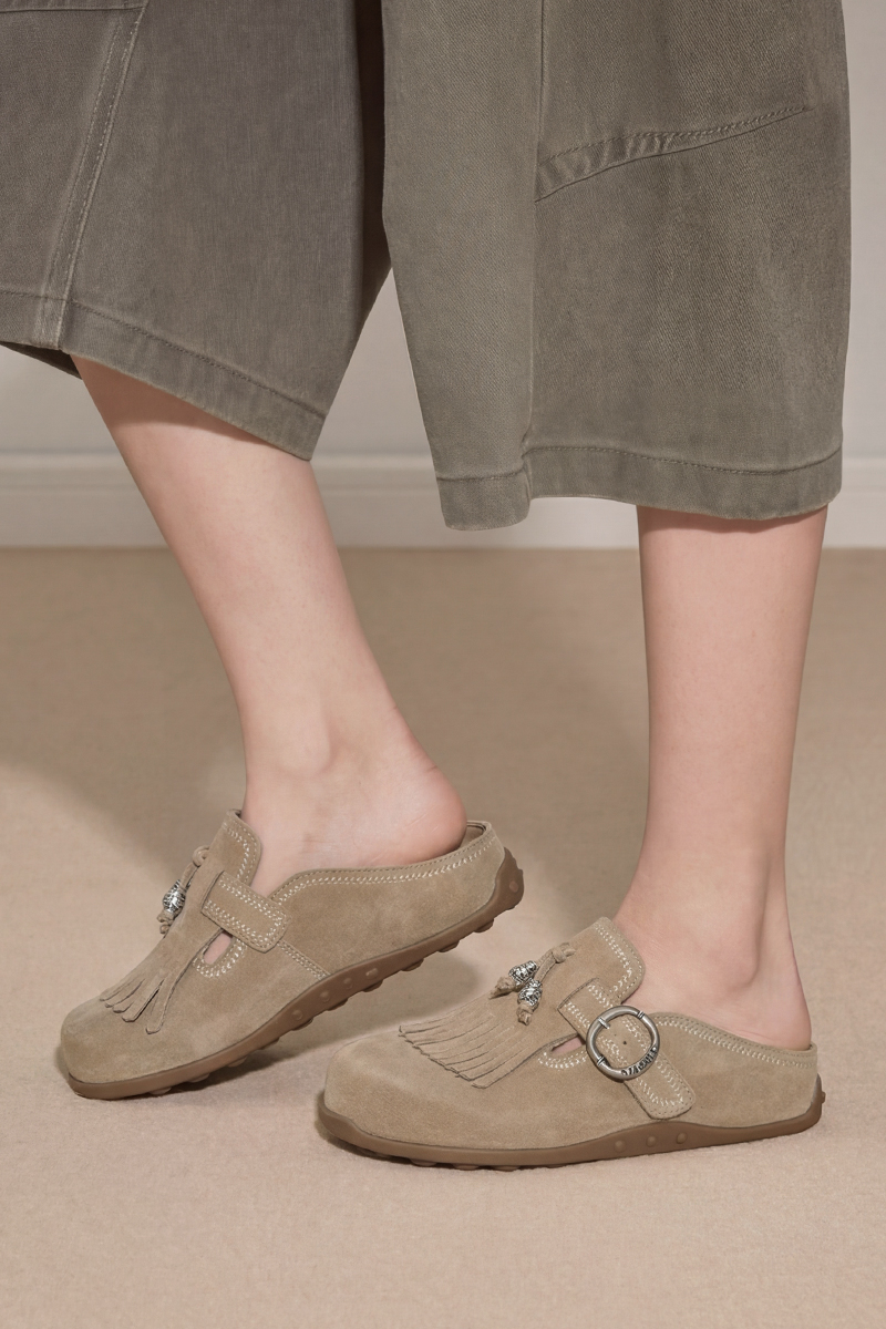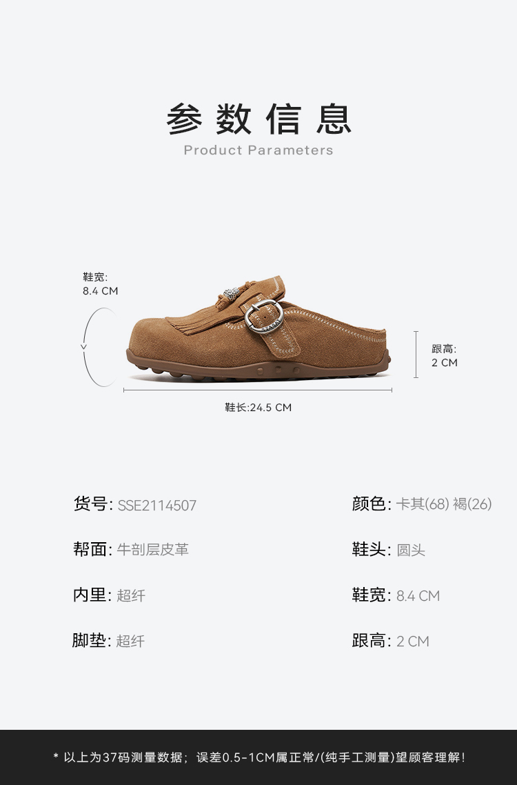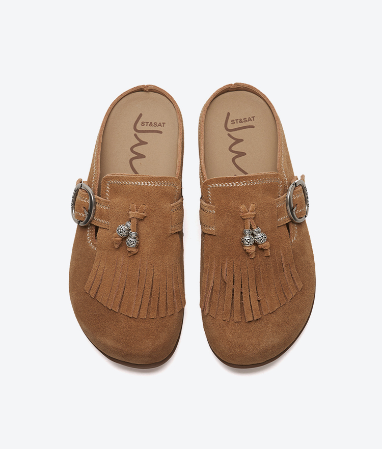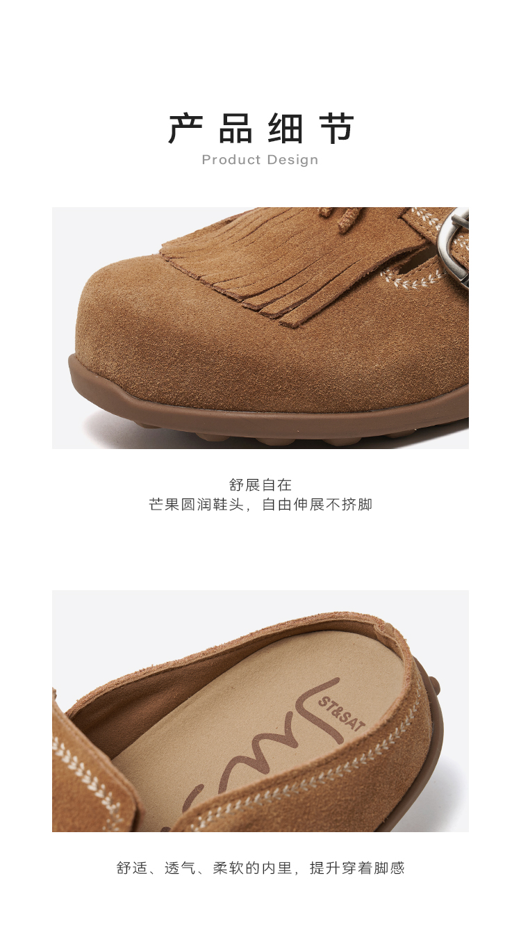 星期六26夏新款复古流苏一脚蹬博肯拖SSE2114507