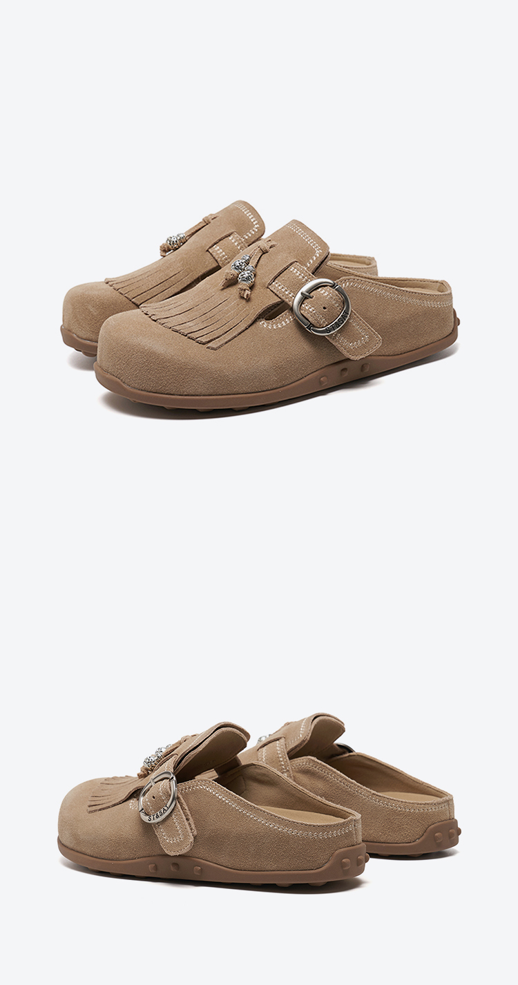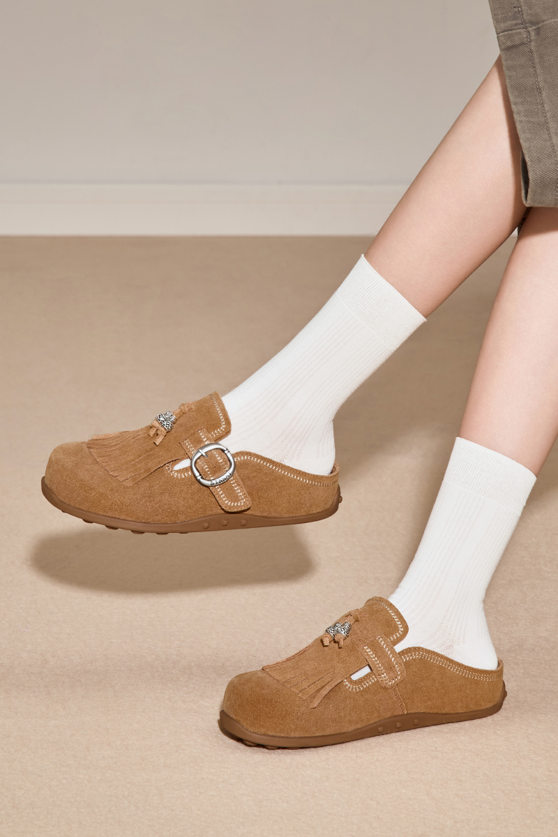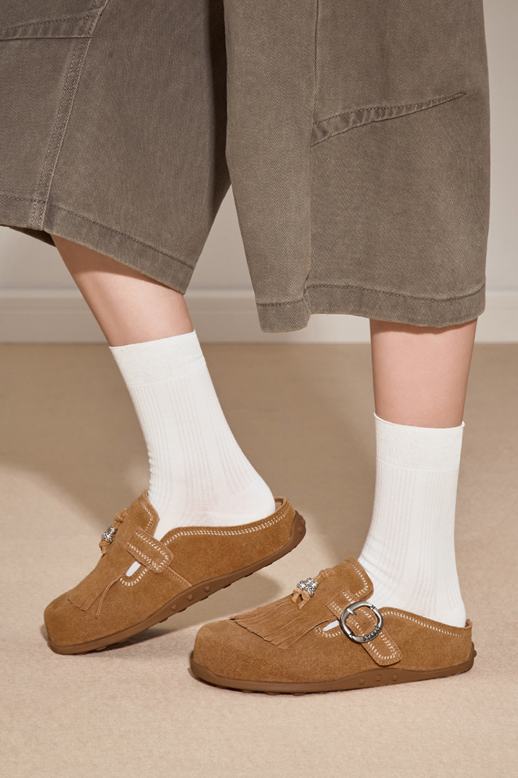 星期六26夏新款复古流苏一脚蹬博肯拖SSE2114507