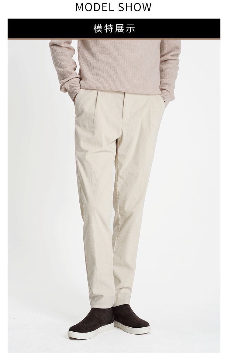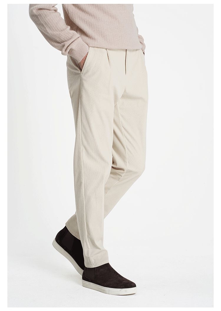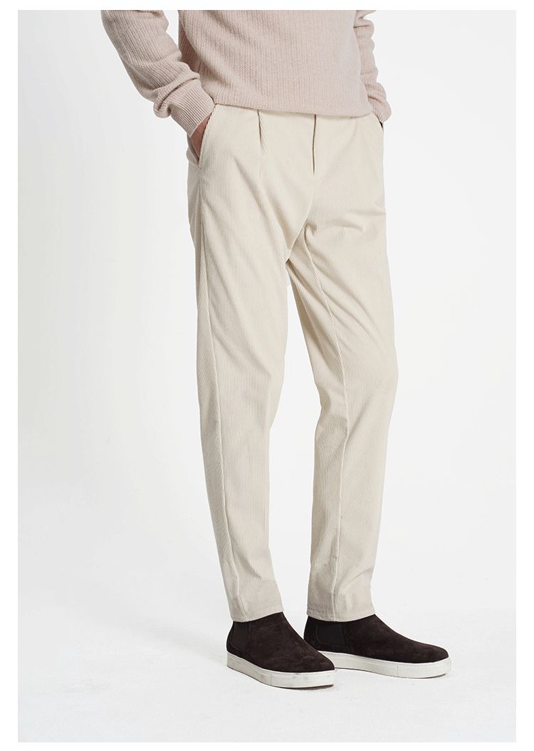 callisto米白罗马柱条纹立体条绒休闲裤