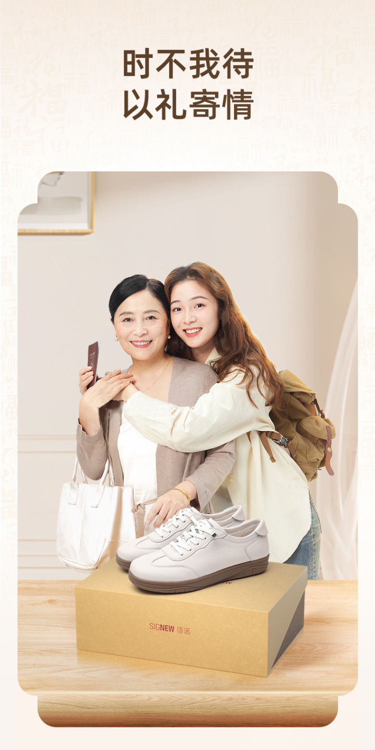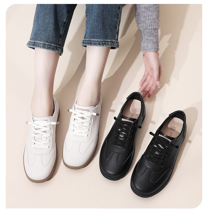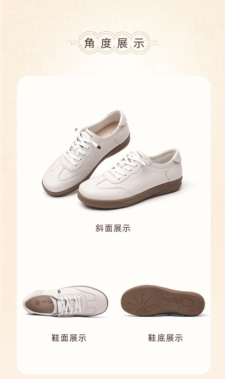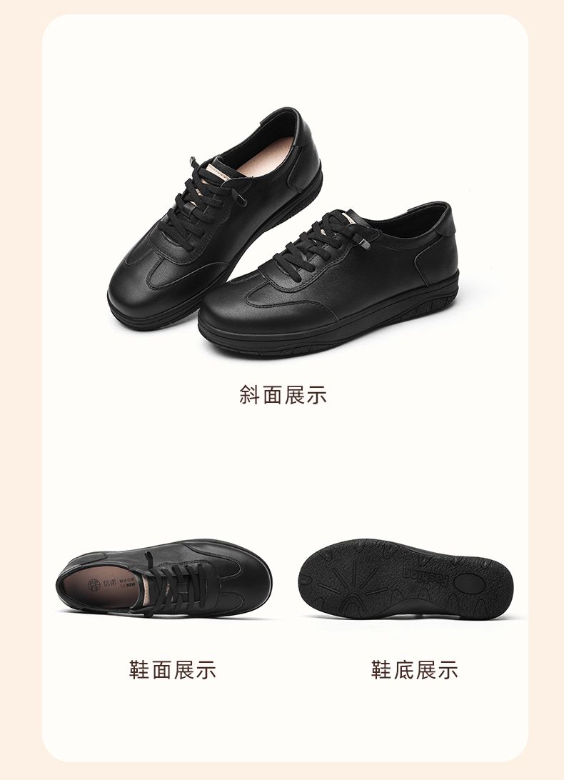 信诺真皮休闲鞋2024新款秋季软底牛皮防滑女士单鞋妈妈鞋运动皮鞋Q3066-7