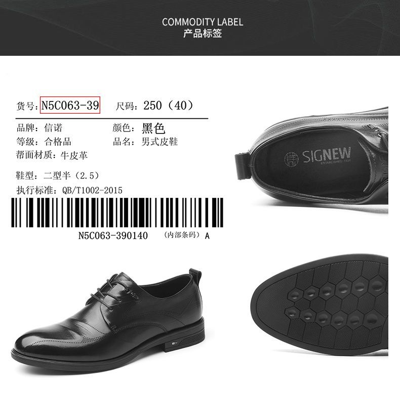 信诺真皮软底耐磨正装皮鞋2025年春季新款休闲商务结婚男士德比鞋N5C063-39