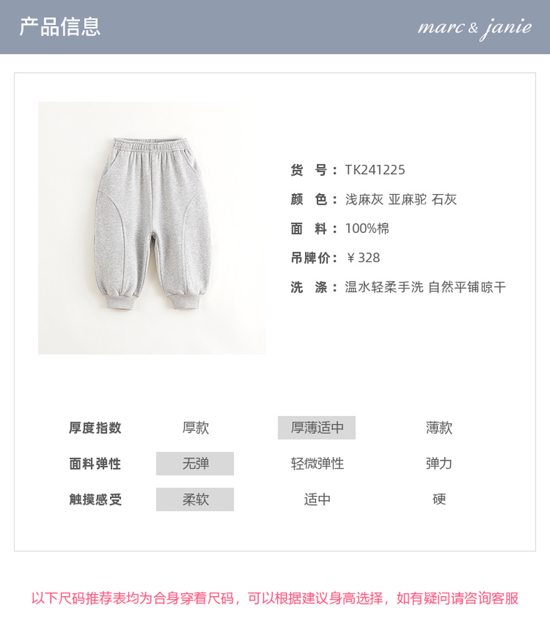 马克珍妮男童休闲时尚拼接纯棉束脚萝卜裤2024年秋装新款241225