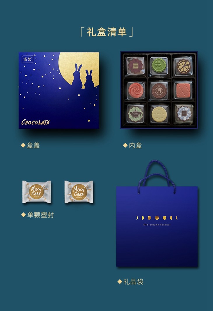 【诺梵】巧克力月饼礼盒-月夜星情(9枚装)产地直发