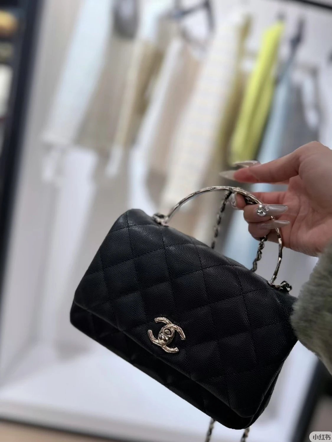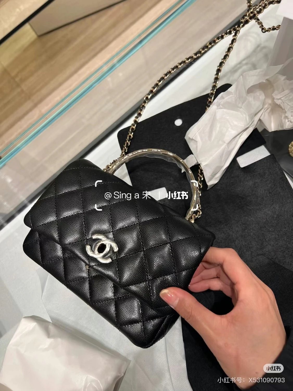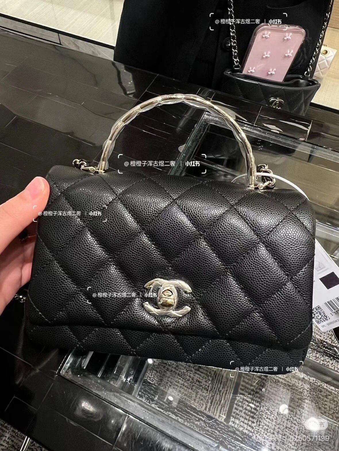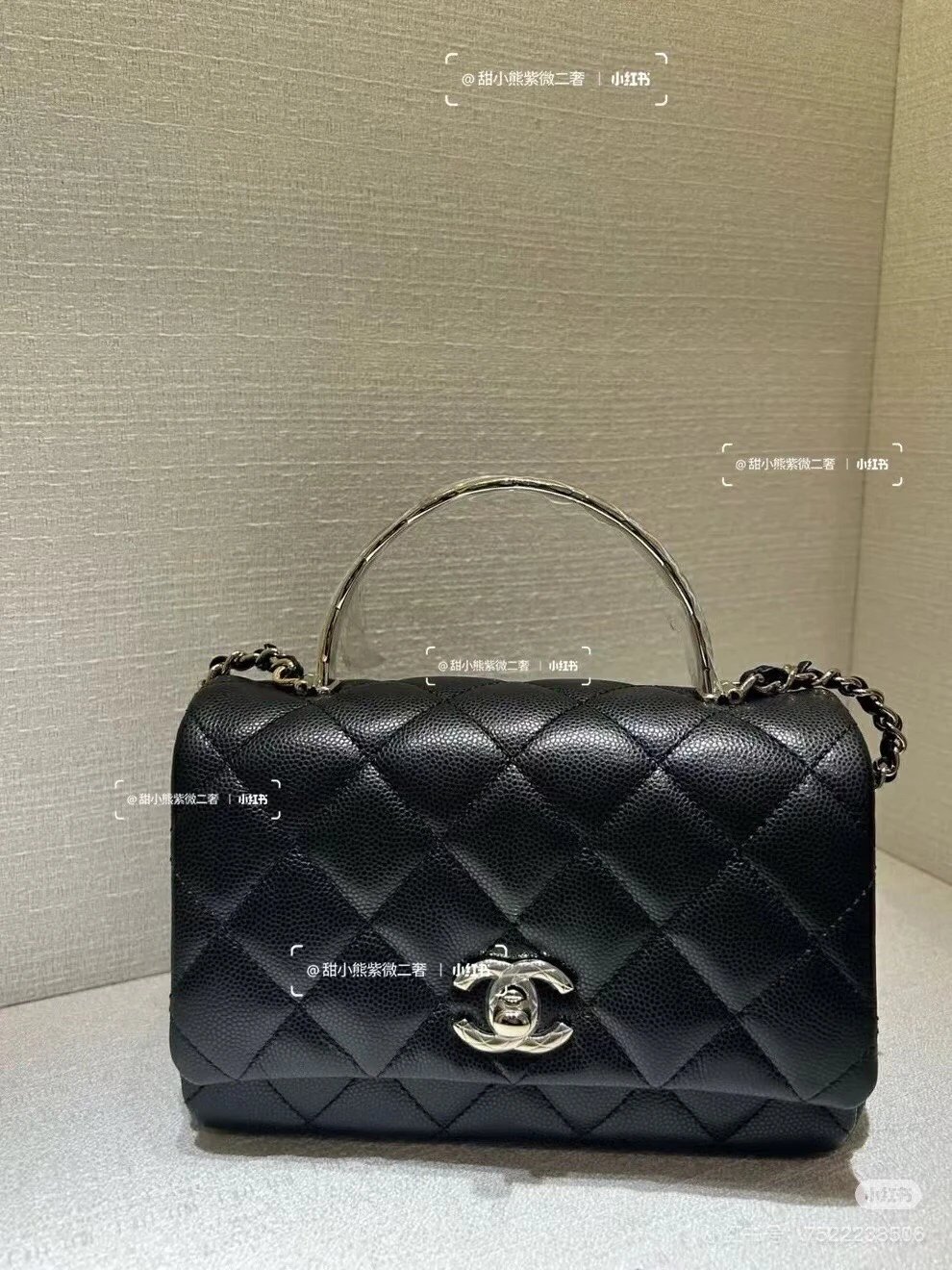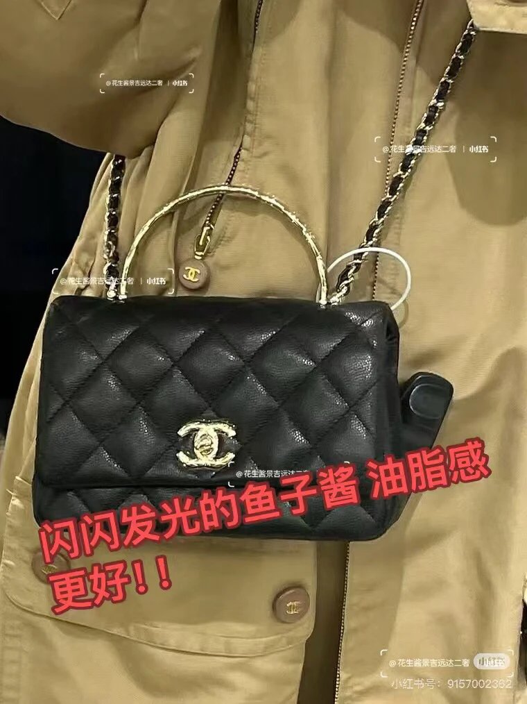 重磅渠道 coco crush手柄 Hass鹅软石牛皮鱼子酱 菱格金属手柄斜挎包 链条包