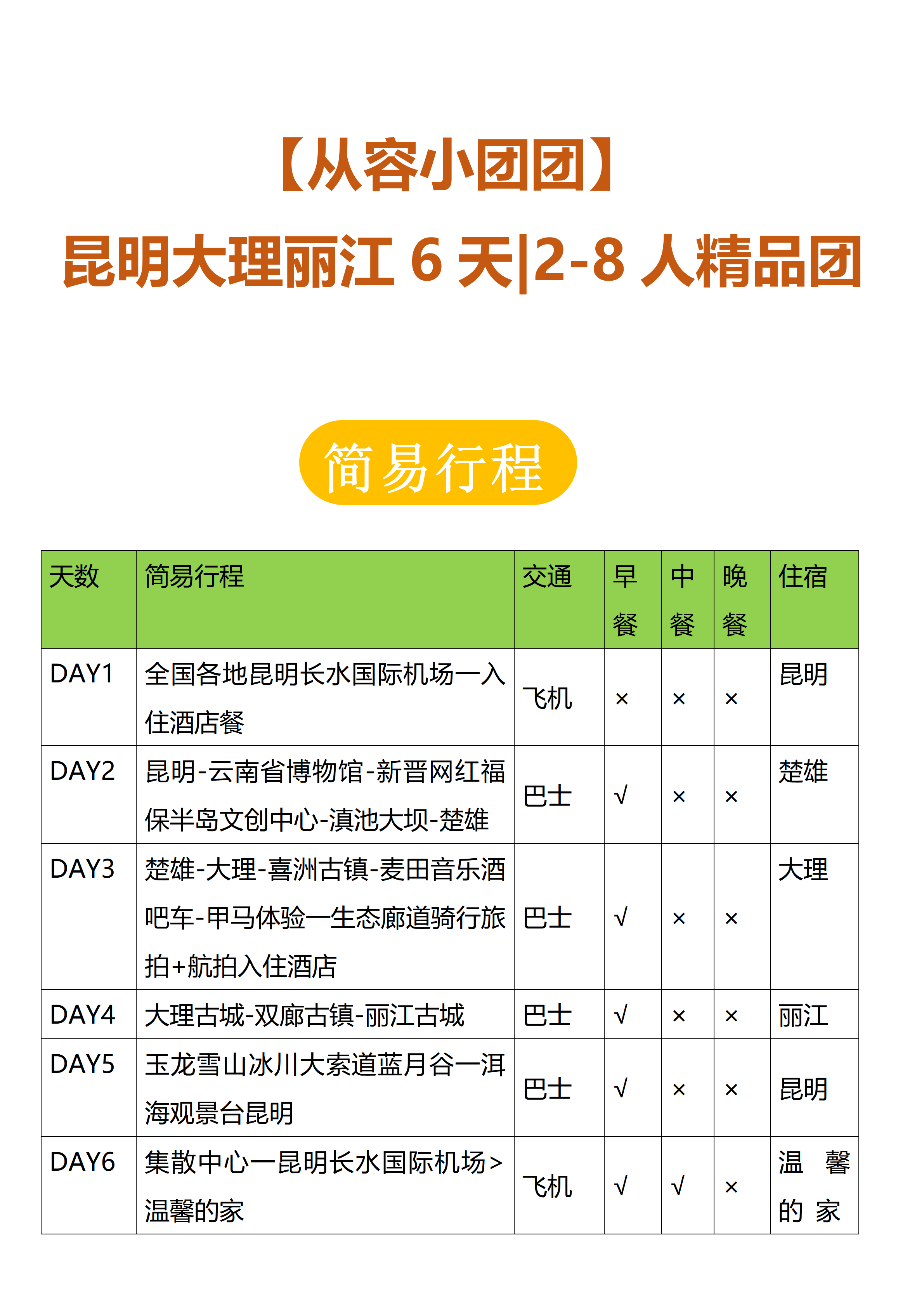 【从容小团团】 昆明大理丽江6天|2-8人精品团