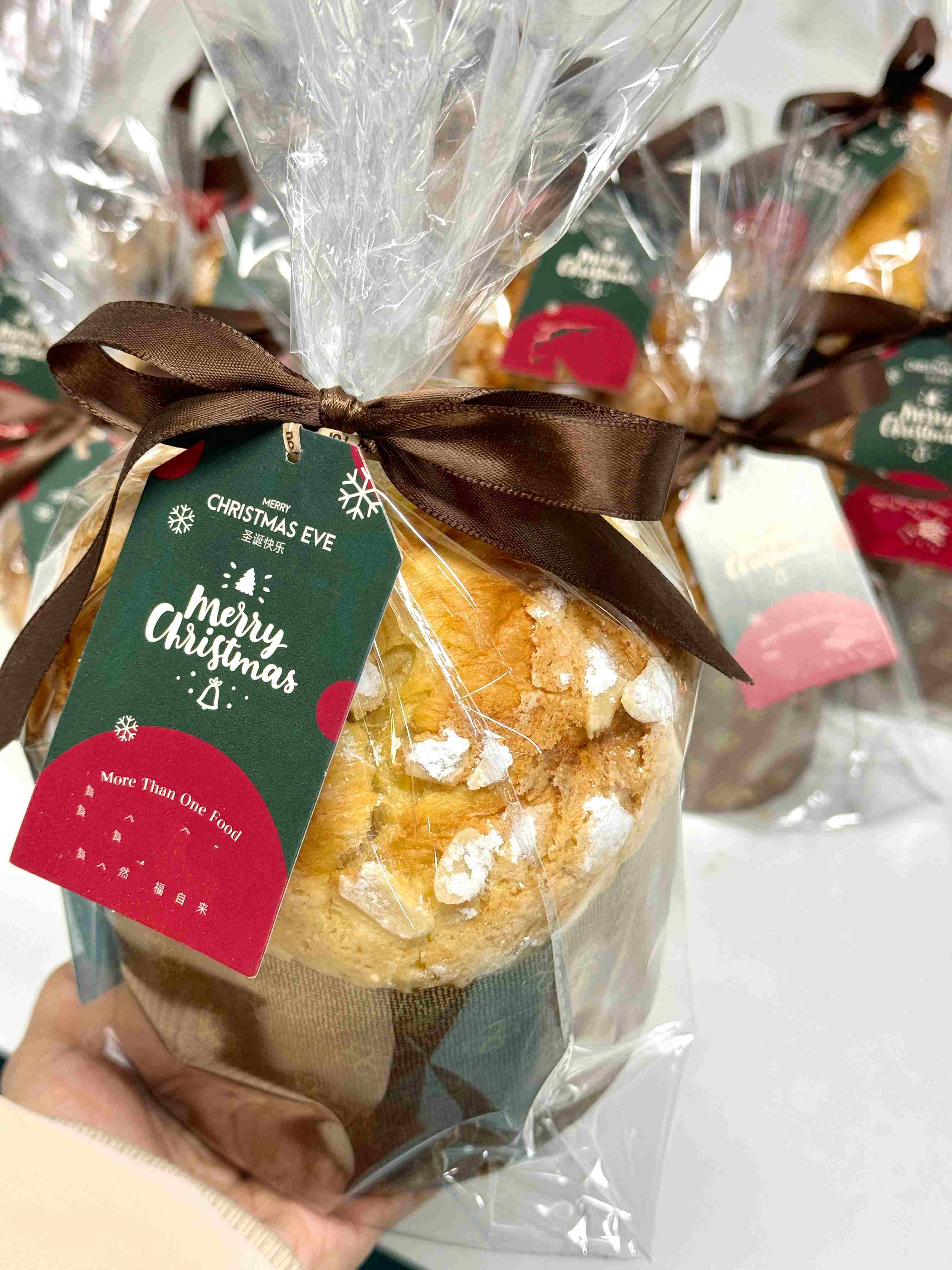 ✅ 意式经典吃法:不用加热,直接用锯齿刀切片吃,能最大程度保留松软口感,果干酒香和麦香超搭,配热咖啡、甜酒,秒get地道圣诞氛围
