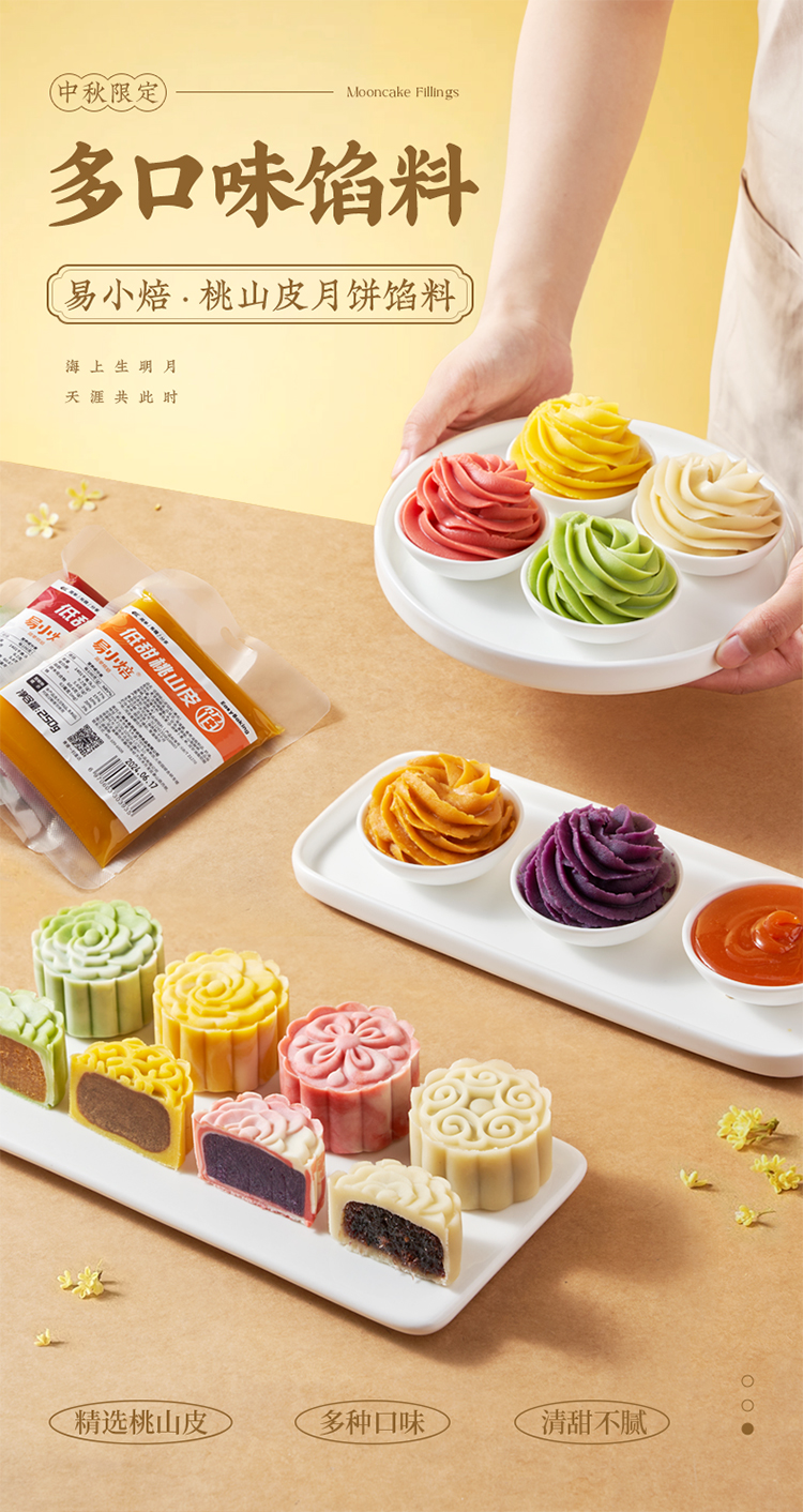 易小焙冰皮月饼广式月饼馅料低糖桃山皮中式糕点馅料烘焙专用原料