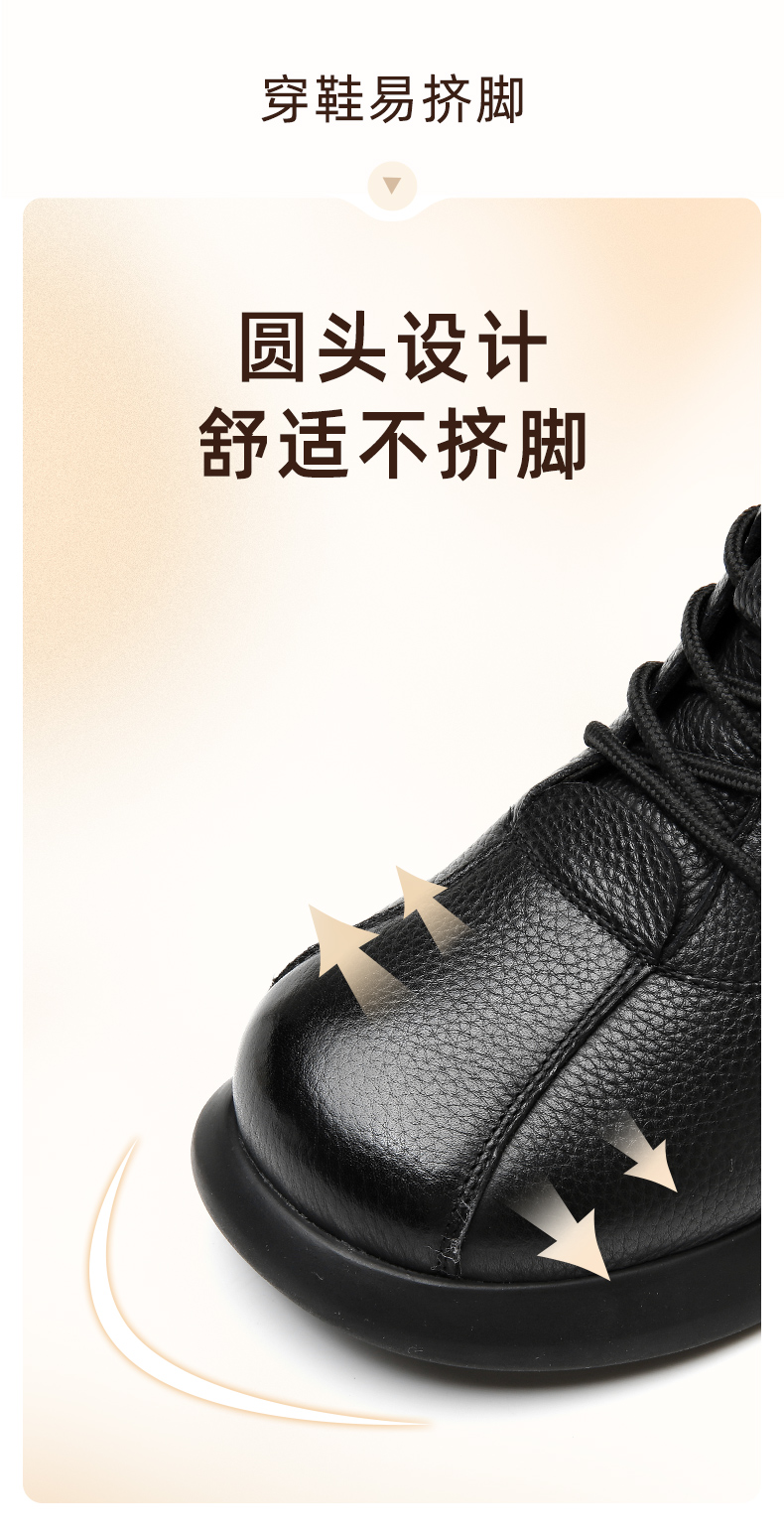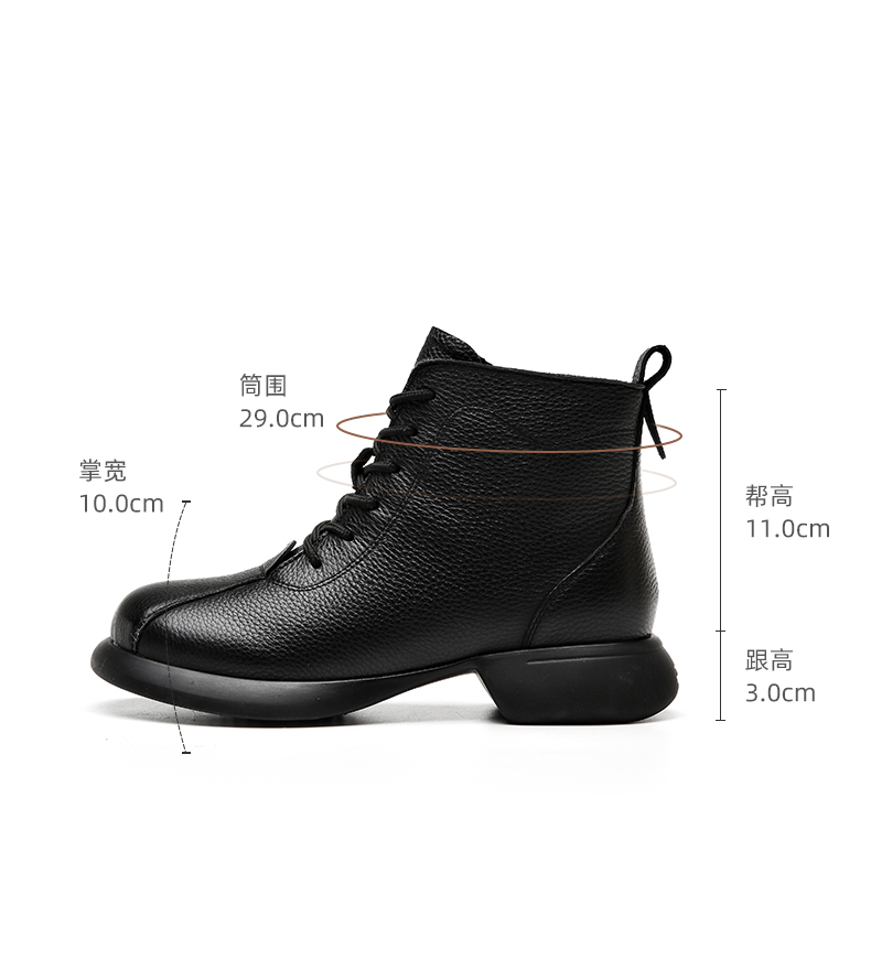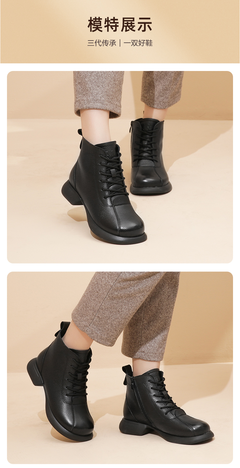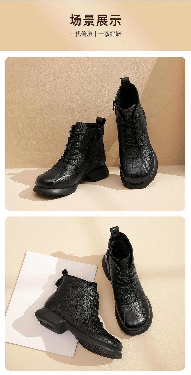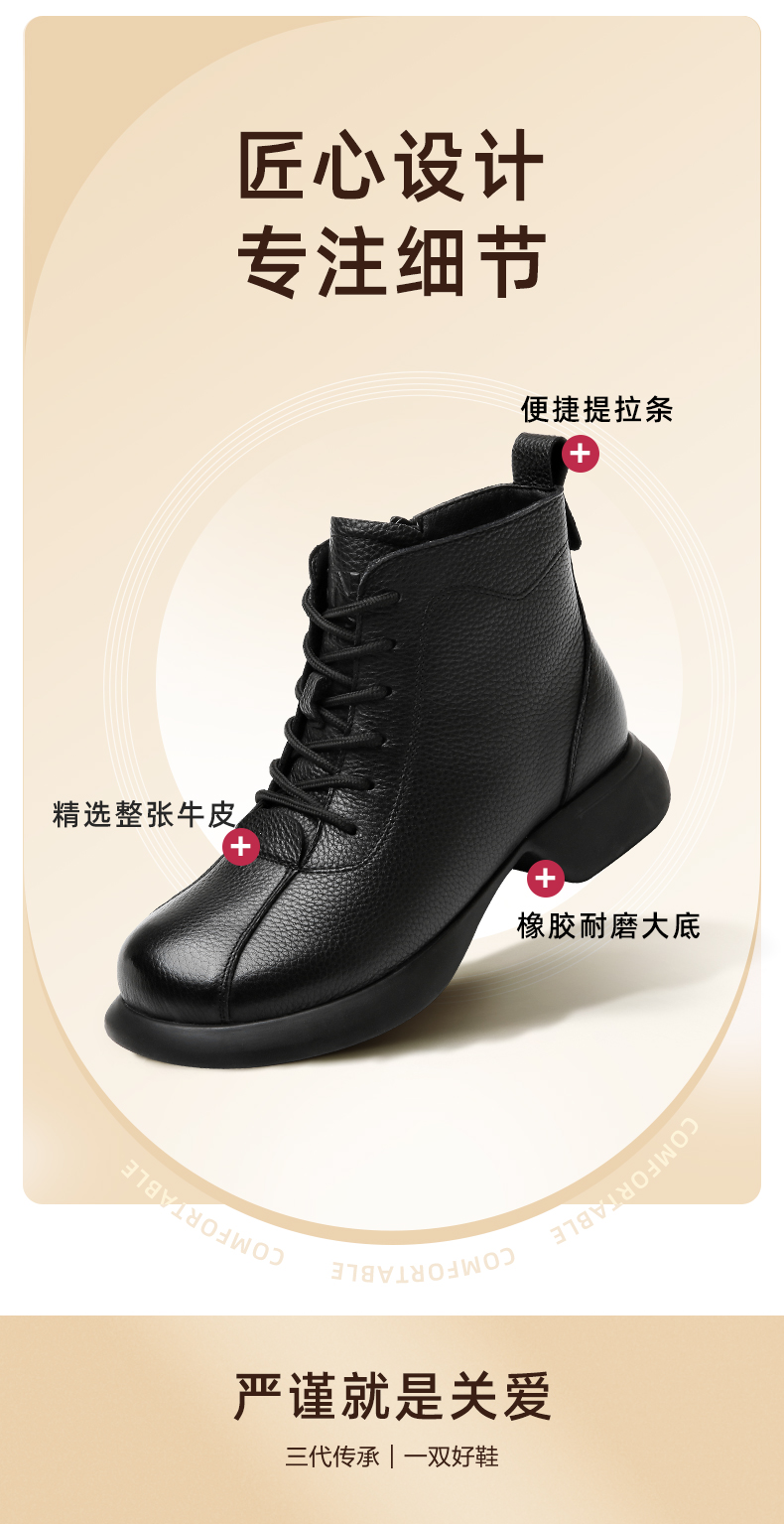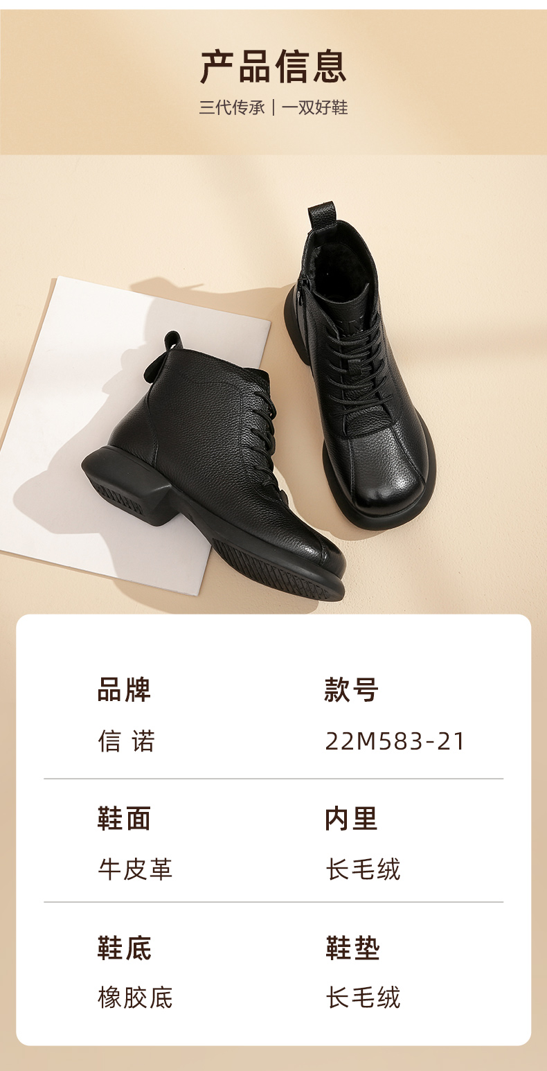 信诺头层牛皮短靴女2022新款冬季加绒保暖低跟软底软皮妈妈马丁靴22M583-21