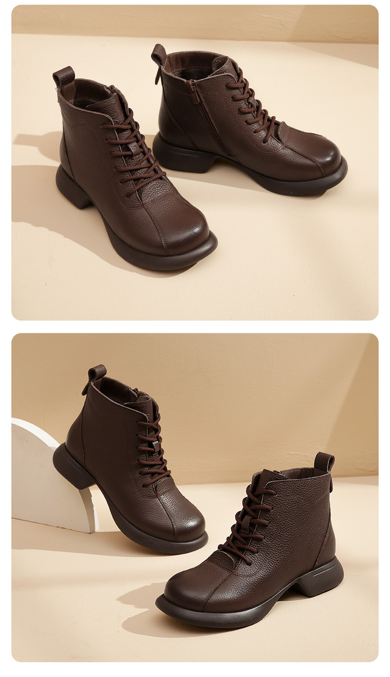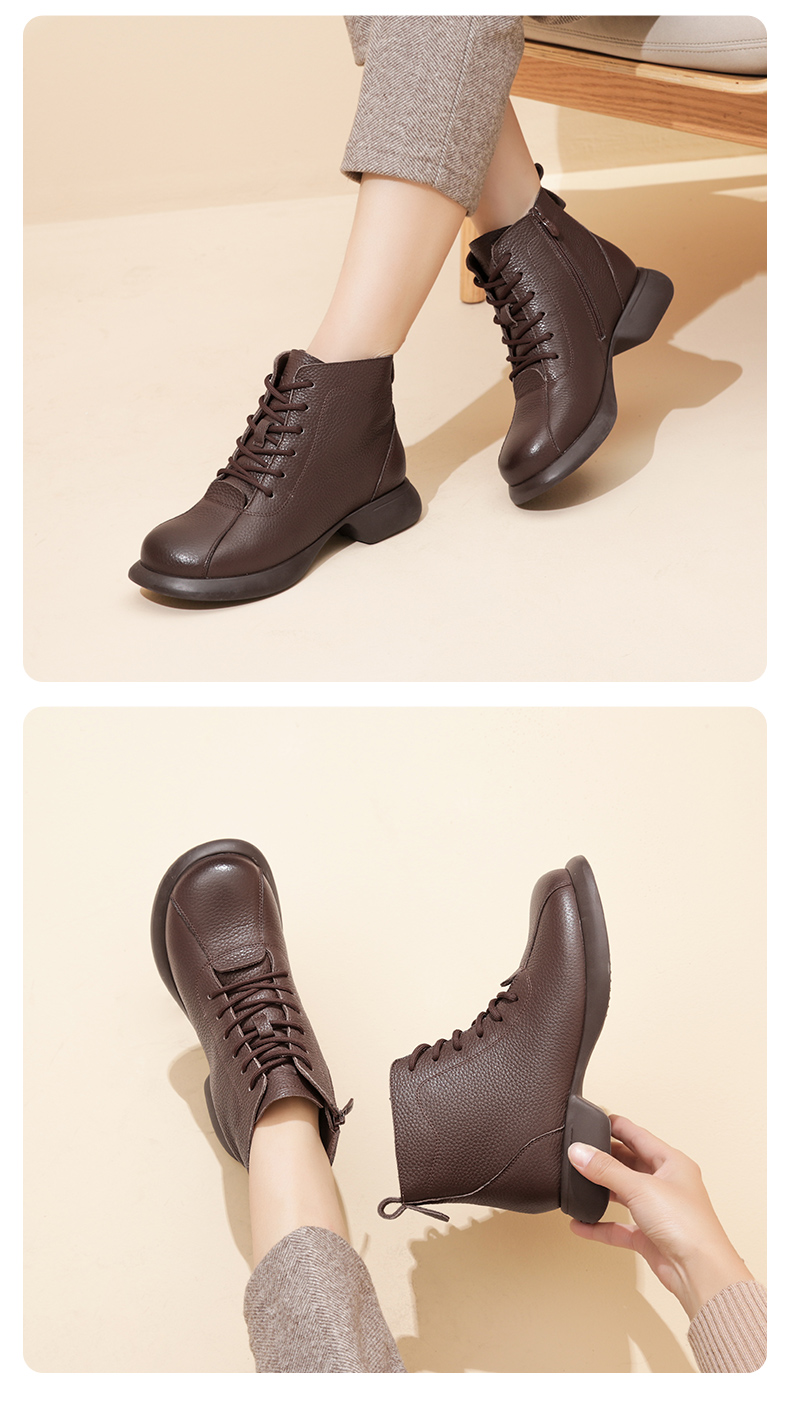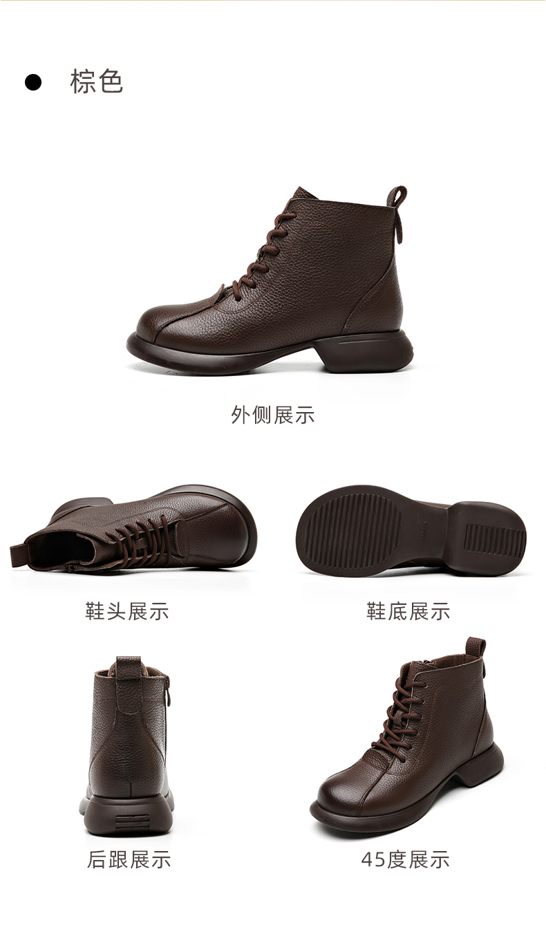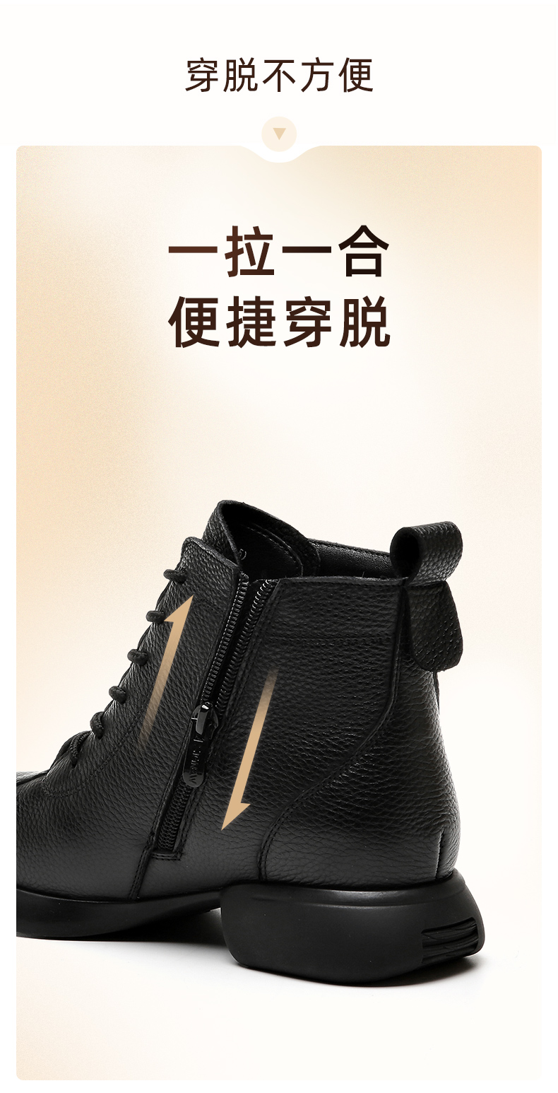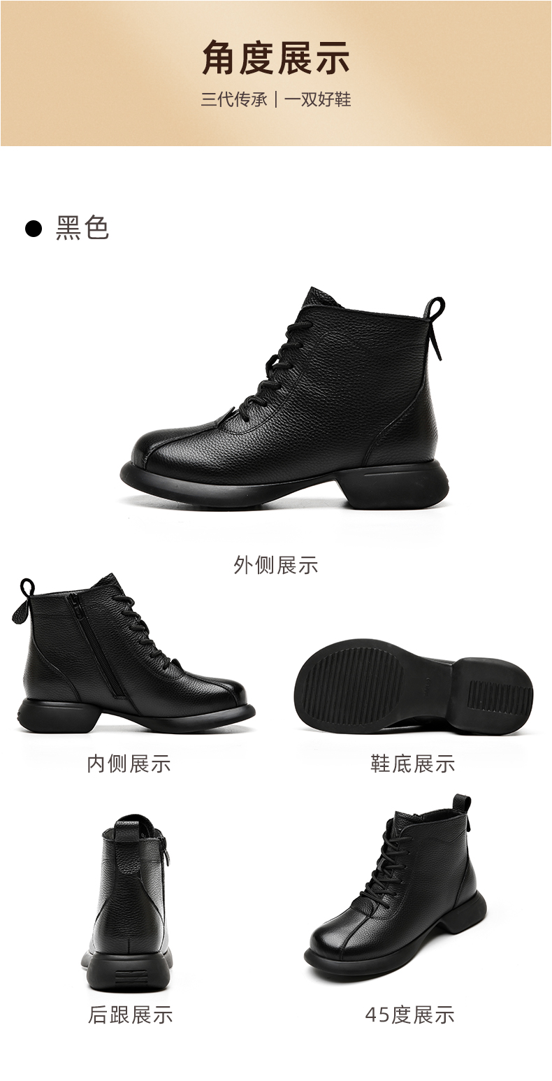 信诺头层牛皮短靴女2022新款冬季加绒保暖低跟软底软皮妈妈马丁靴22M583-21