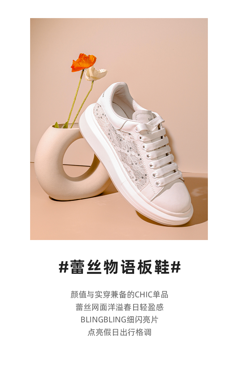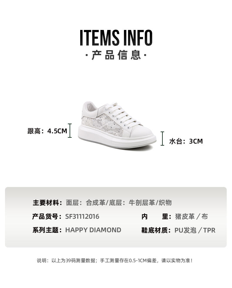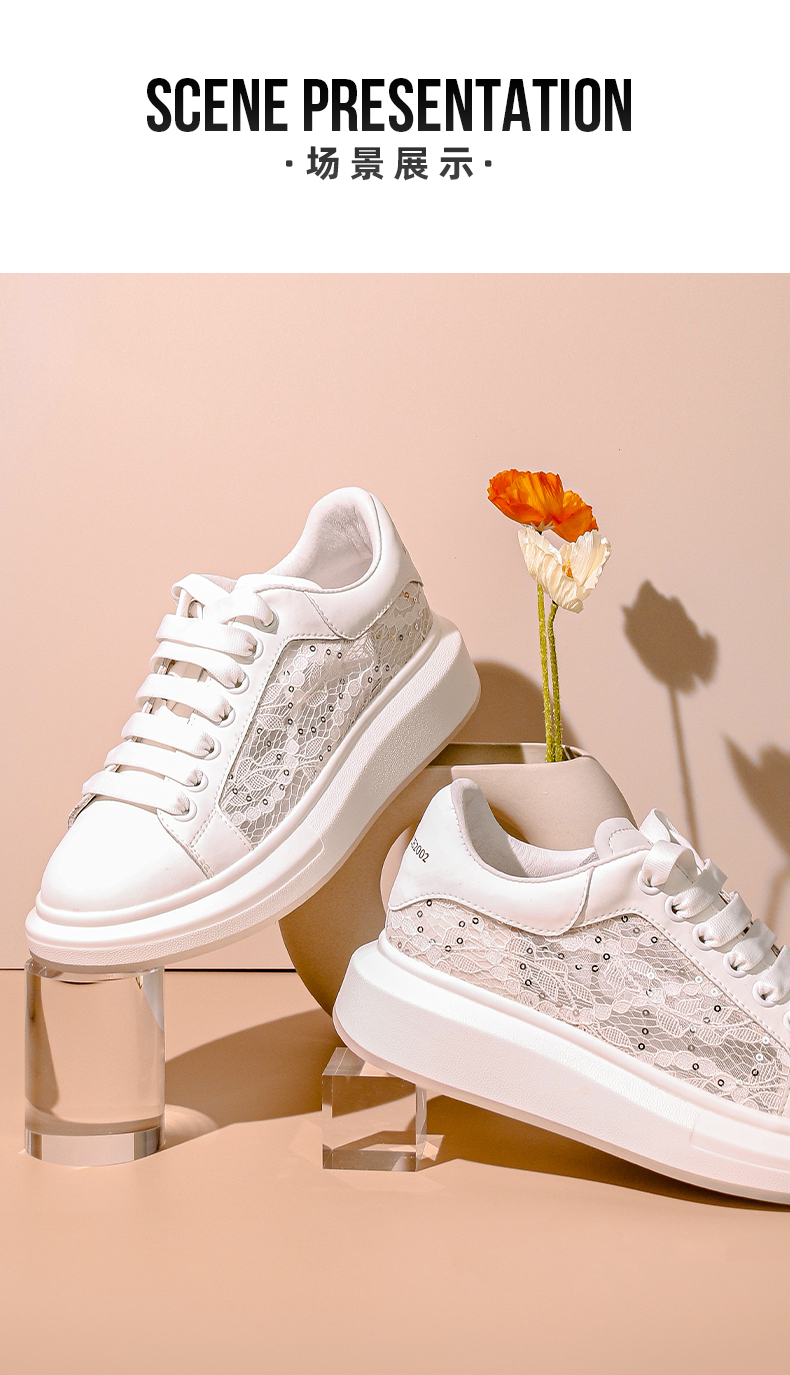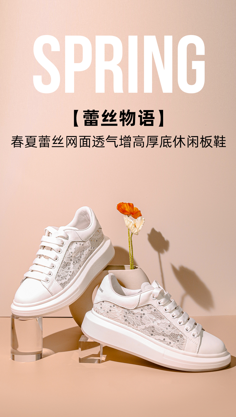 Safiya/索菲娅 春夏蕾丝网面2023年春季新款透气增高厚底休闲板鞋 SF31112016