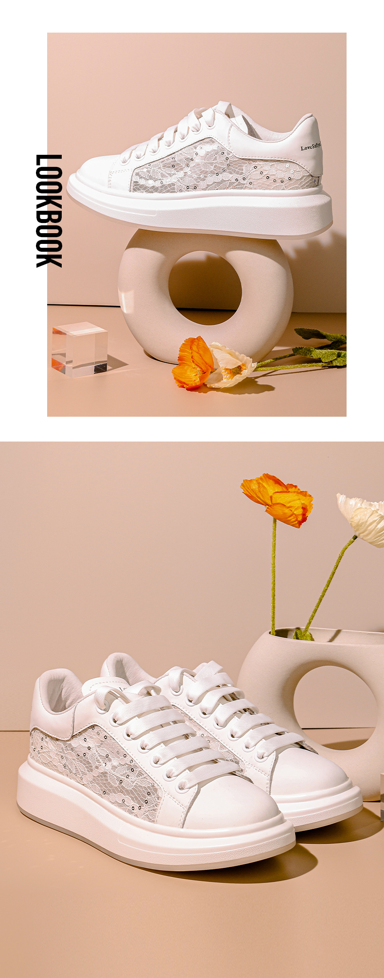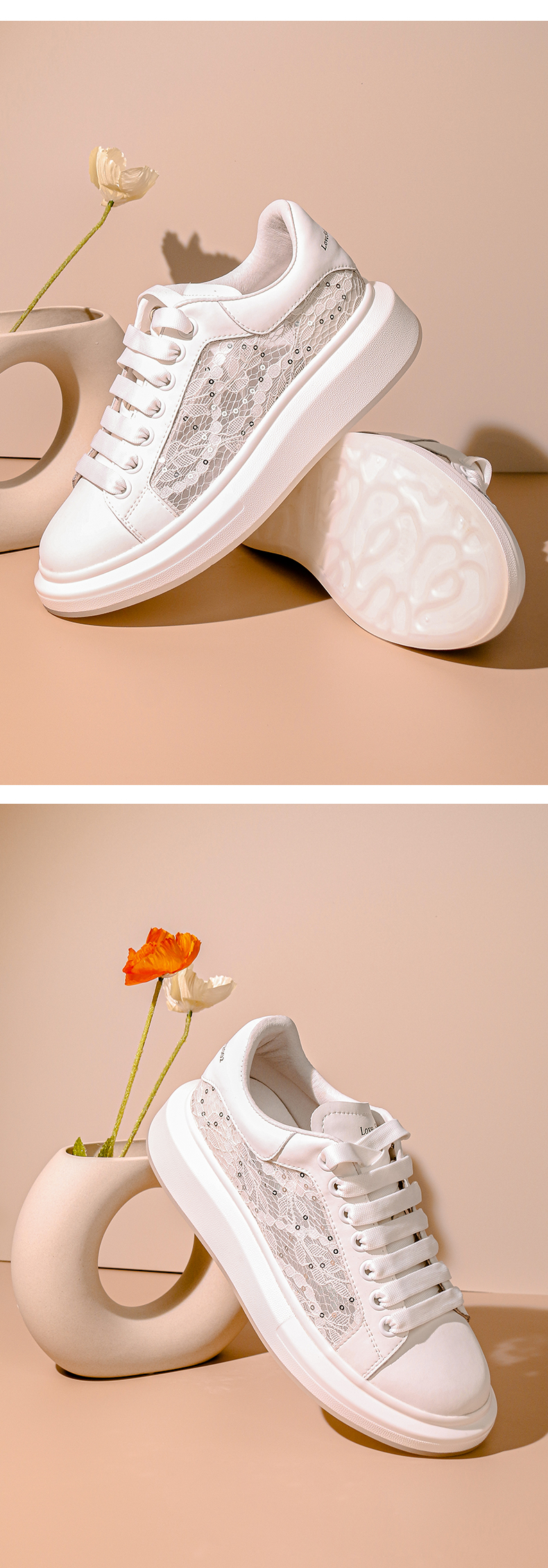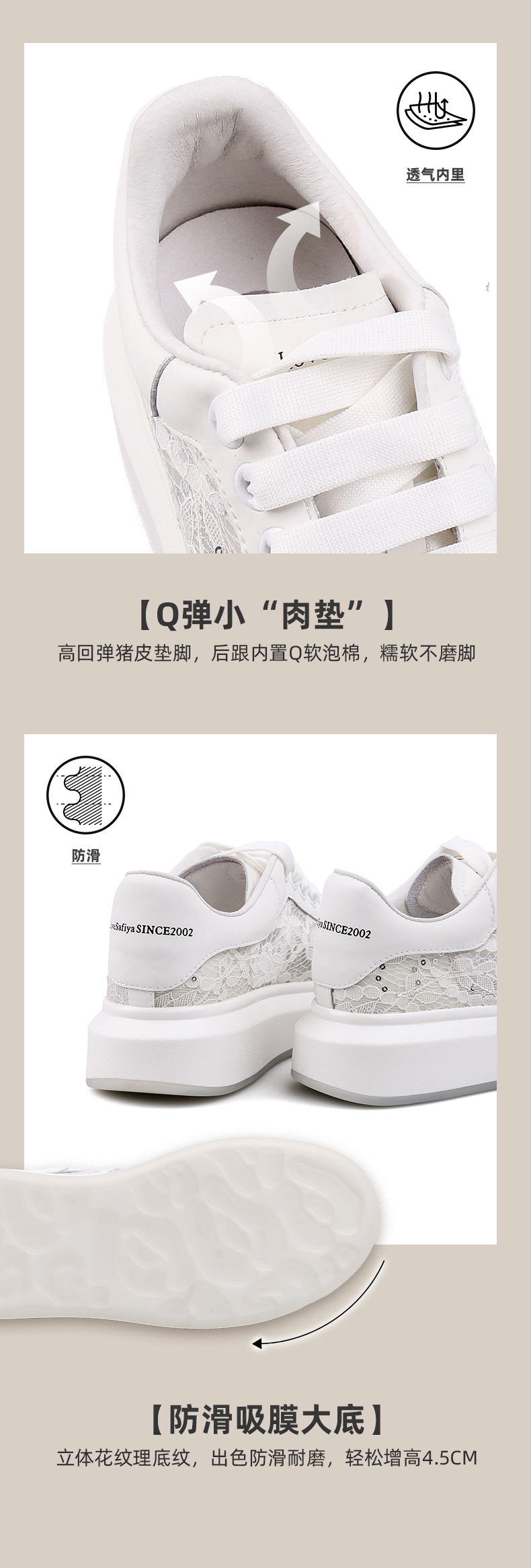 Safiya/索菲娅 春夏蕾丝网面2023年春季新款透气增高厚底休闲板鞋 SF31112016