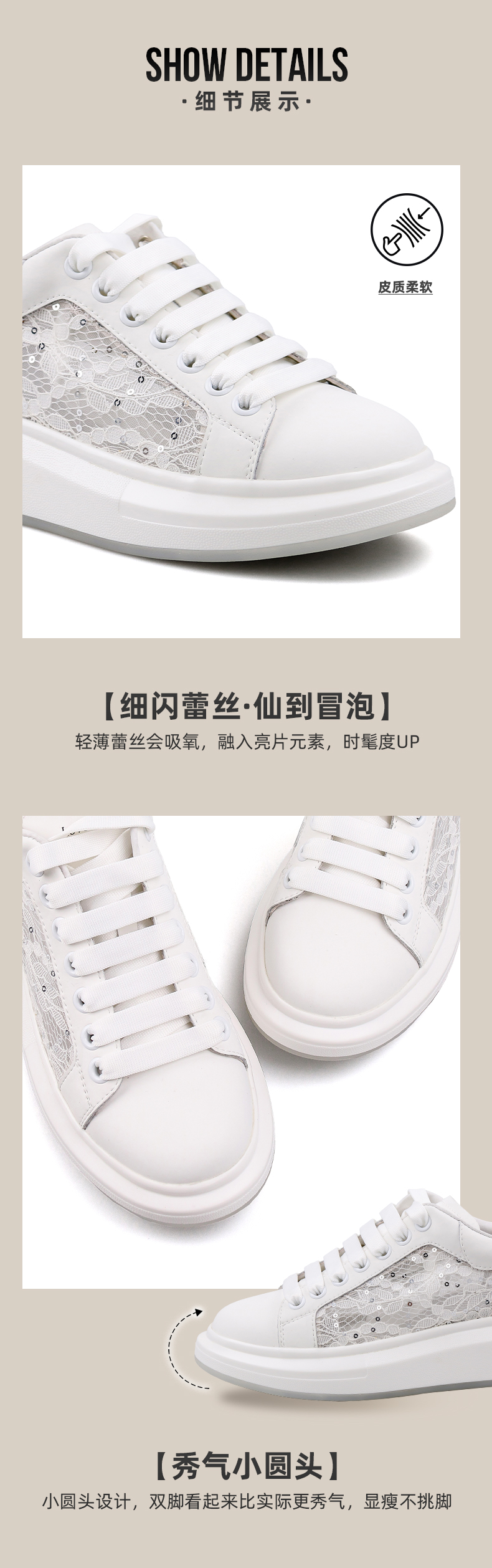 2、细节展示:材质、工艺、做工等;