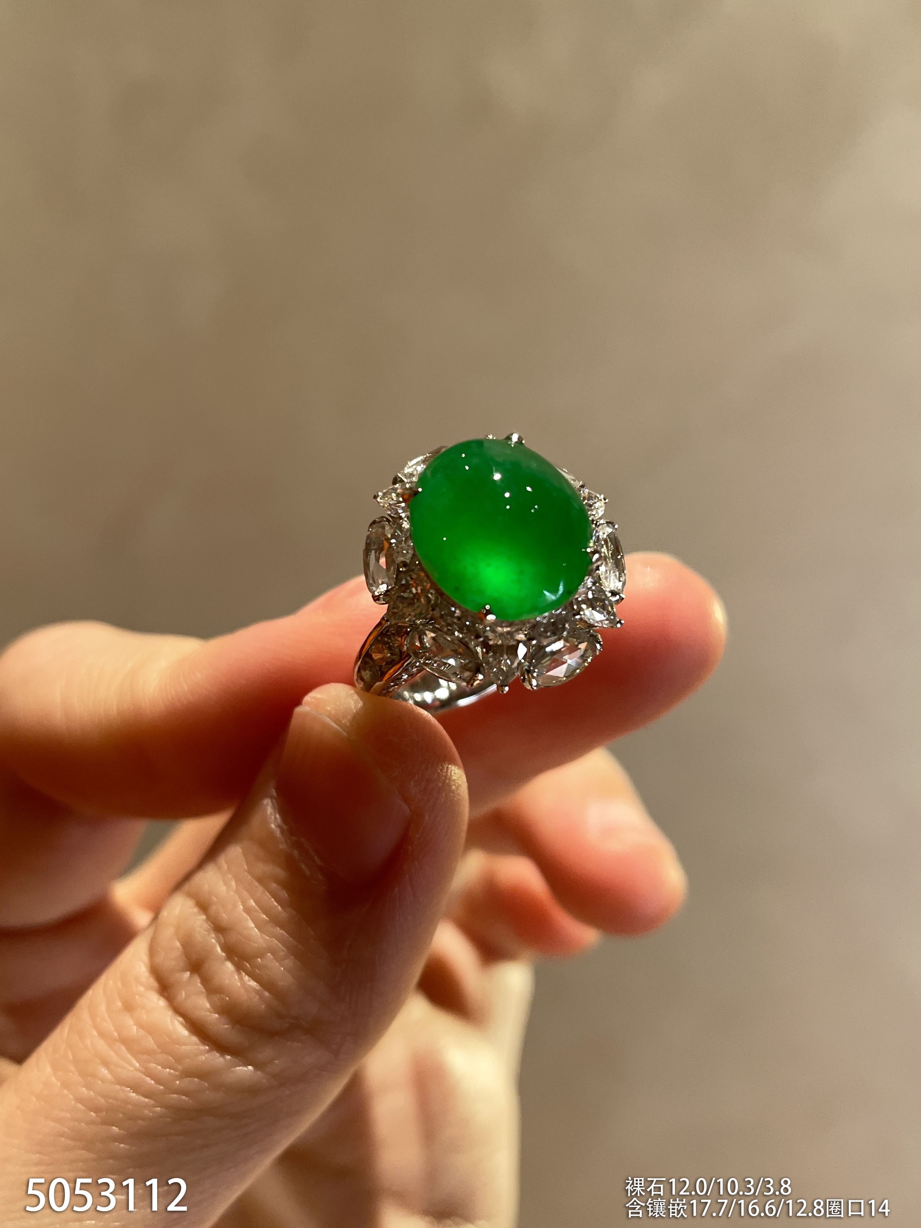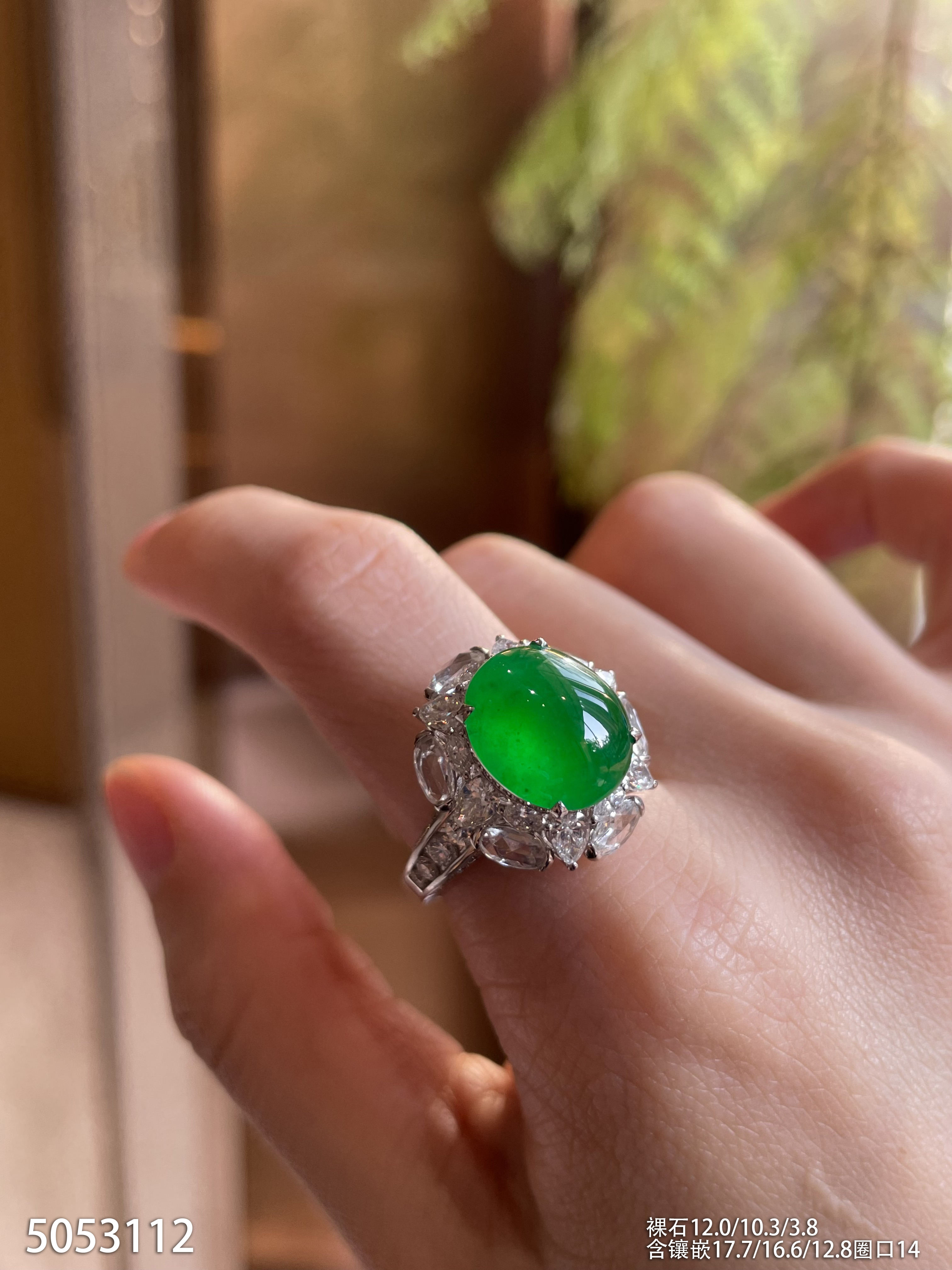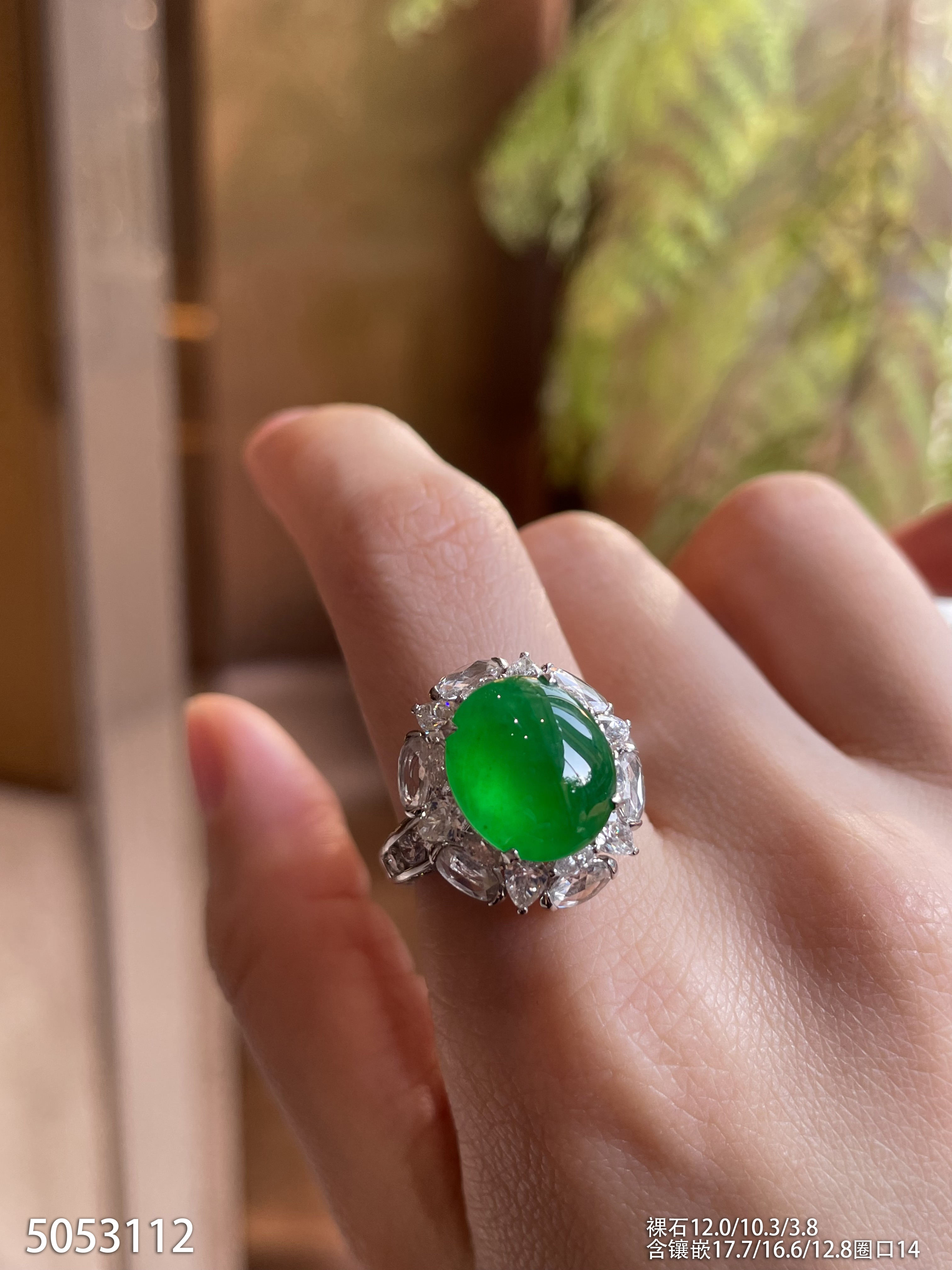 玻璃种艳绿蛋面戒指【5053112】具体价格微信咨询