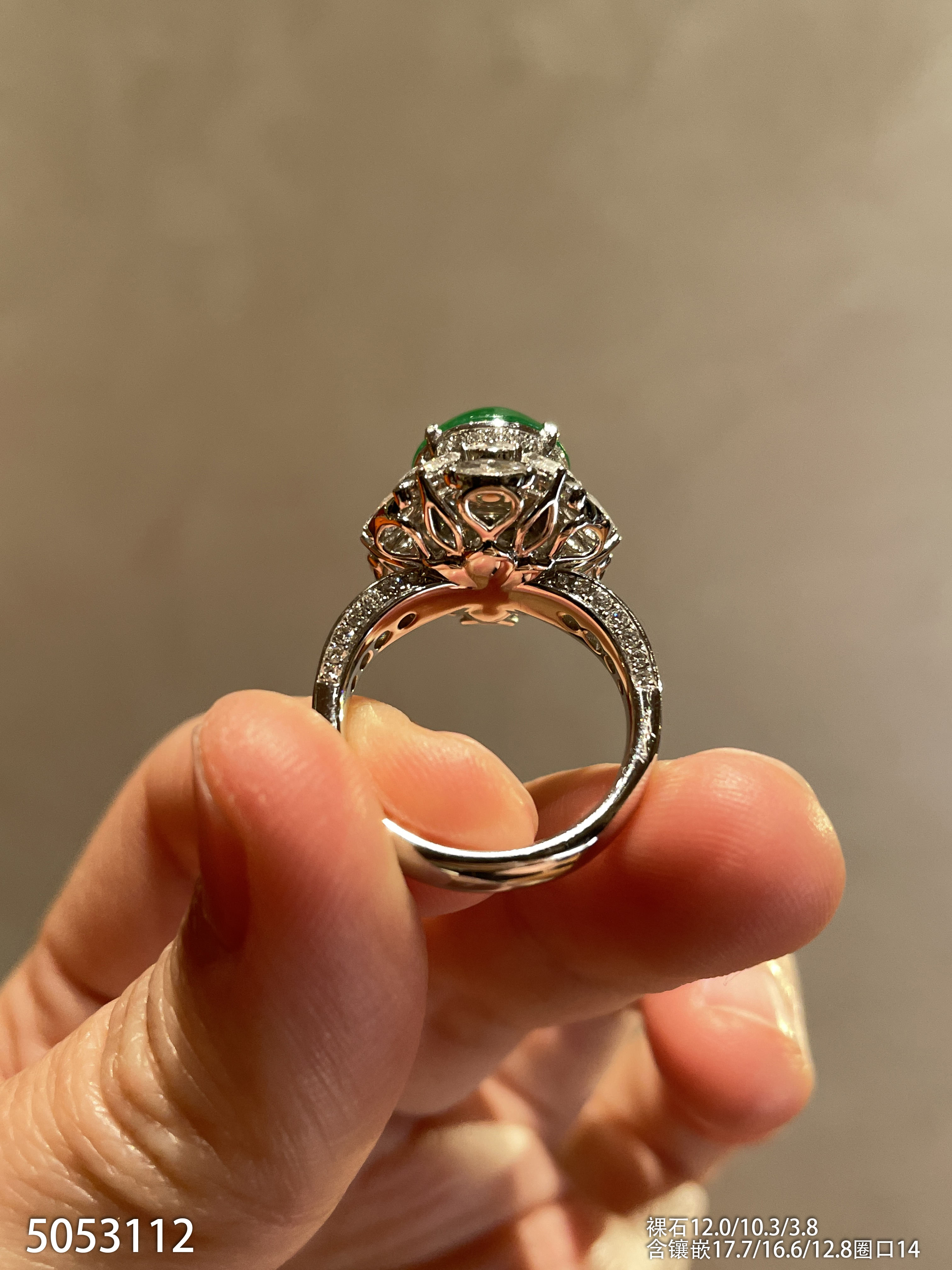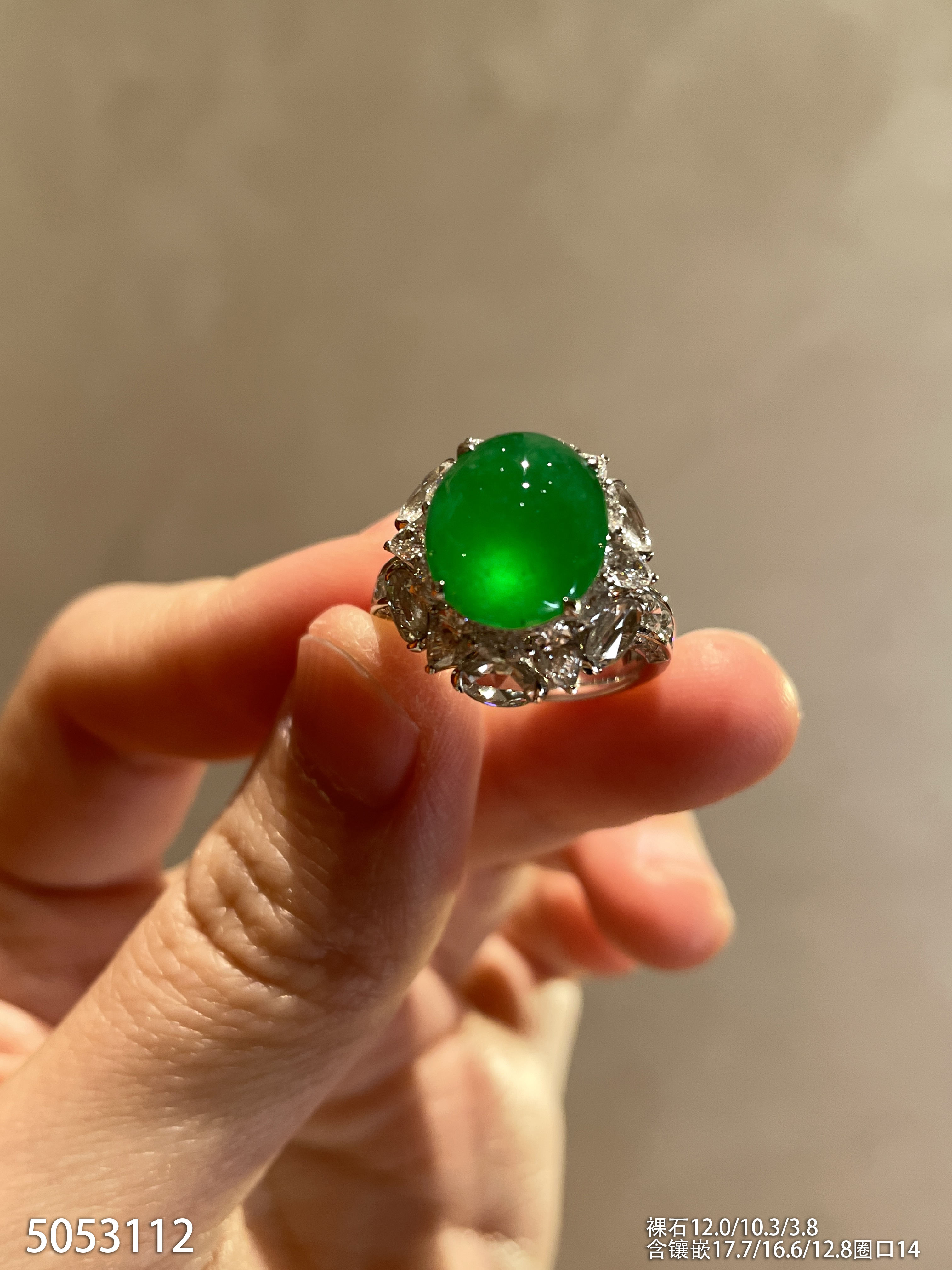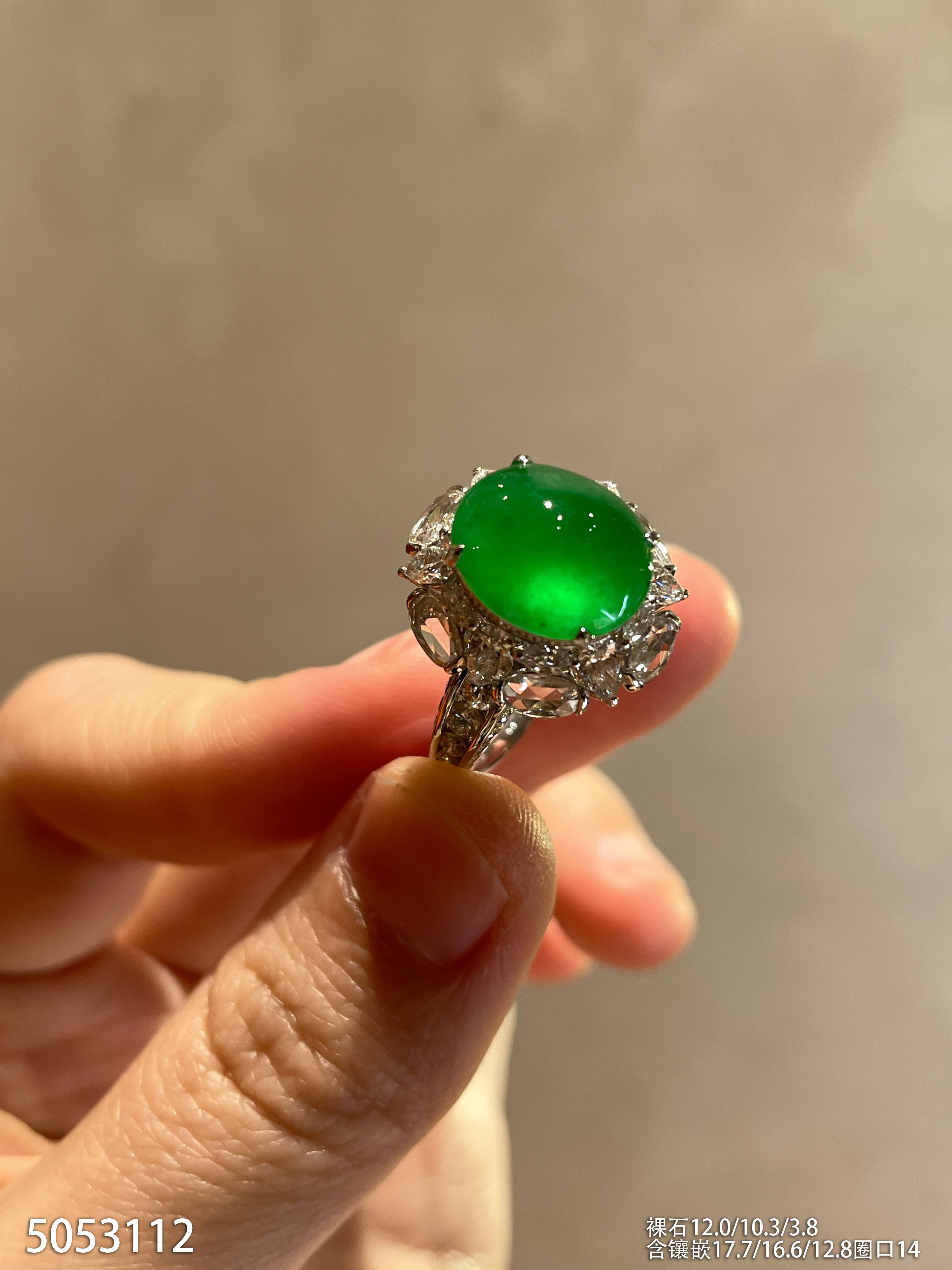 玻璃种艳绿蛋面戒指【5053112】具体价格微信咨询
