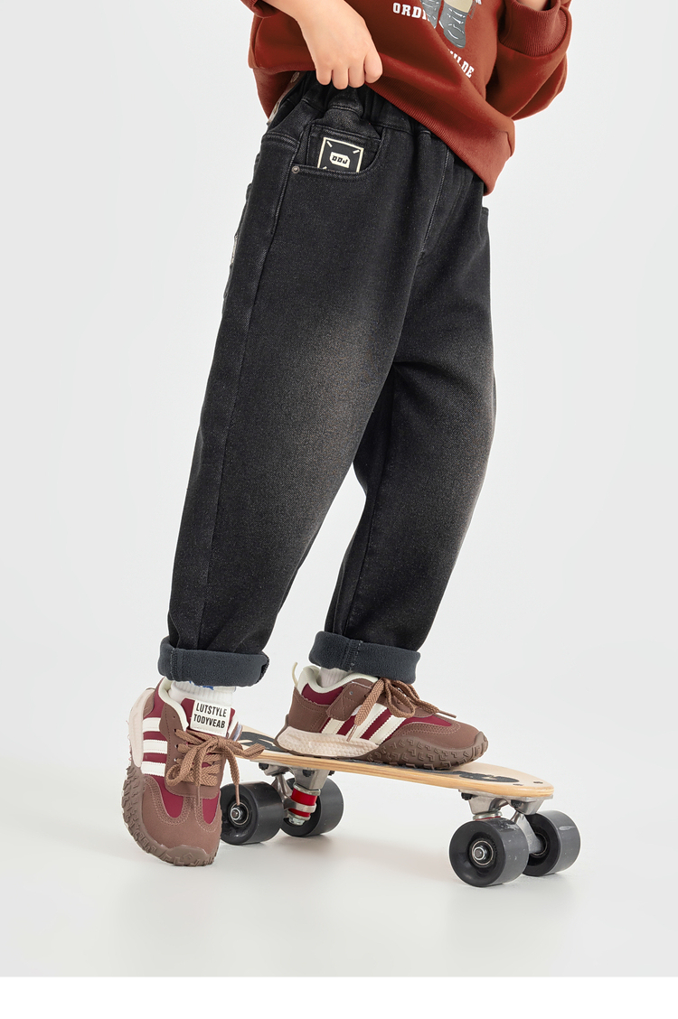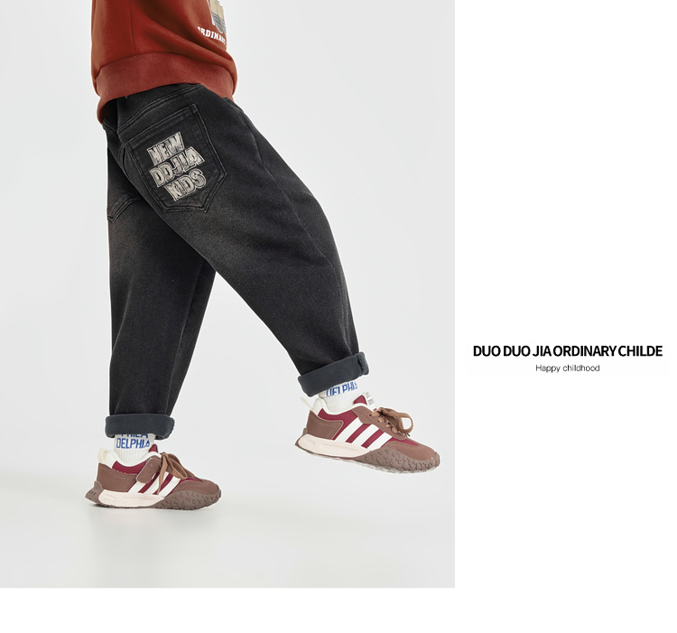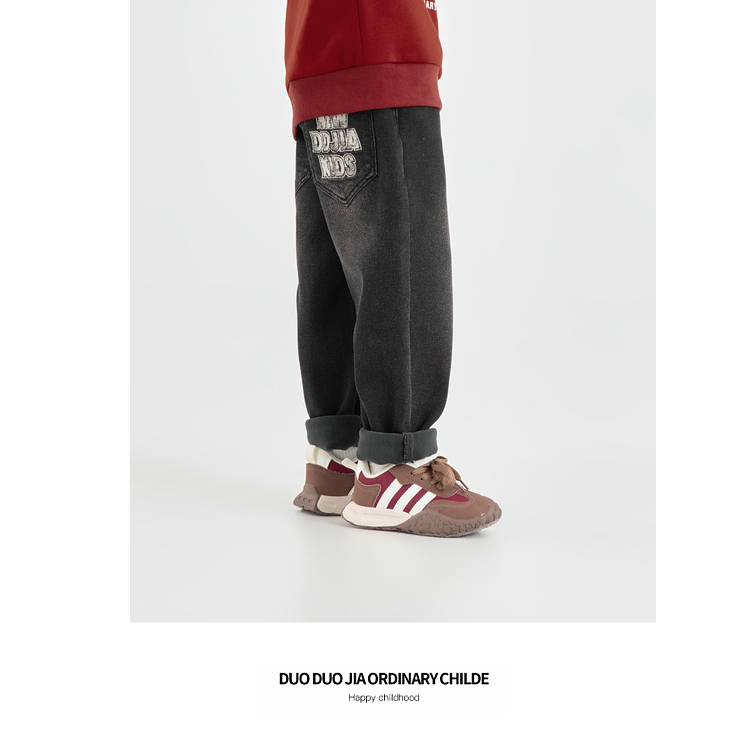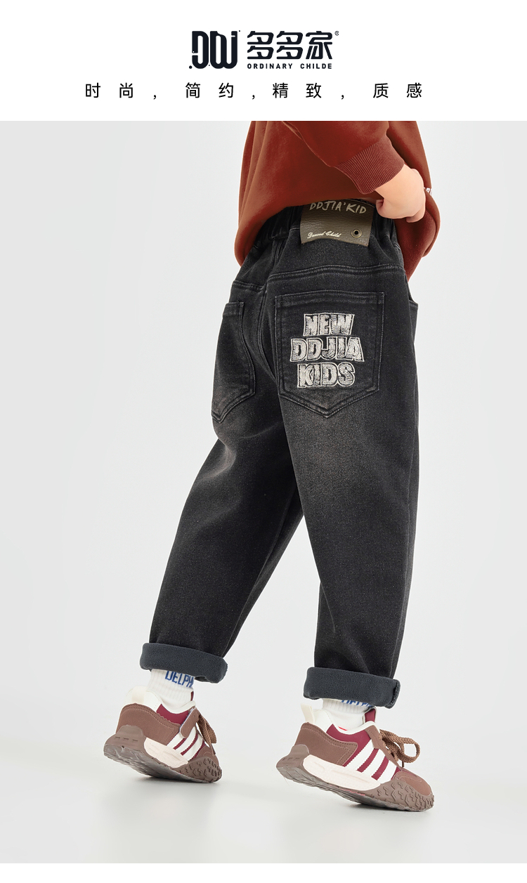 【件件底价,童装双倍积分】多多家男童加绒牛仔裤2025秋冬新款冬装儿童中大童刺绣洋气裤子潮11227