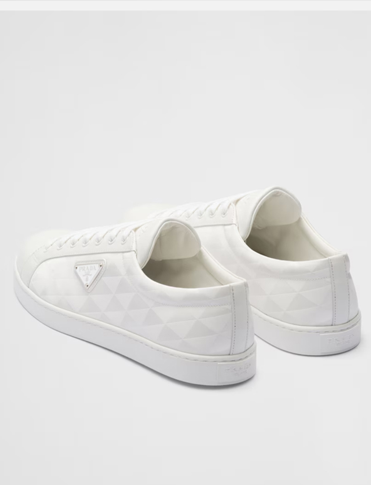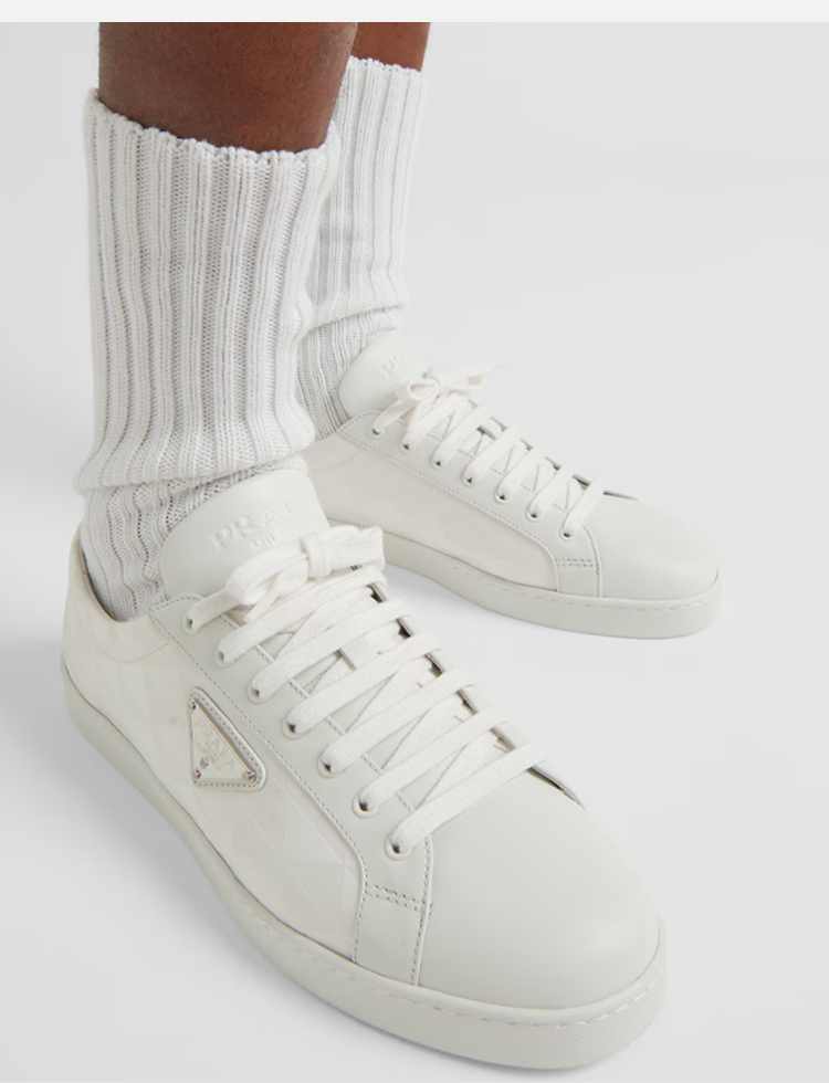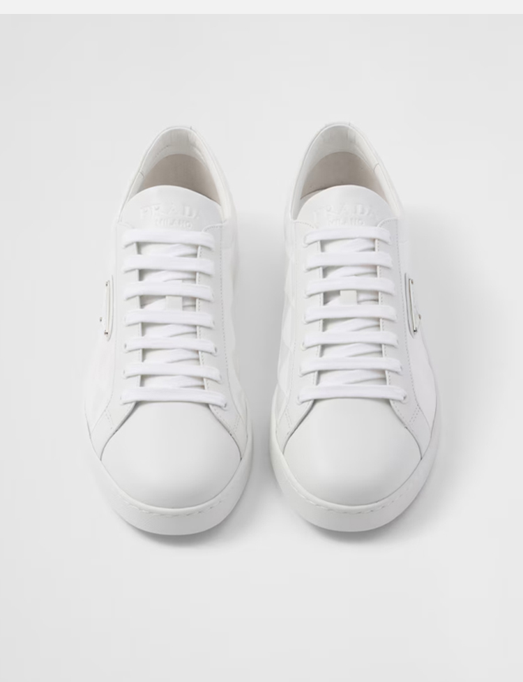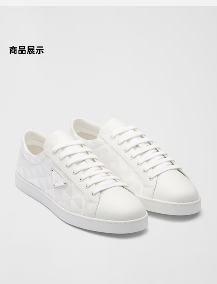 PRADA 普拉达 男士珐琅三角形徽标皮革休闲运动鞋 白色 2EE376 3LNW F0009
